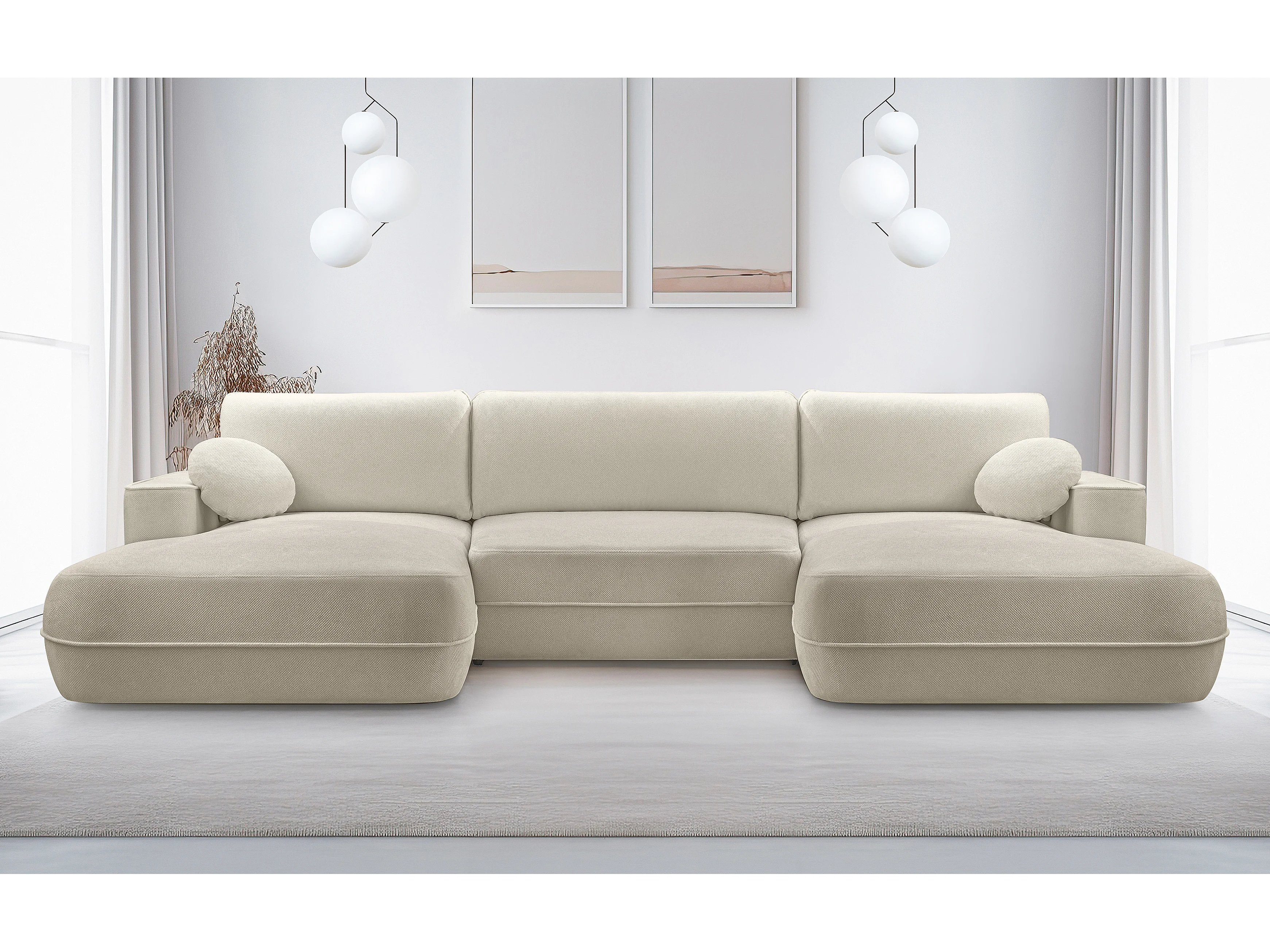 AX LIVING Canapé d’angle en U avec fonction lit Peoni 364 cm beige