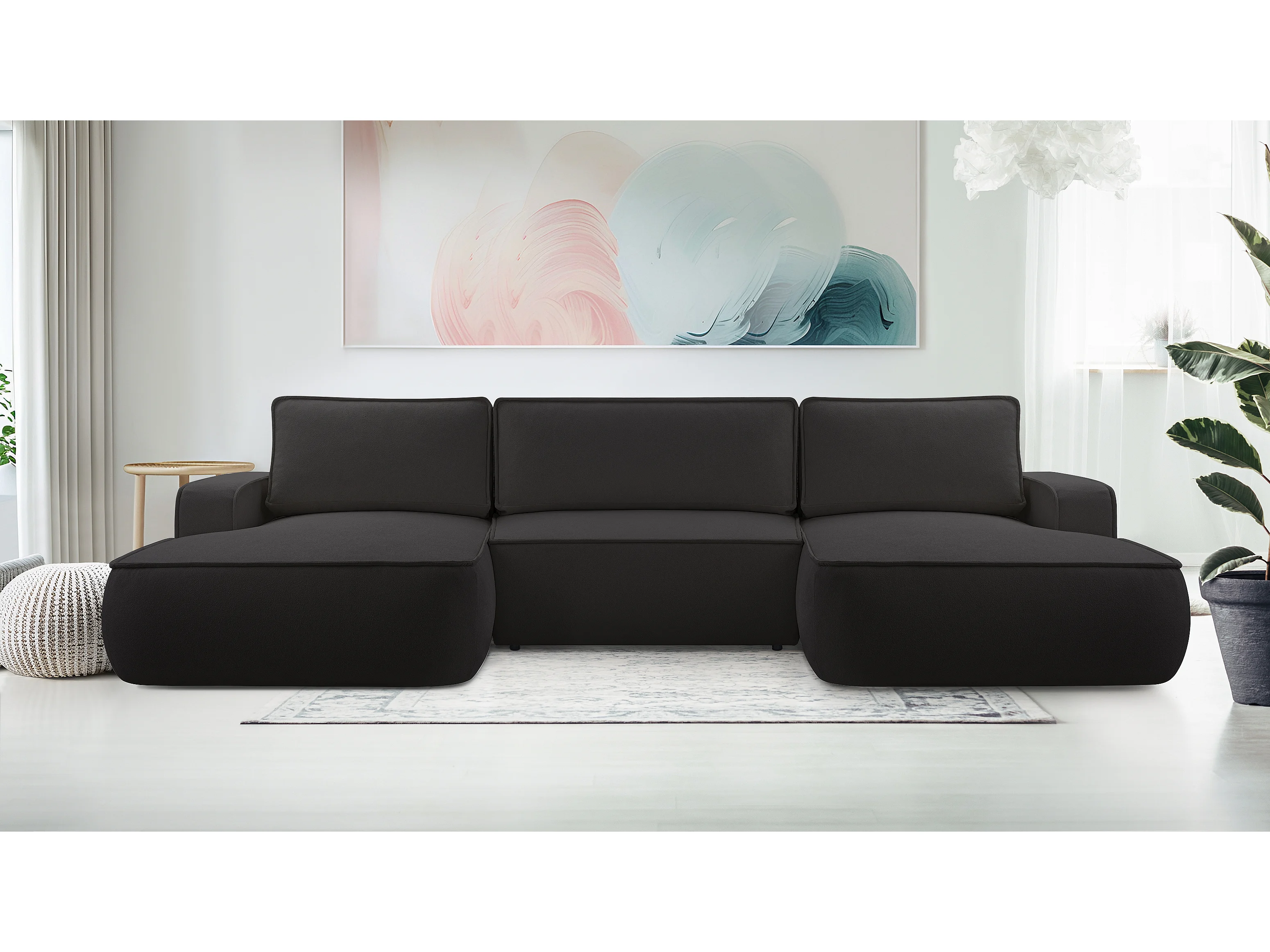 AX LIVING Canapé en U avec fonction lit Ablia 364 cm noir