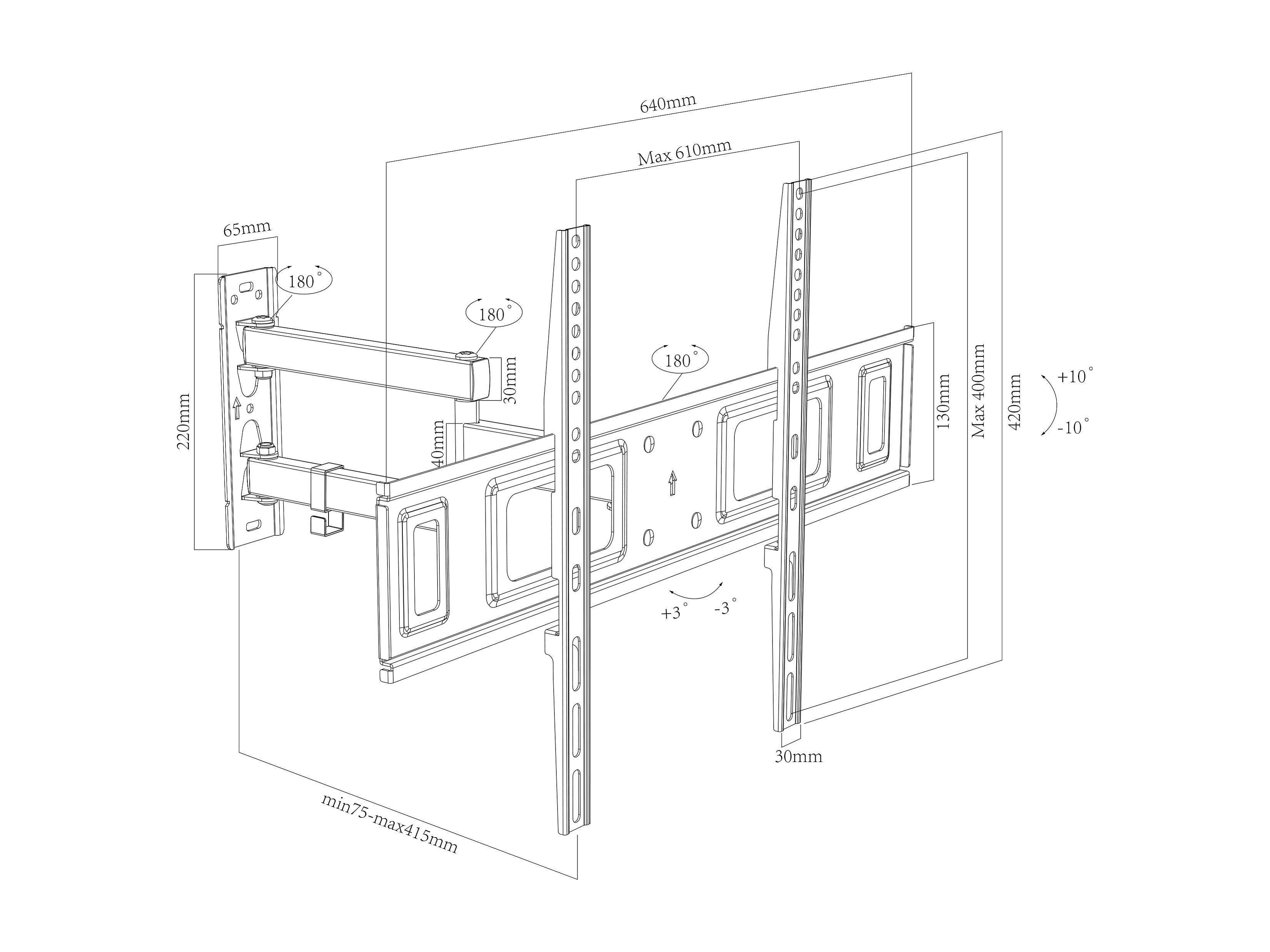 TV wall mount B-SN600 Black H. 42 x W. 64 x D. 8 cm