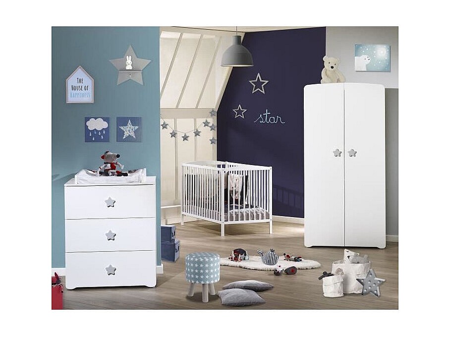 BABY PRICE Commode a langer 3 tiroirs - Boutons etoile gris - New Basic