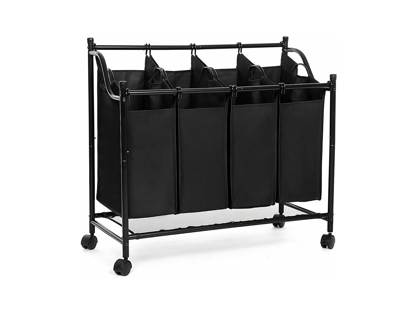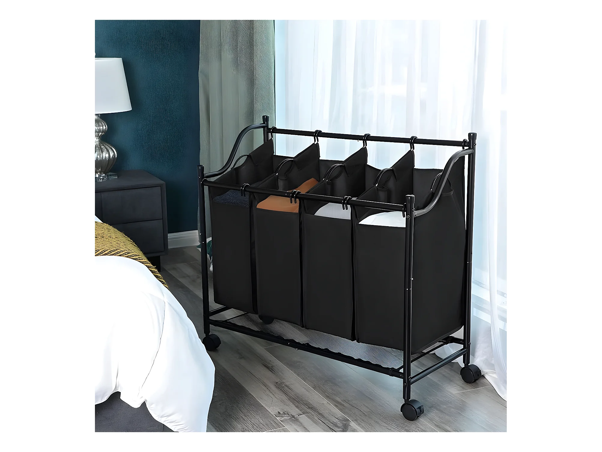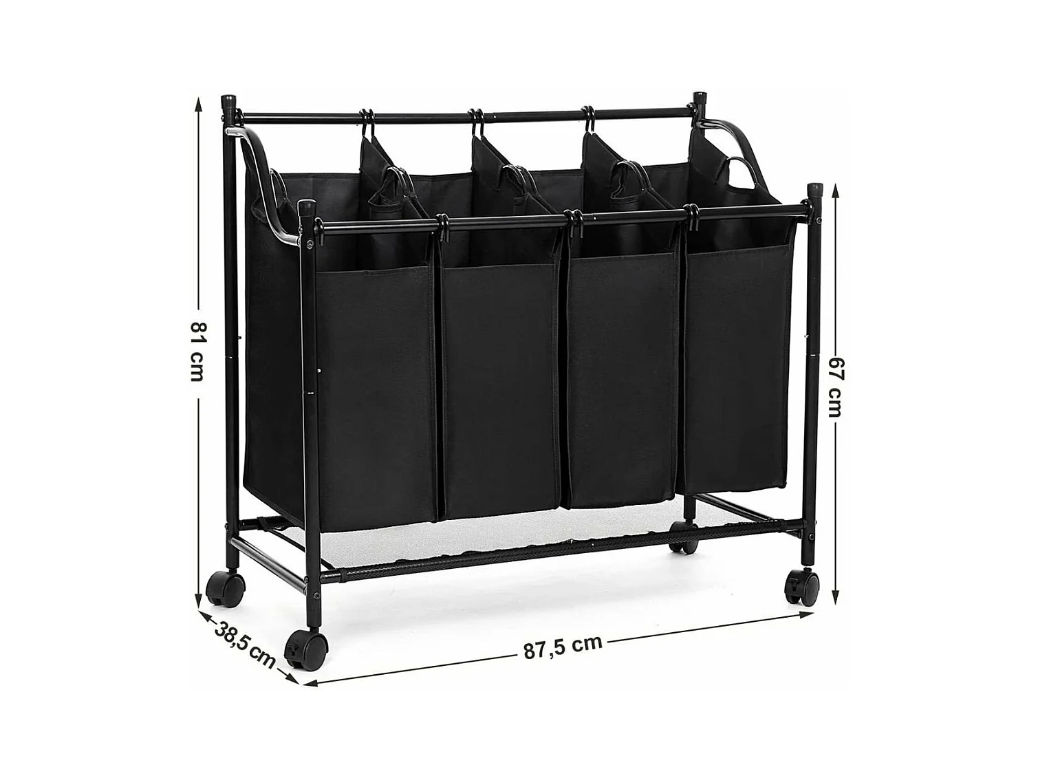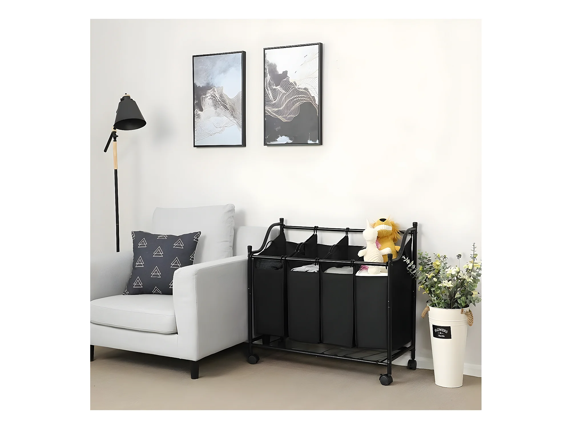 Bac à Linge avec 4 Sacs Amovibles Noirs sur Roulettes - L87,5 cm
