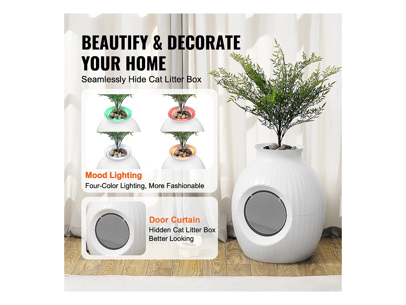 Bac à Litière, SucceBuy Bac à Litière pour Chat Plant - Contrôle Intelligent des Odeurs, Caché, Entrée de 24.1 cm, ABS, Décoratif pour la Maison
