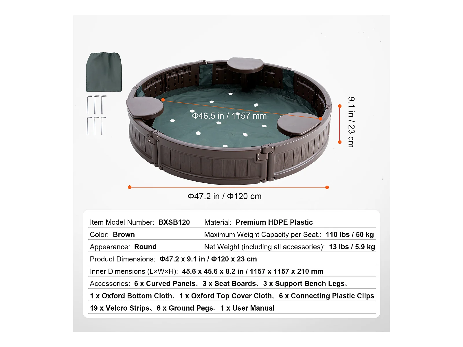 Bac à Sable SucceBuy, Rond HDPE, Extérieur Jardin, 3-12 Ans, pour Extérieur, Jardin, Plage, Parc