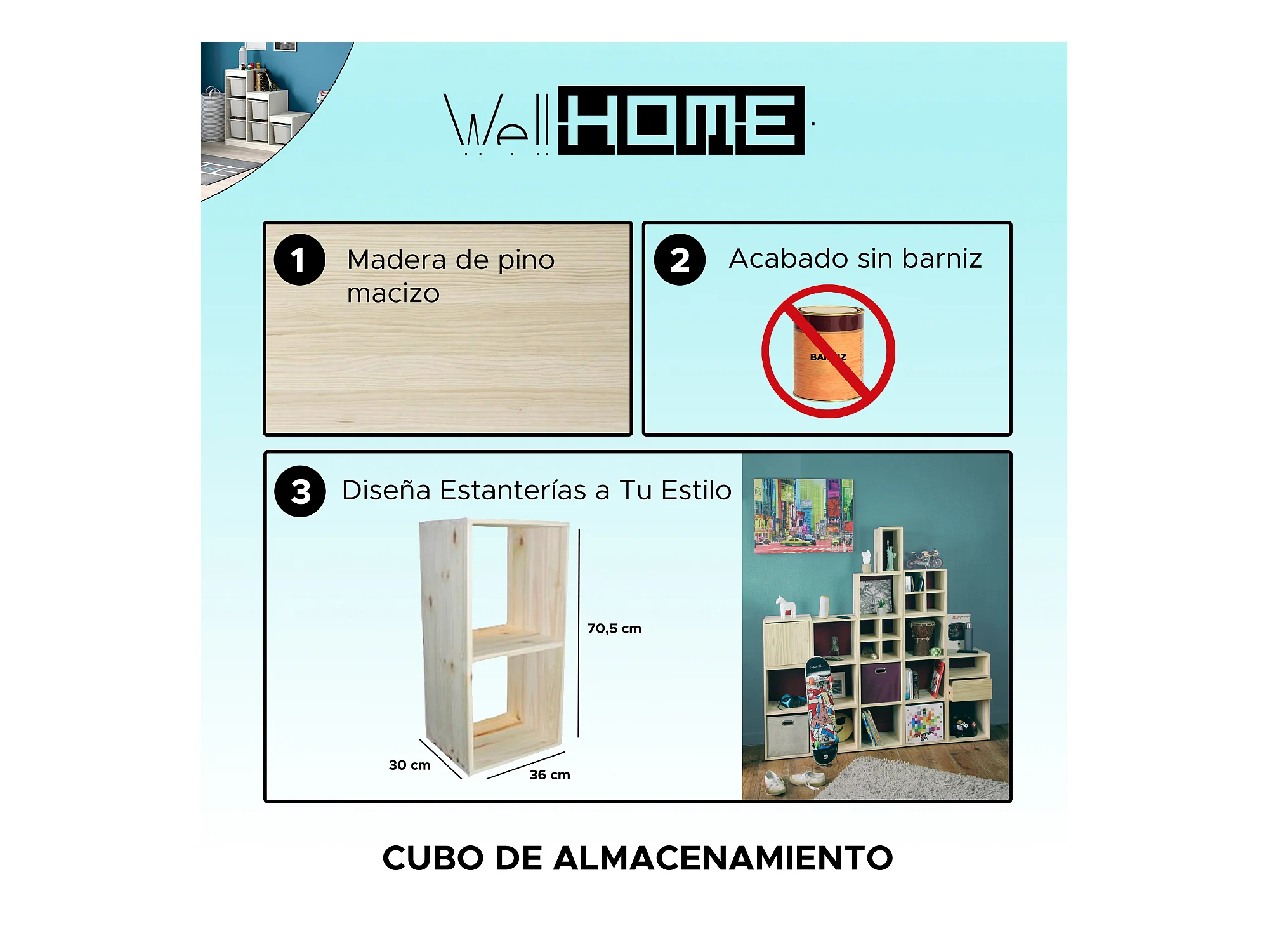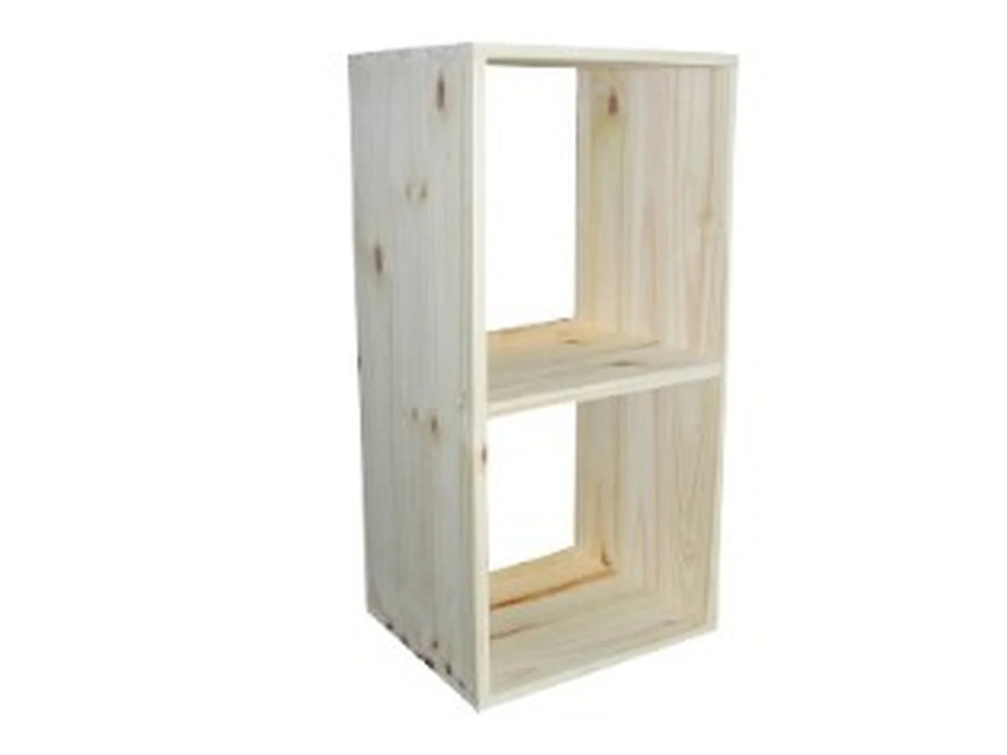 Meuble Etagère 2 Cases de rangement 1 Porte effet bois naturel H 67.6 cm