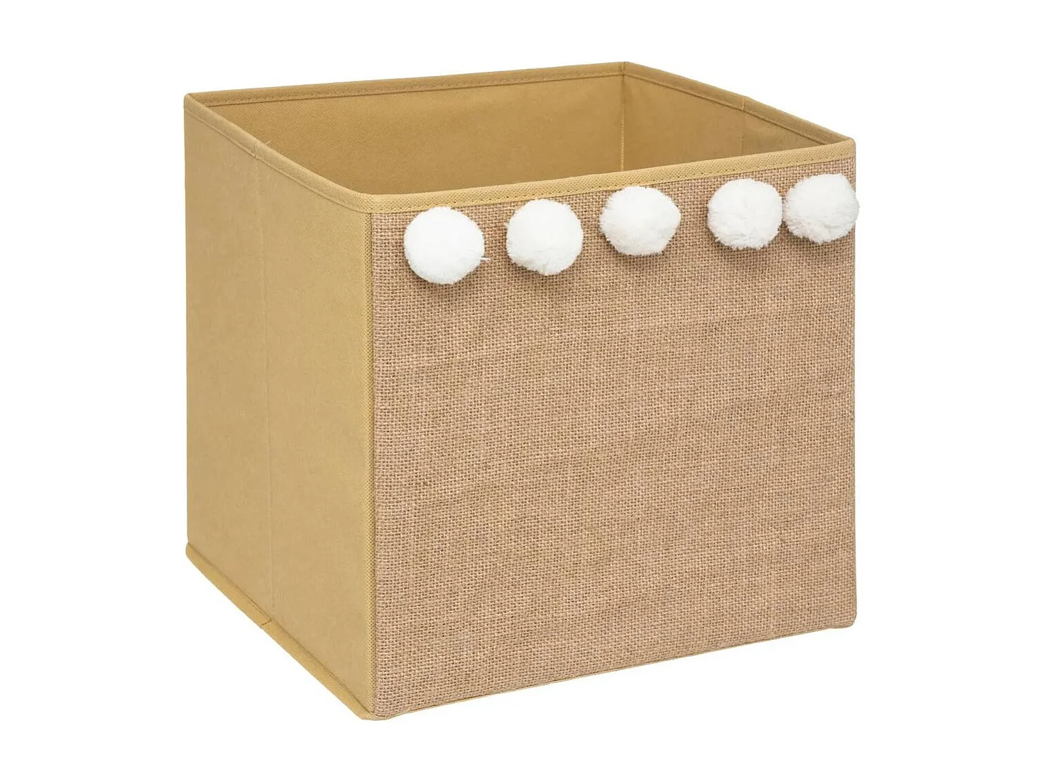 Boîte de Rangement Pliable "Pompons" 29x29cm Marron