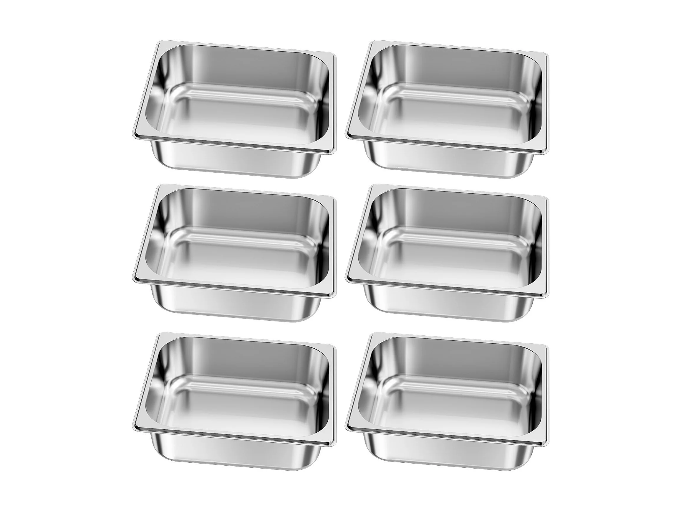 Assiette Plate SucceBuy Lot de 6 Casseroles D'Hôtel de Taille 1/3, Casserole Profonde en Acier Inoxydable de 10.2CM pour Table à Vapeur