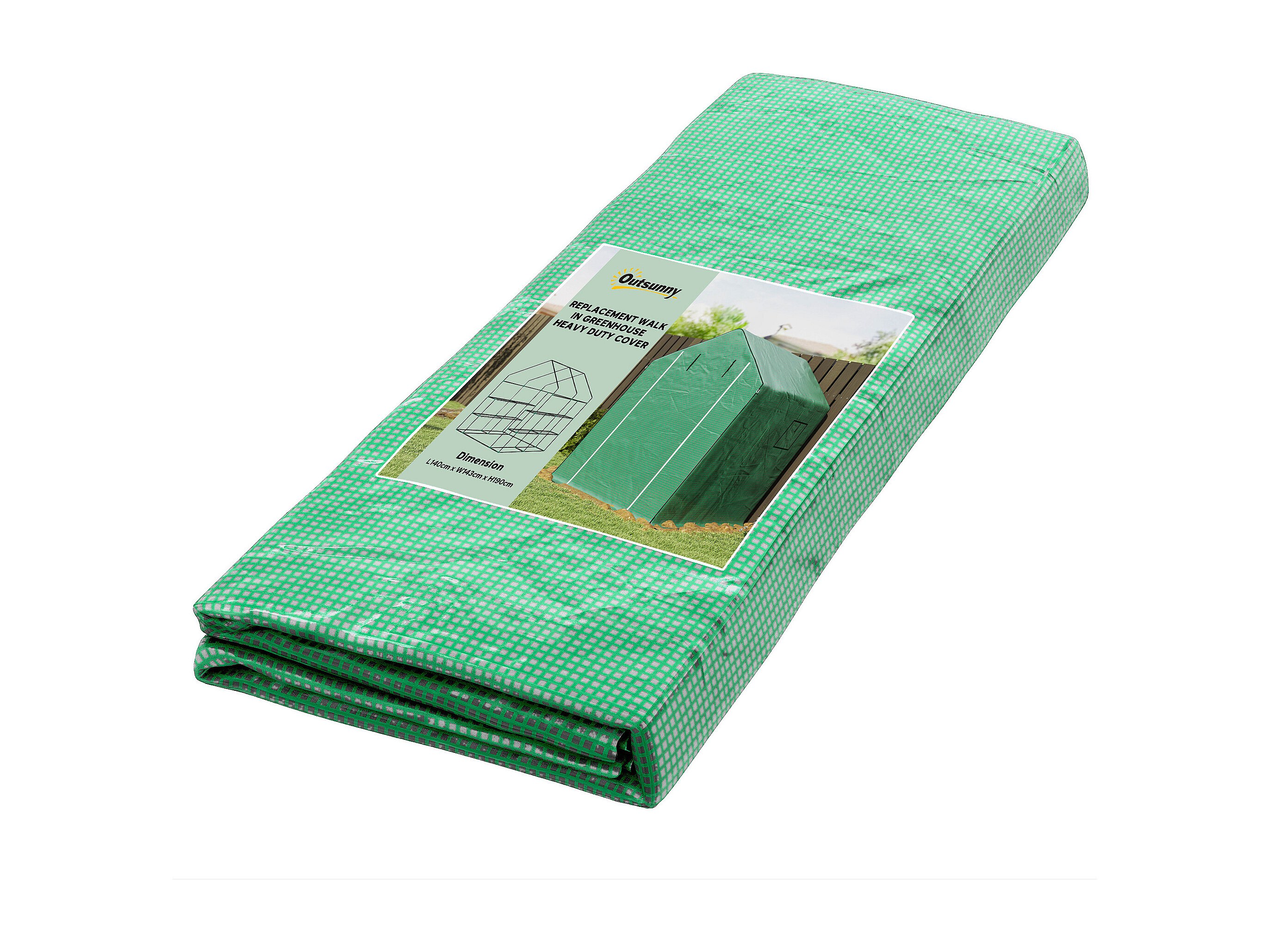 Bâche de remplacement serre de jardin dim. 140L x 143l x 190H cm - 2 fenêtres, porte zippée enroulable - PE anti-UV imperméable vert