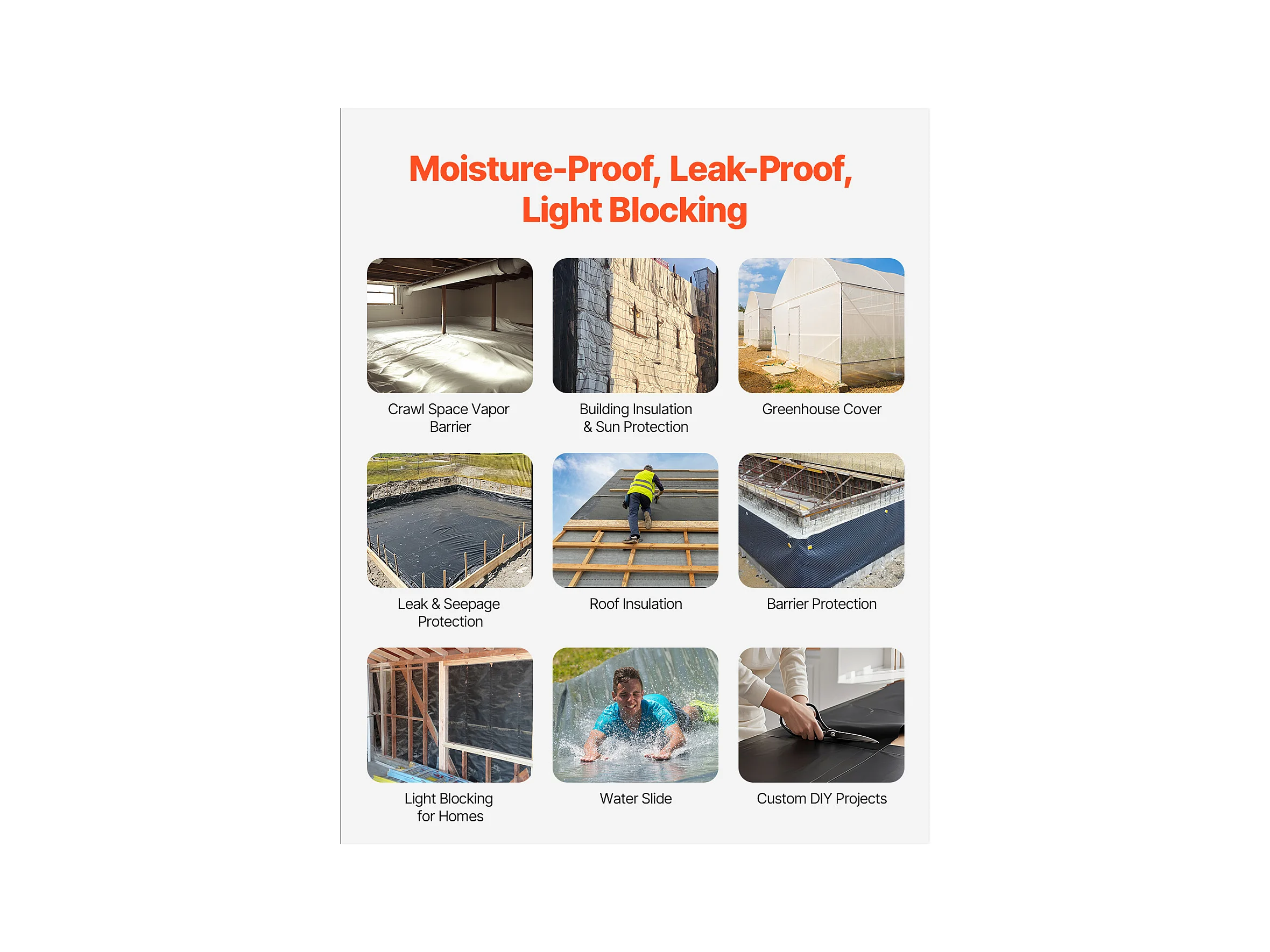 Bâche Plastique Robuste SucceBuy Rouleau de Film Plastique 0.35 mm, 305 x 3048 cm, Film Robuste, Côtés Noir et Blanc