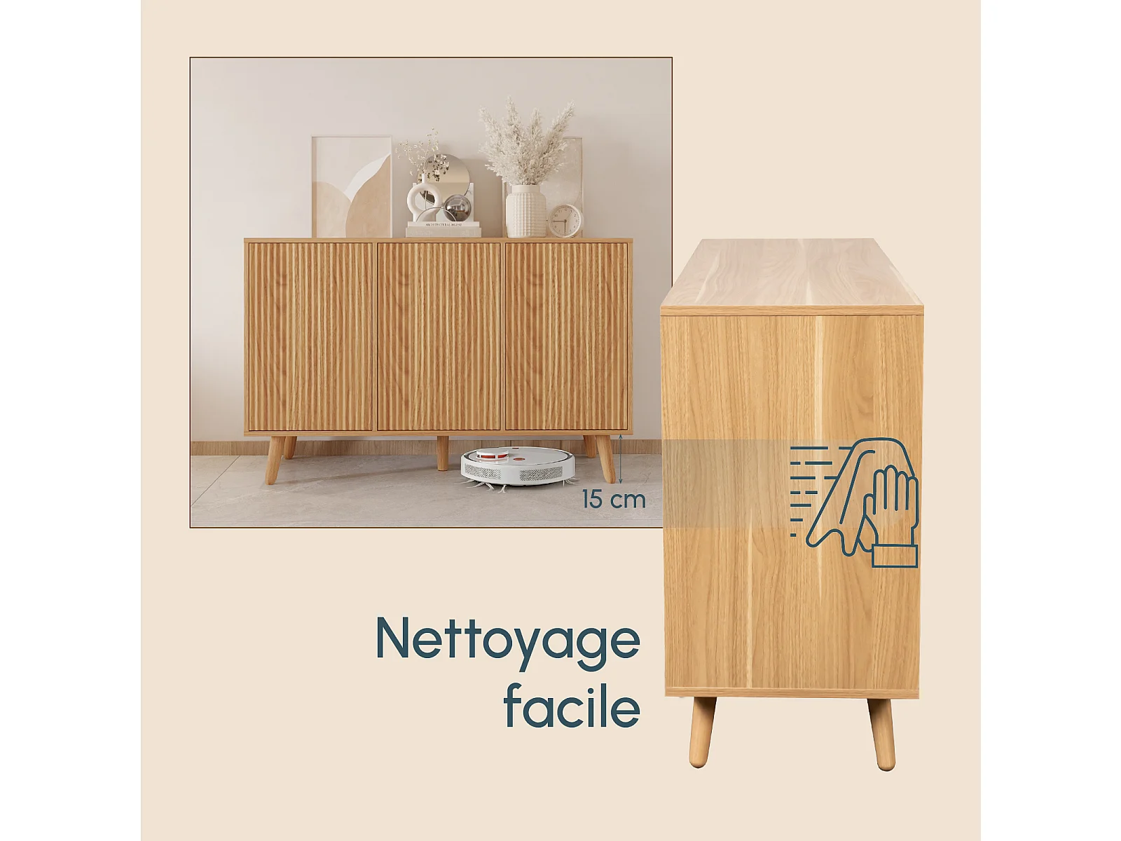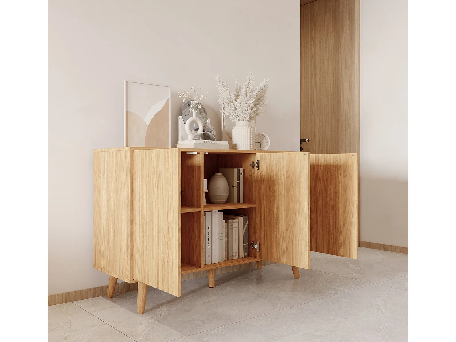 Bahut Buffet pour Salon Salle à manger en Coleur Chêne Alba 120x40x76cm Renzo