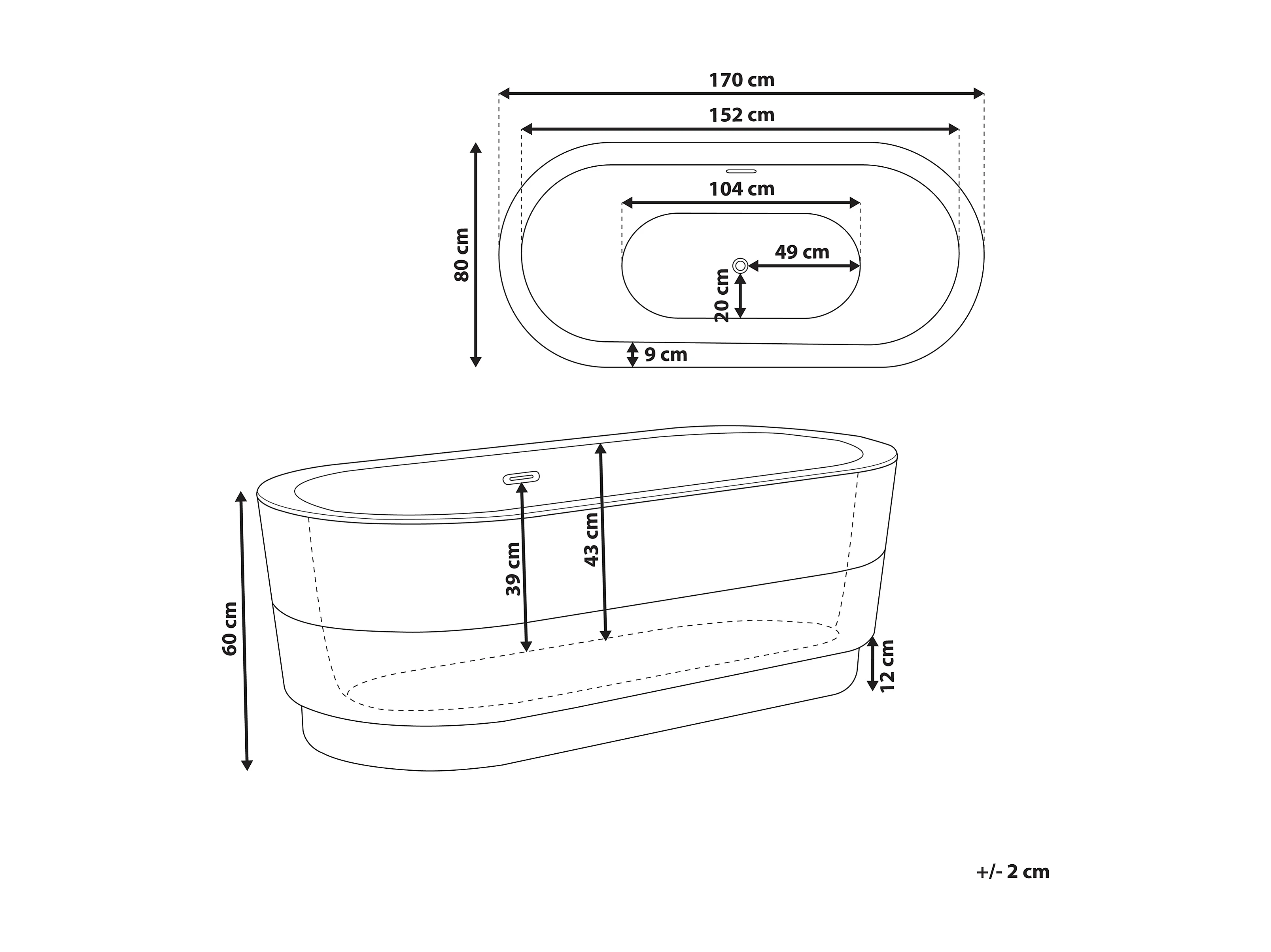 Baignoire îlot EMPRESA 170 x 80 cm Blanc