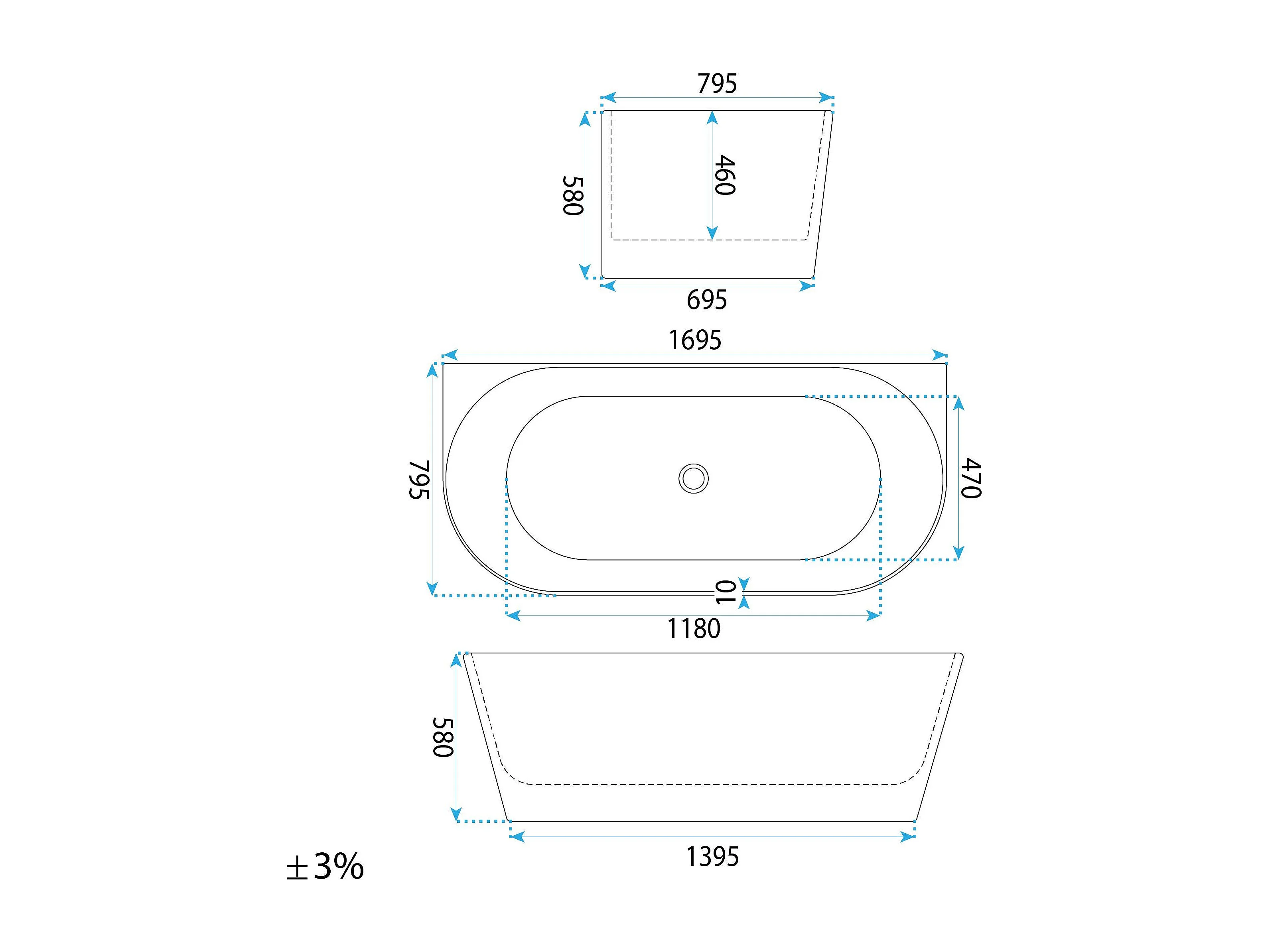 Baignoire Murale Rea Capri Slim 170 White
