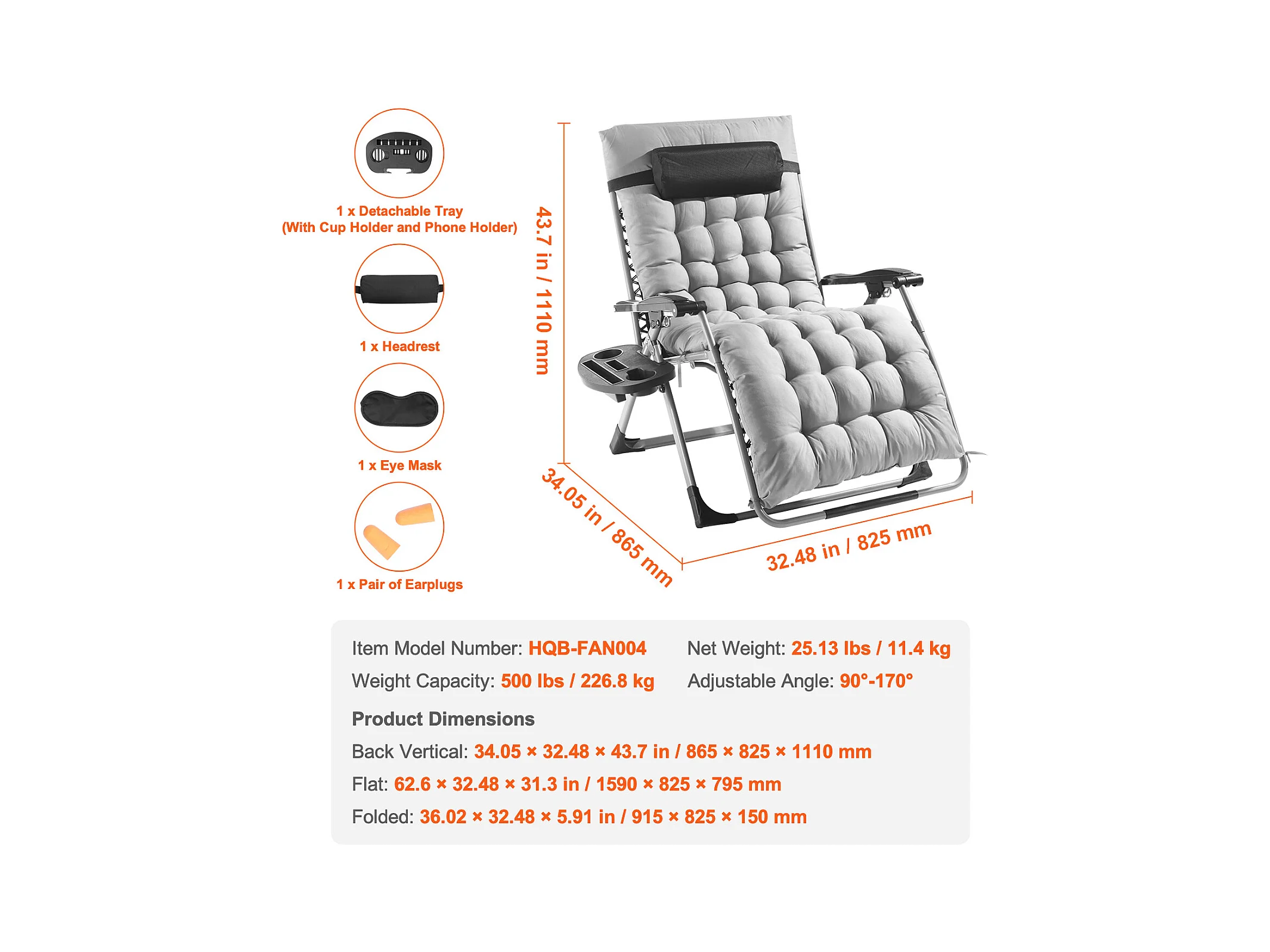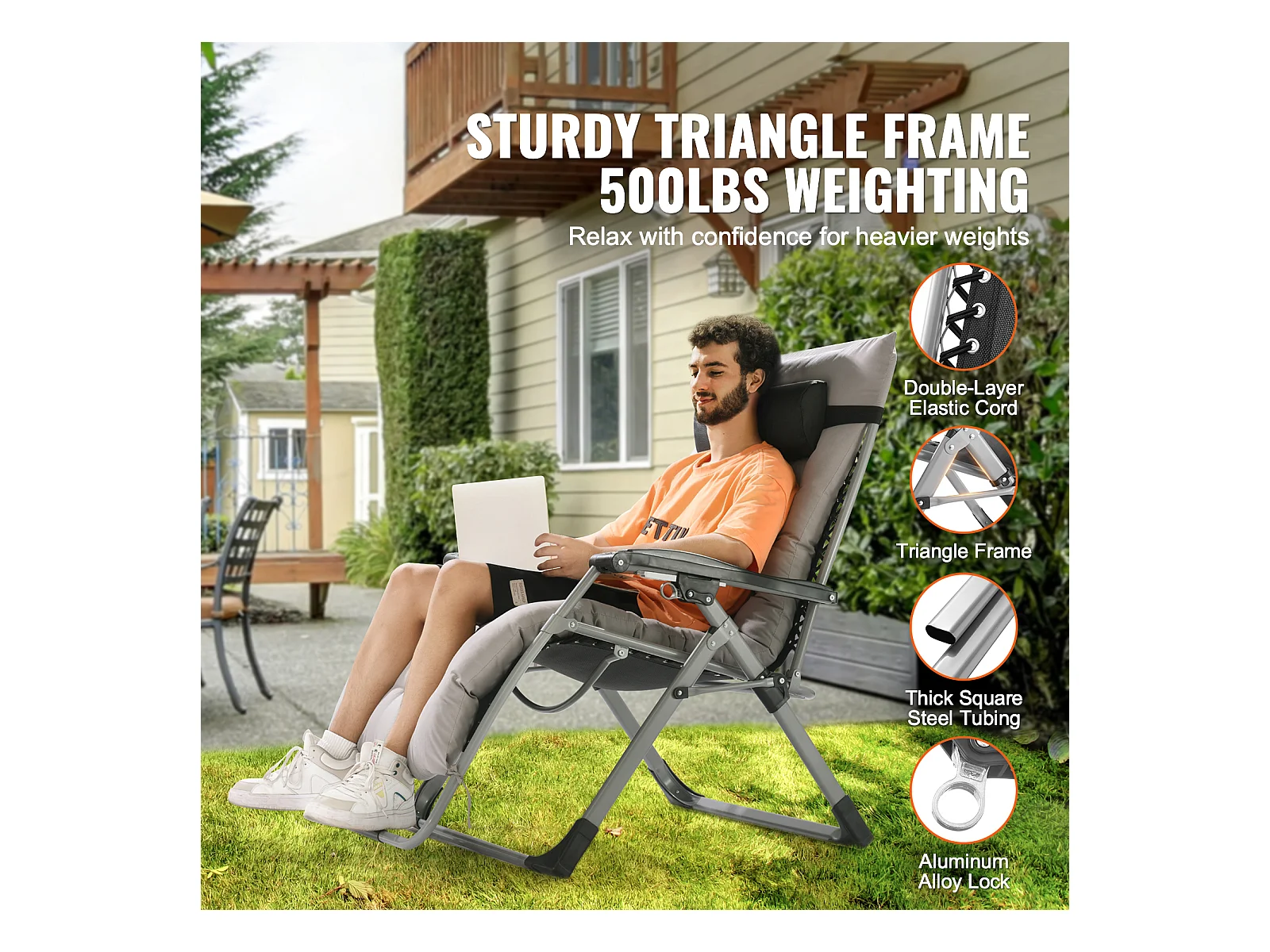 Bain de Soleil SucceBuy Chaise Longue Inclinable Zero Gravity de 66 cm pour une Utilisation en Intérieur et en Extérieur Gris