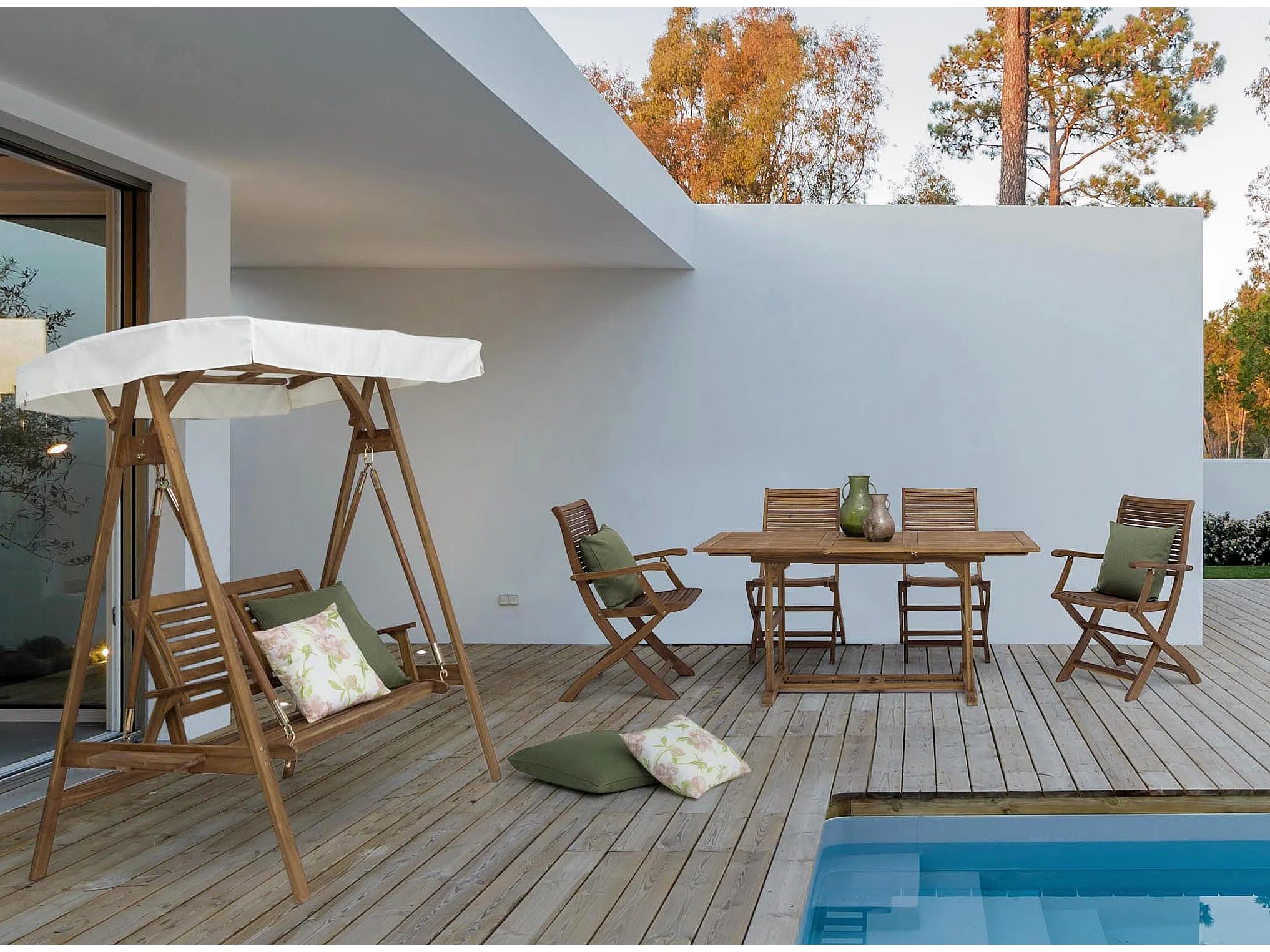 Balancelle 2 places NOEMI – Bois d’acacia huilé & coussins hydrofuges