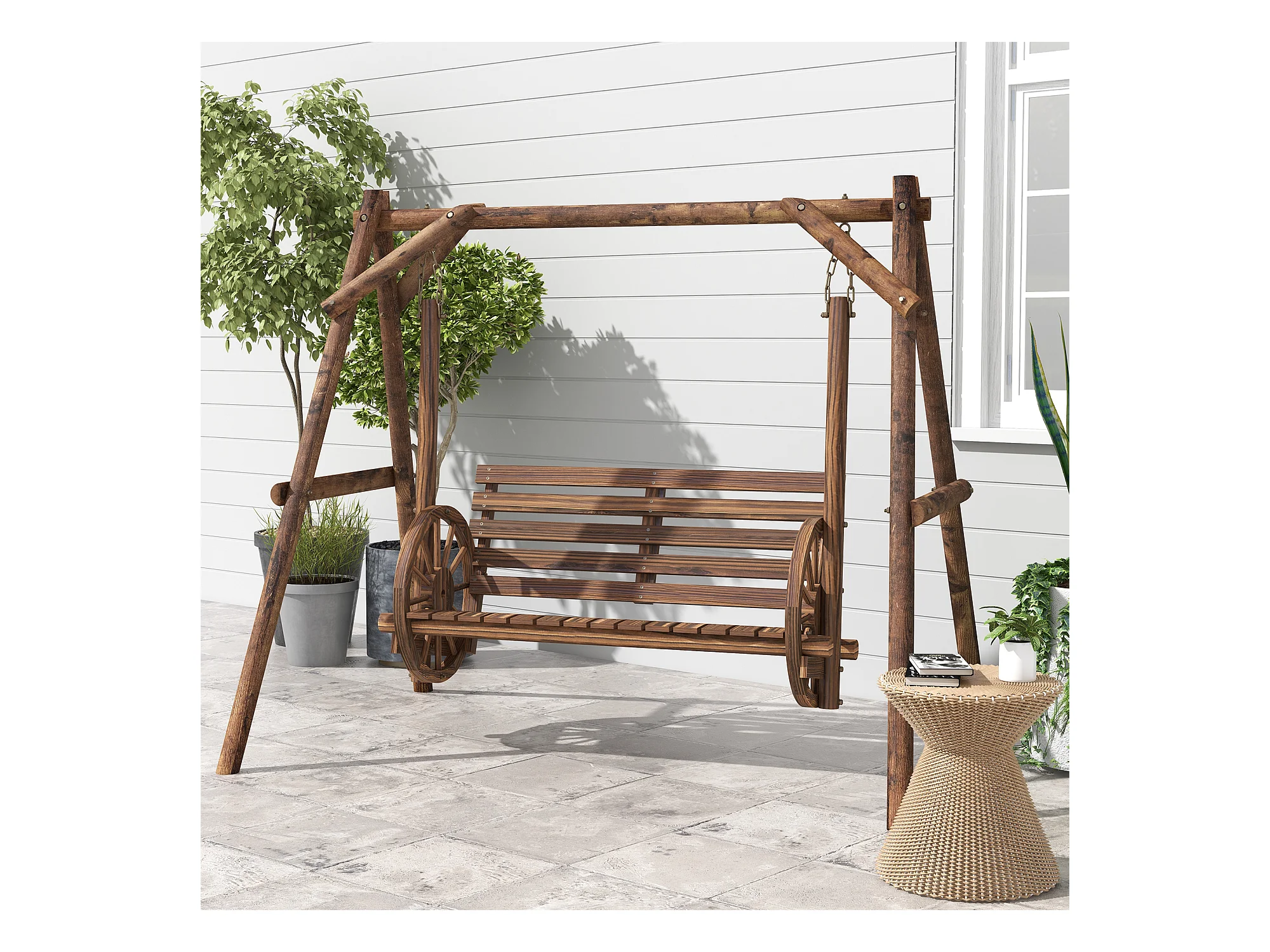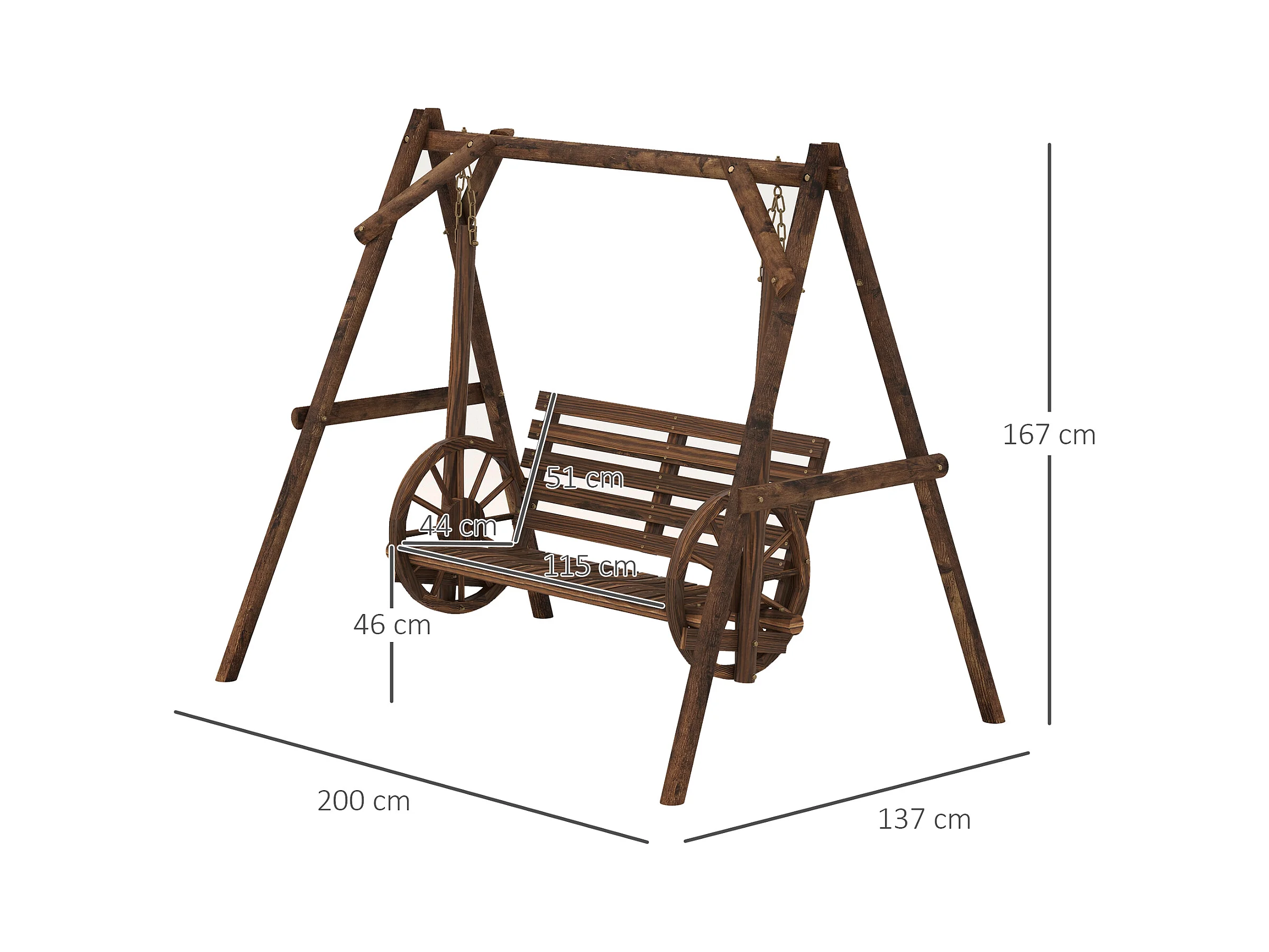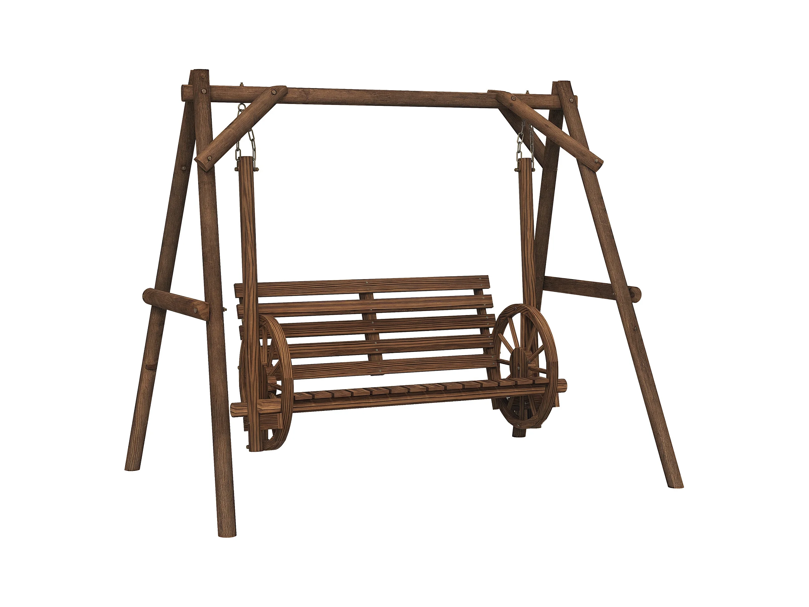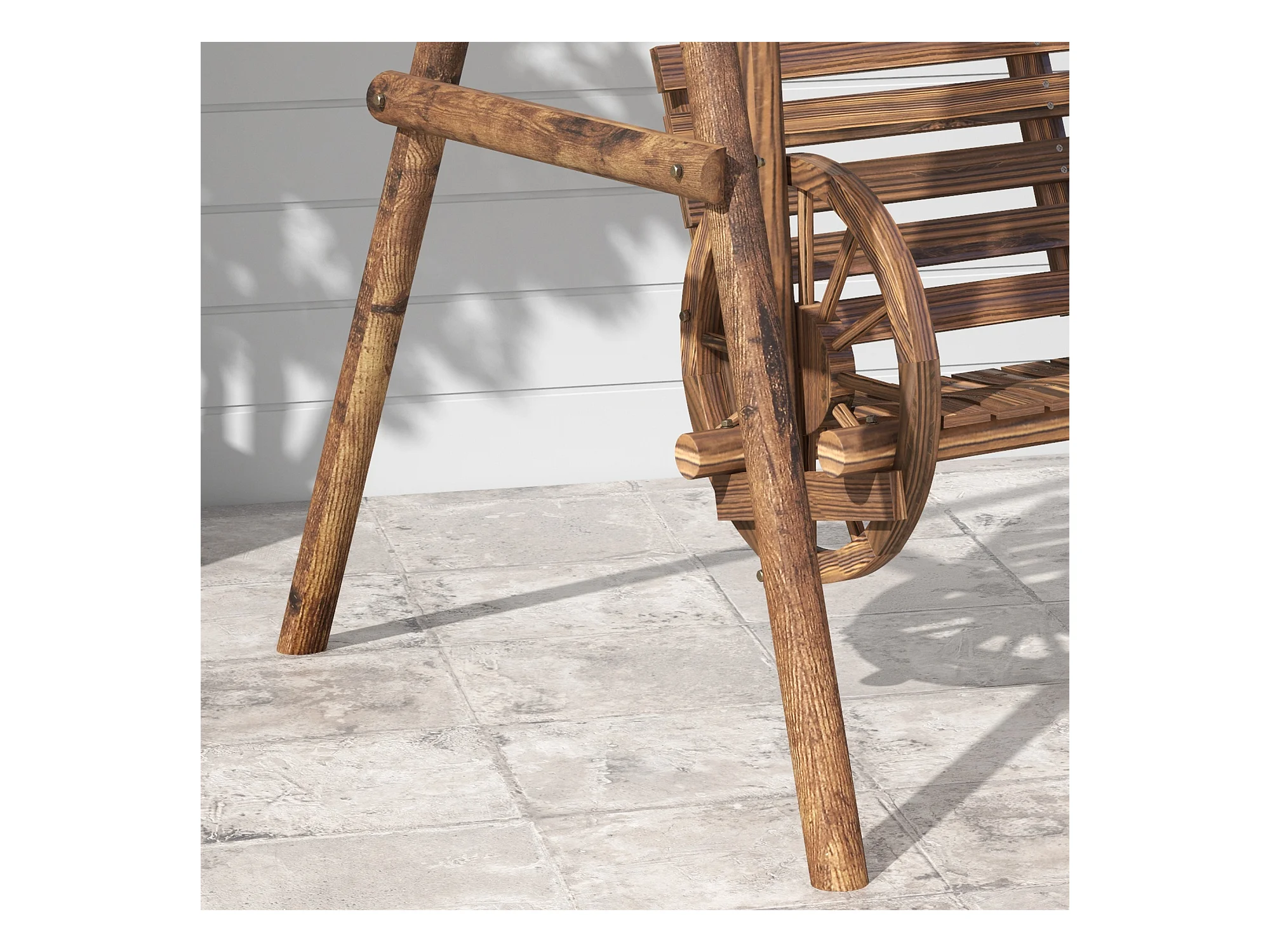 Balancelle de jardin 2 places style western - accoudoirs roues charrette - bois sapin traité carbonisation