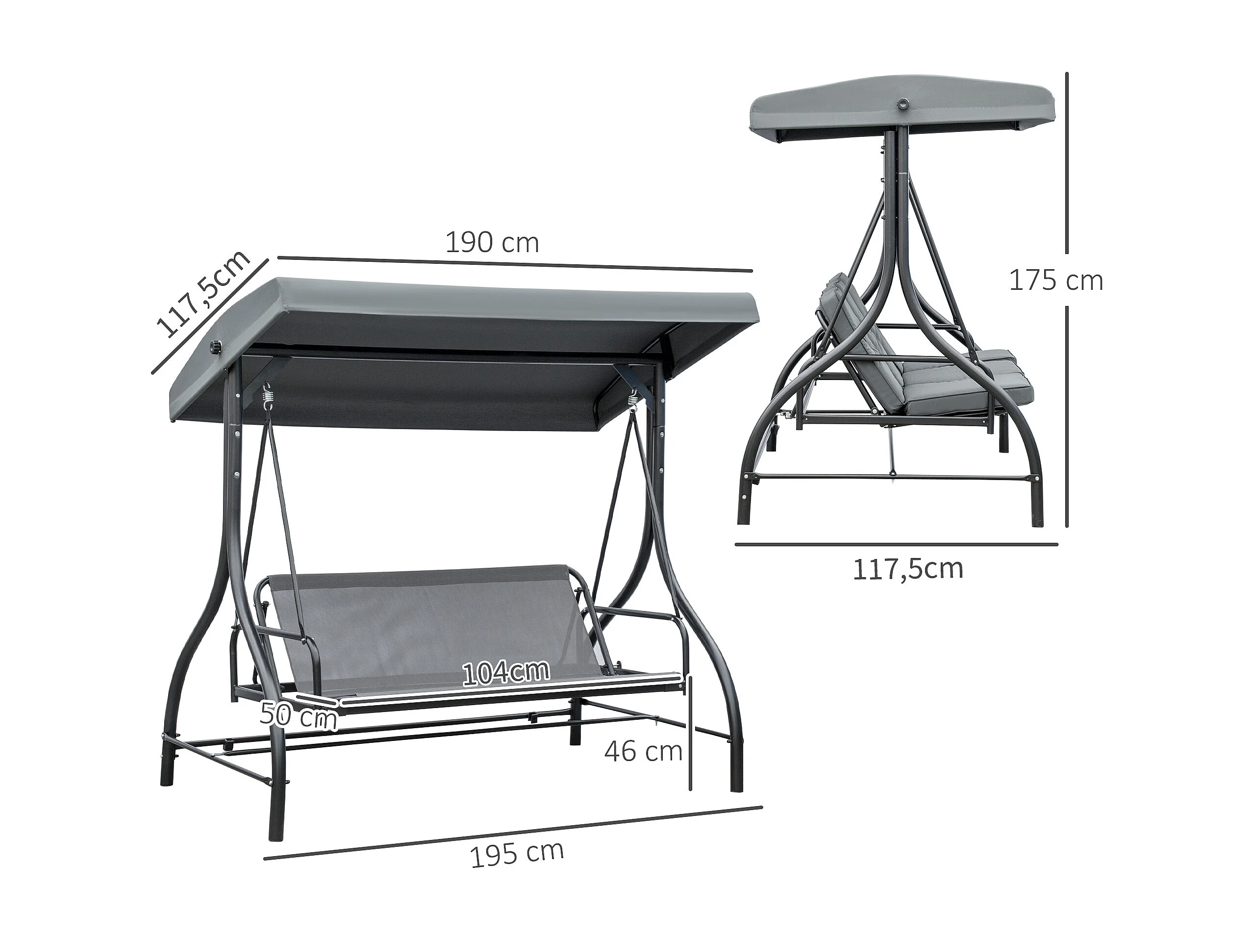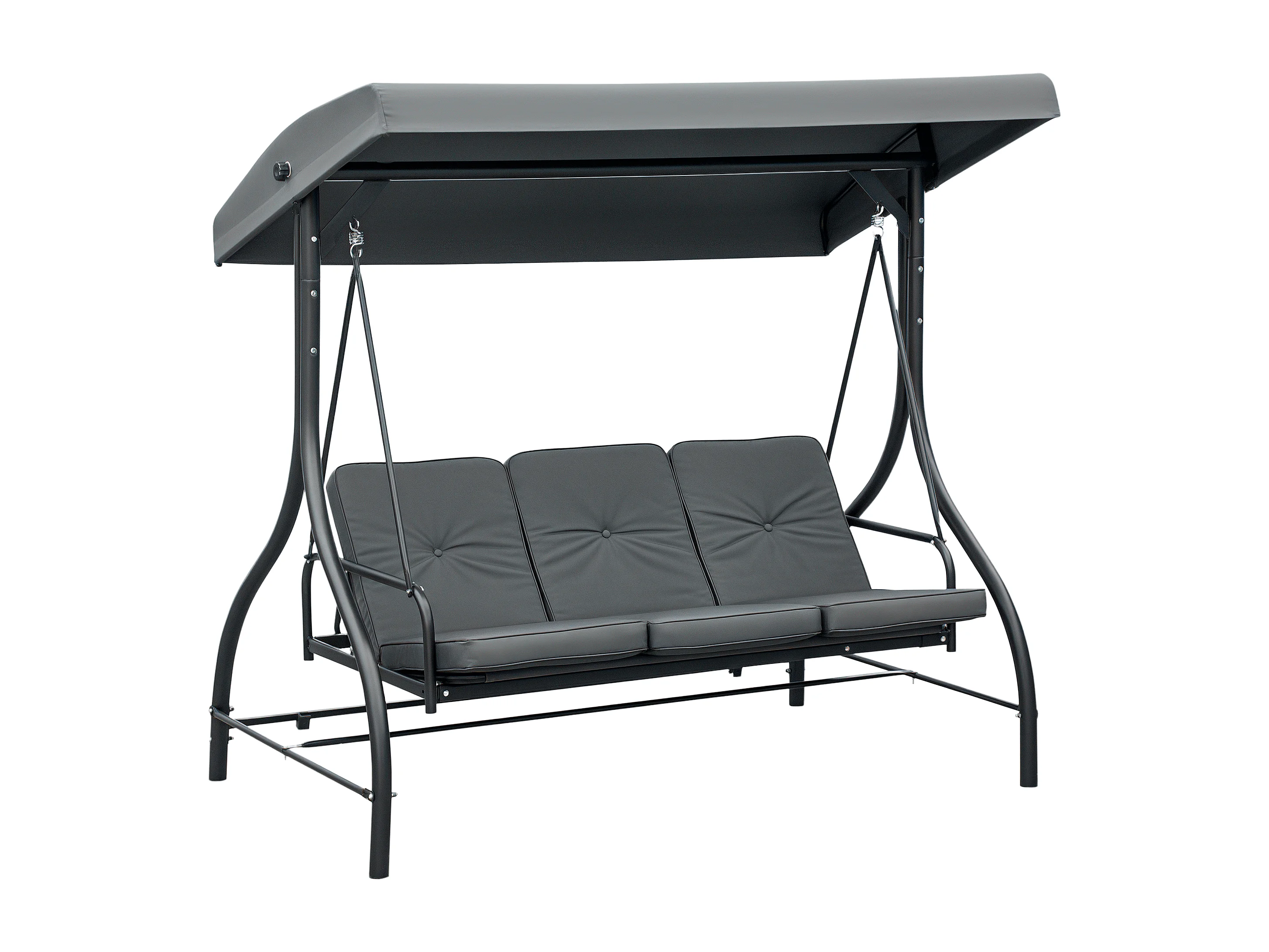 Balancelle de jardin 3 places convertible matelas fourni gris métal noir