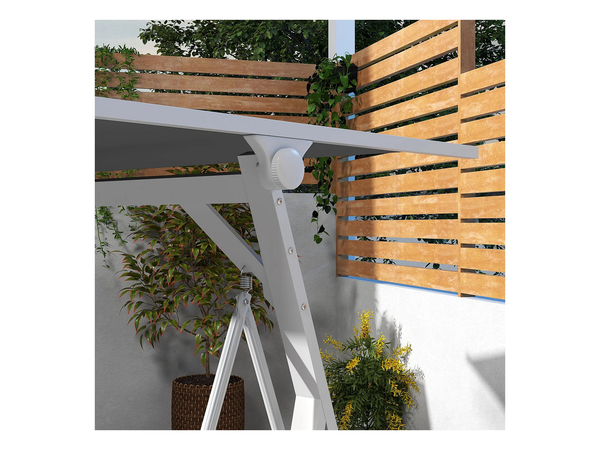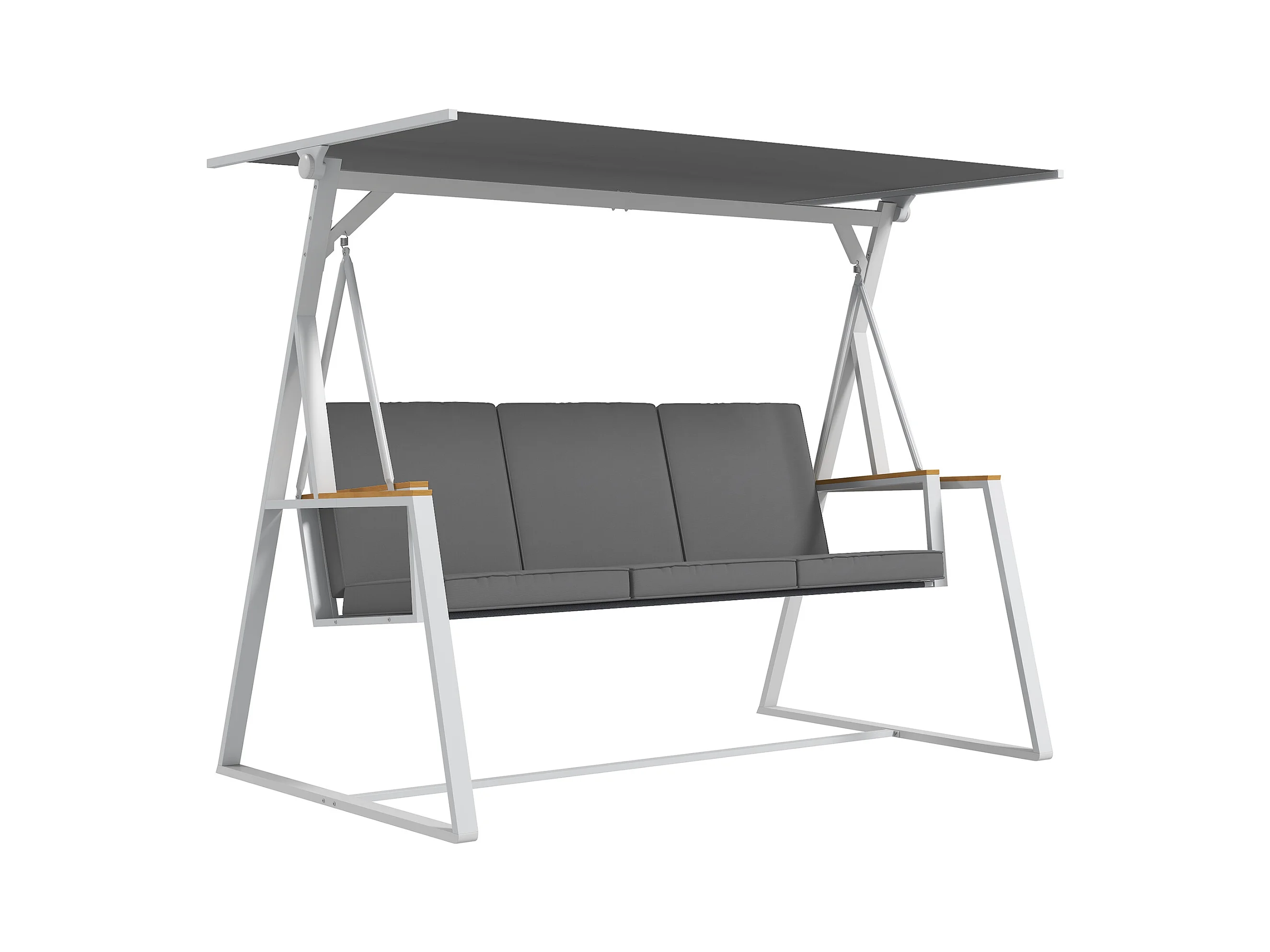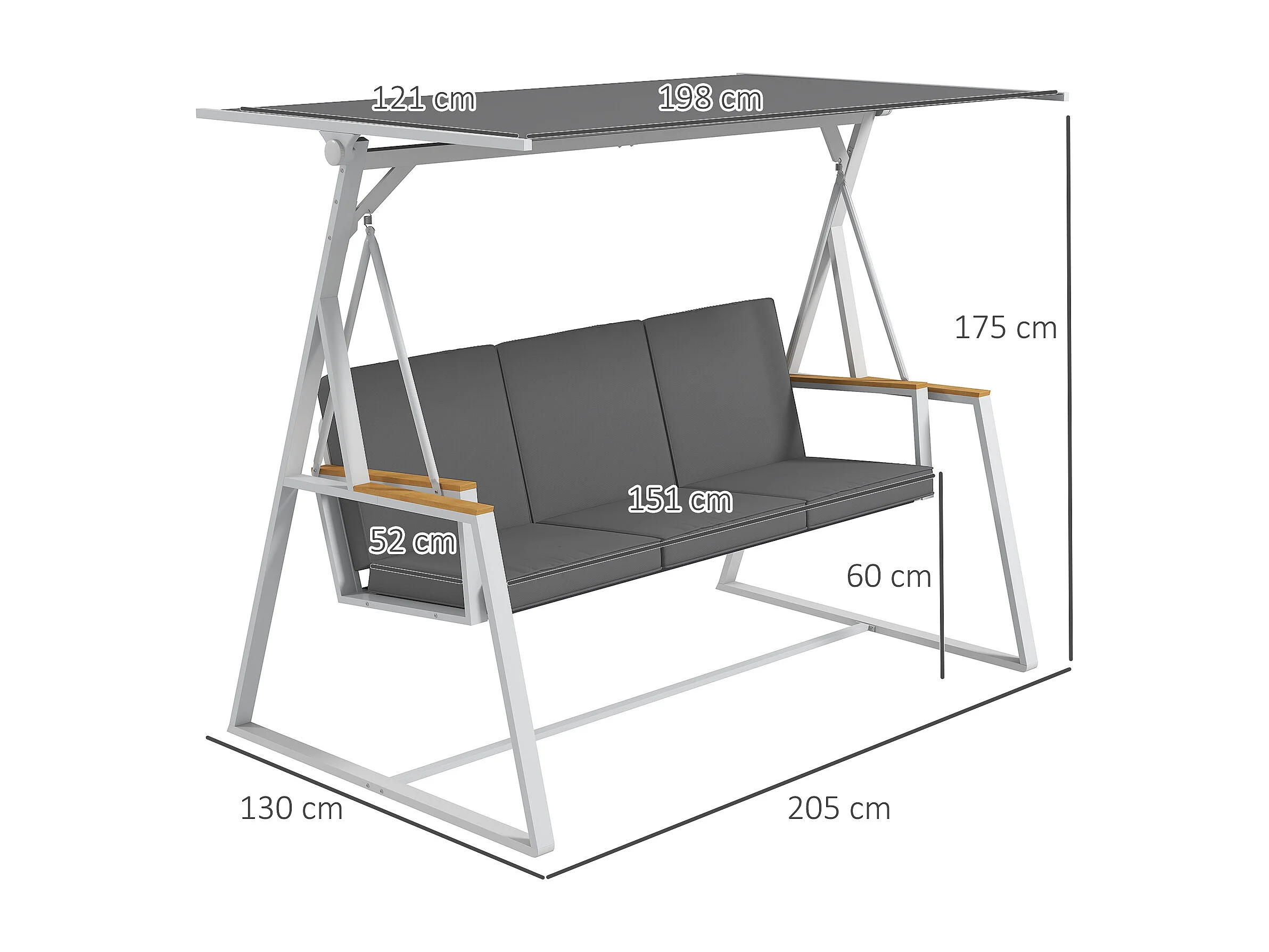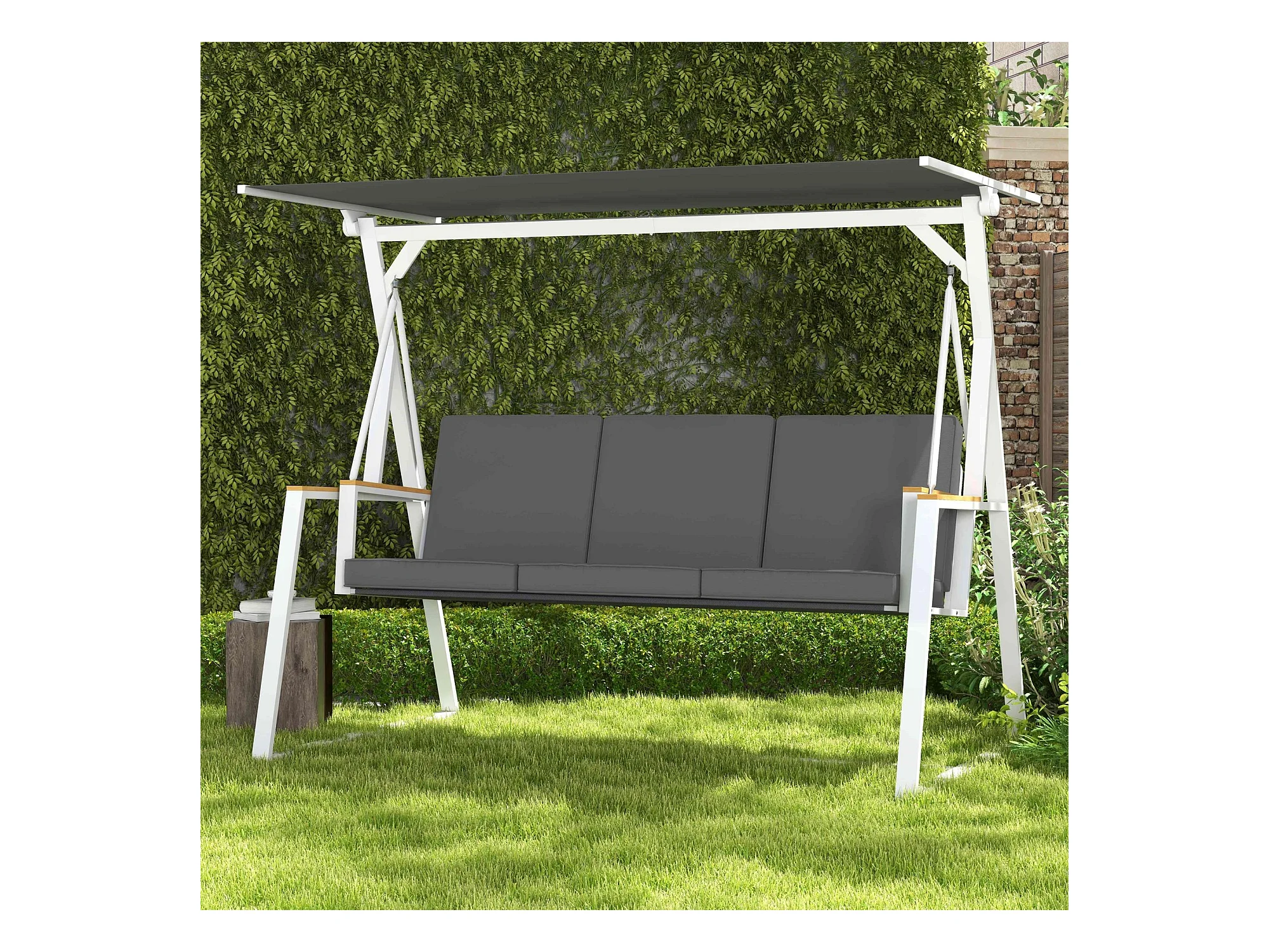 Balancelle de jardin design 3 places toit inclinaison réglable matelas fourni acier blanc tissu gris foncé