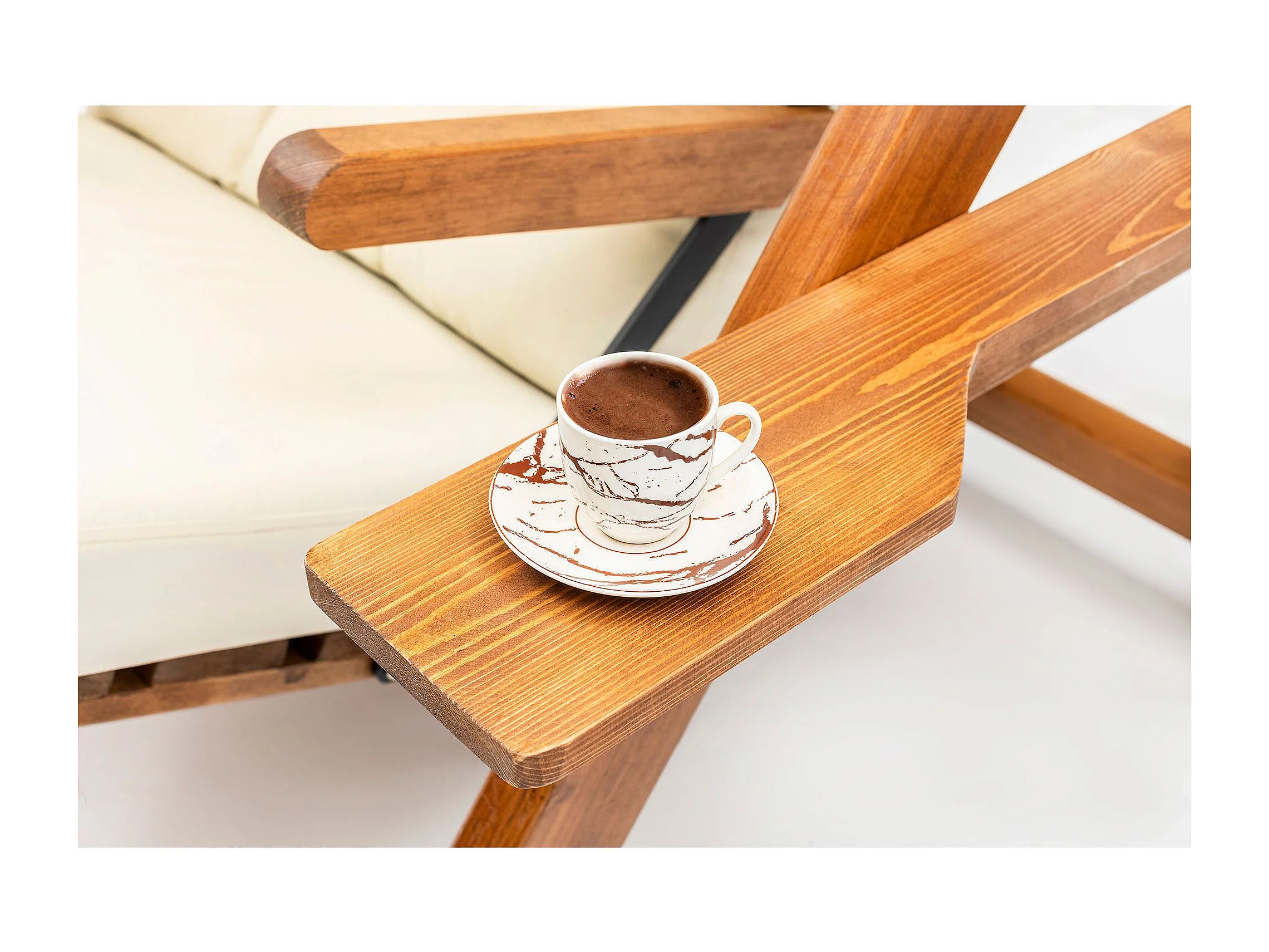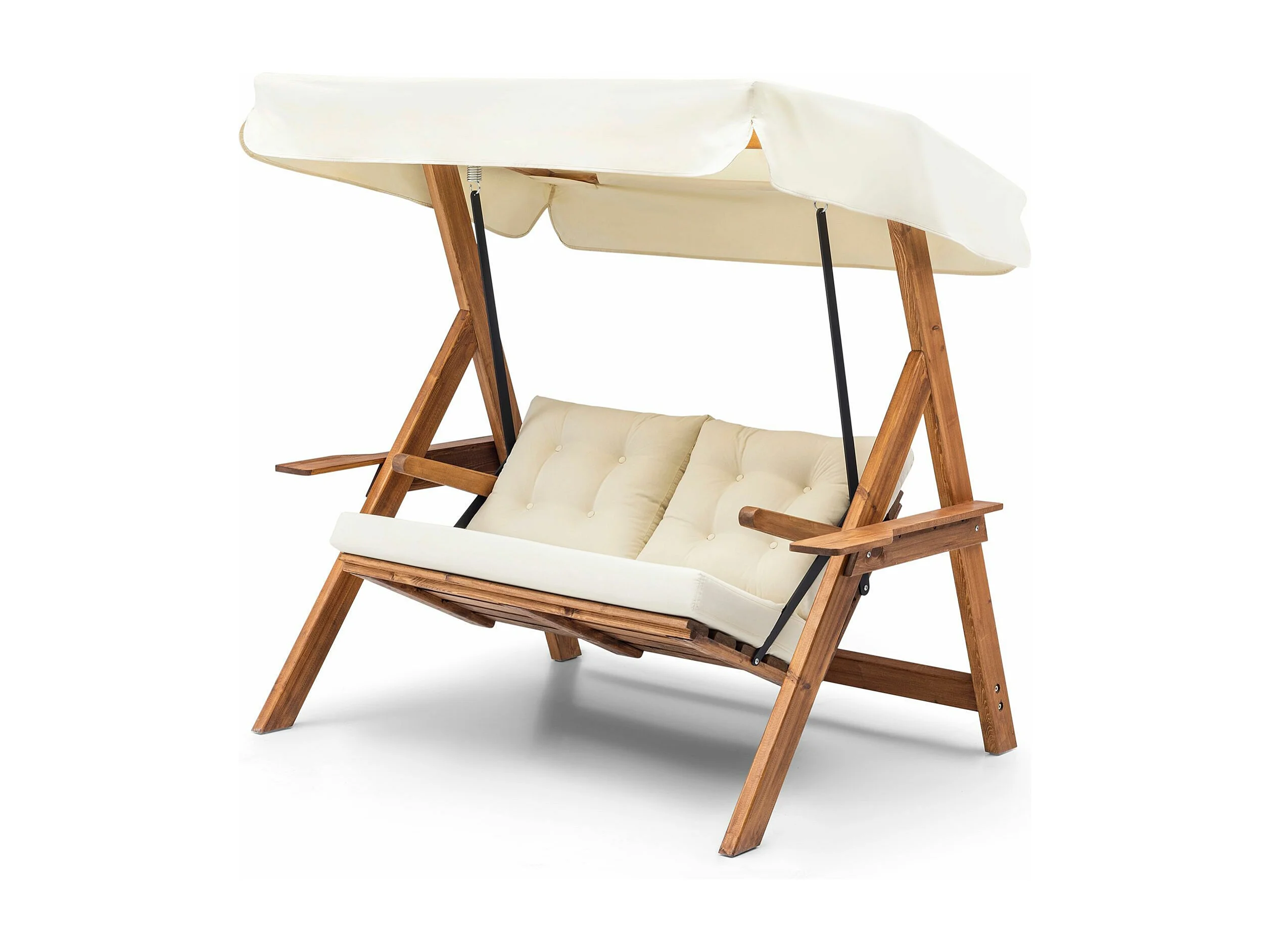 Balançoire de jardin 2 places Amso Pin massif clair et Tissu capitonné imperméable Blanc crème