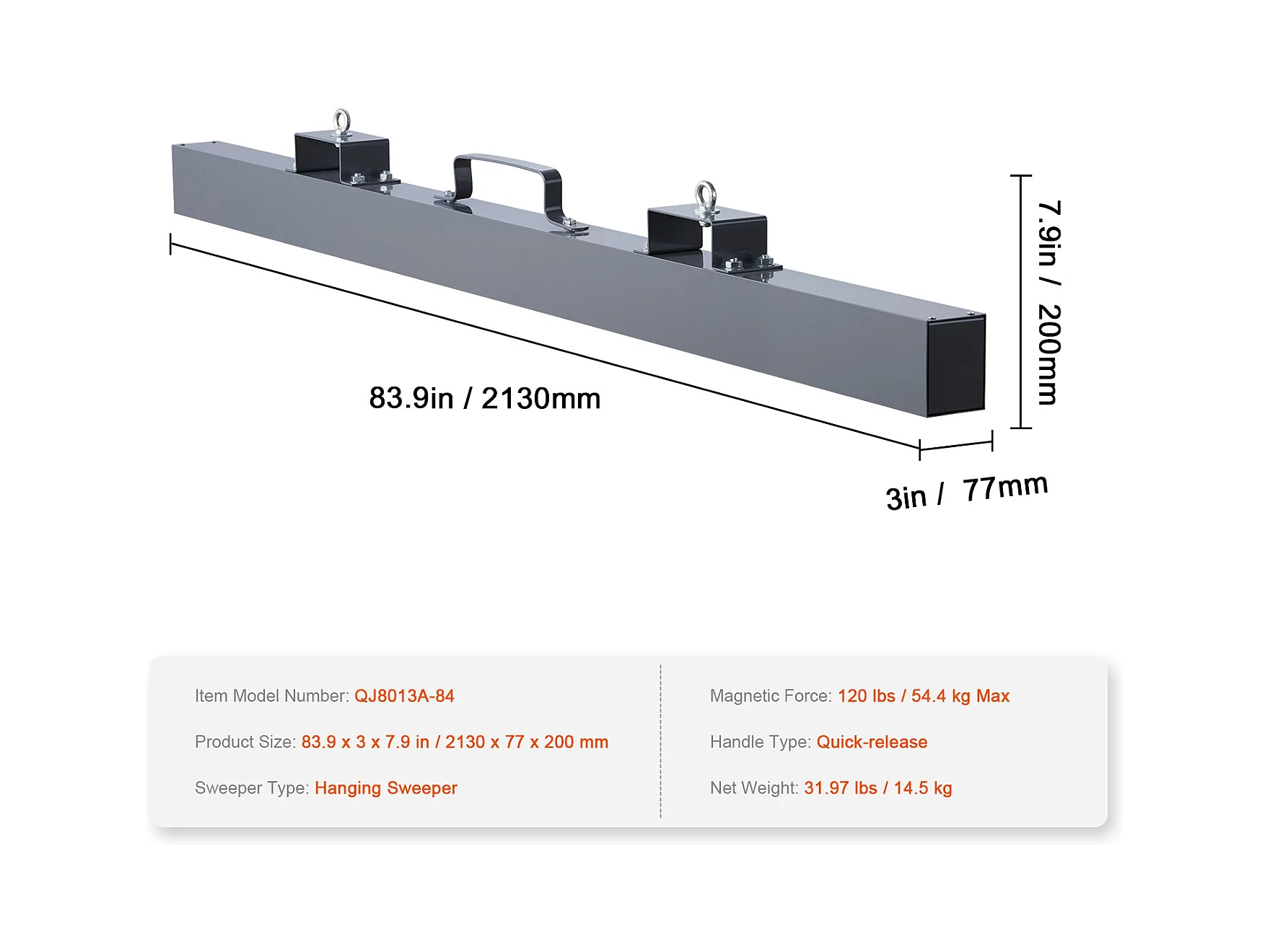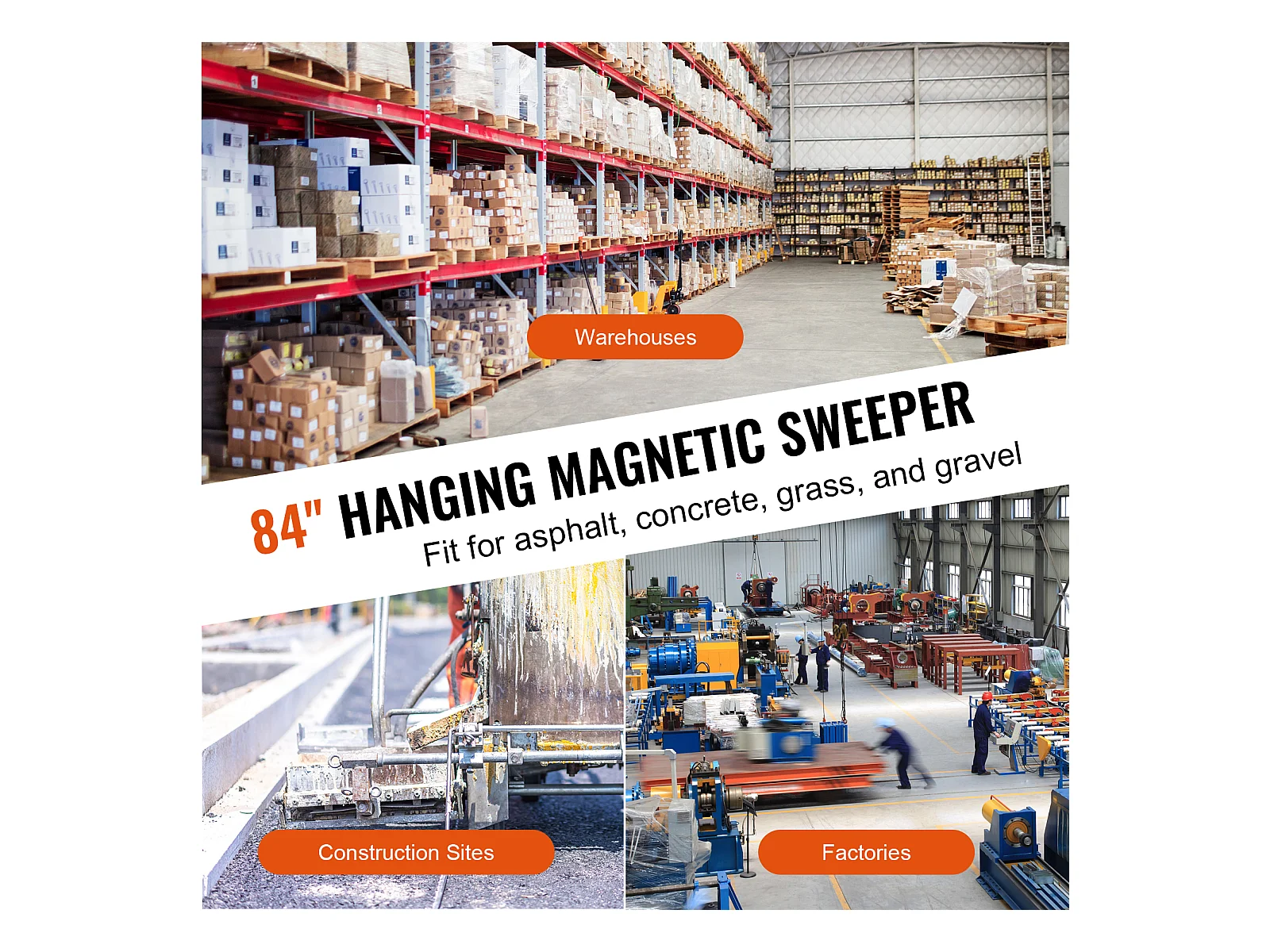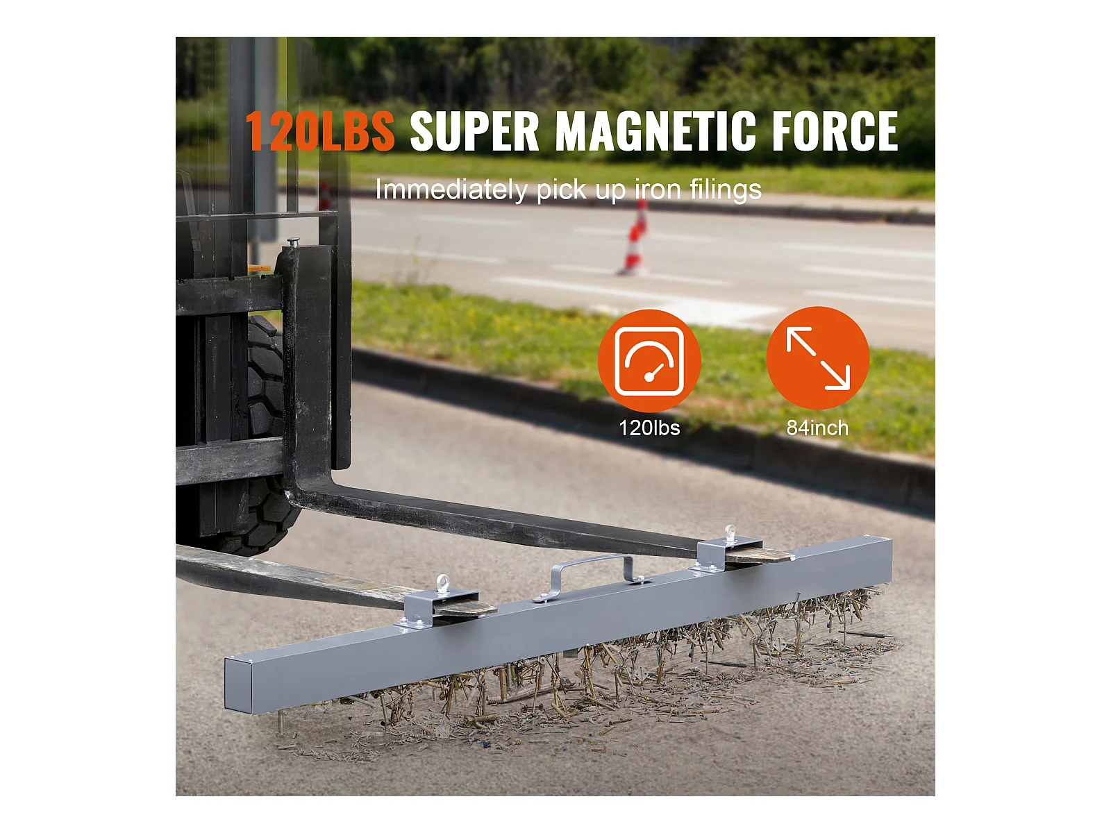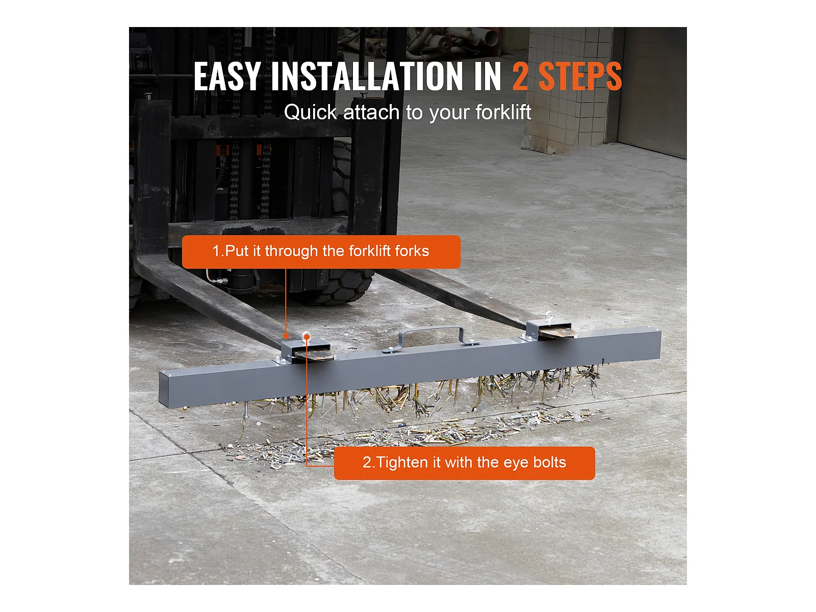 Balayeuse Magnétique, SucceBuy Balayeuse Magnétique de 213 cm, Capacité de Levage de 54,4 kg, Accessoire pour Chariot Élévateur, Utilisation Extérieure