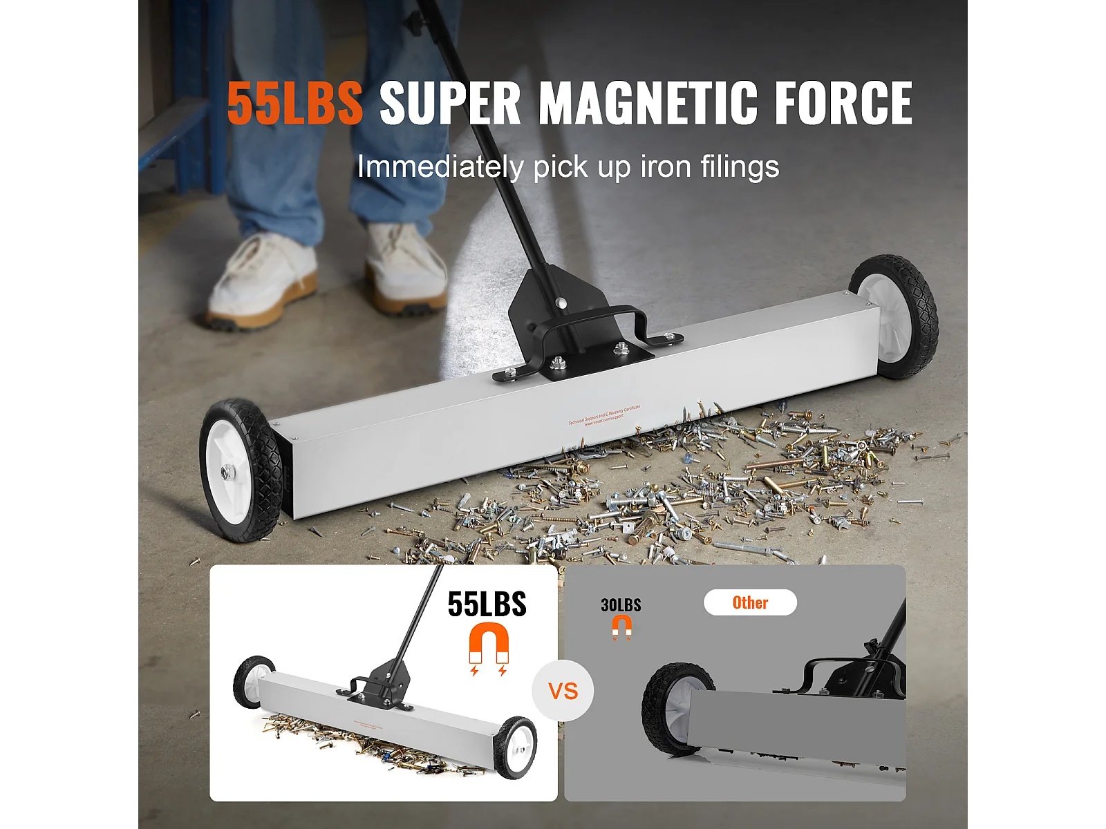 Balayeuse Magnétique, SucceBuy Balai Magnétique de 61 cm avec Roues, Outil de Ramassage Télescopique
