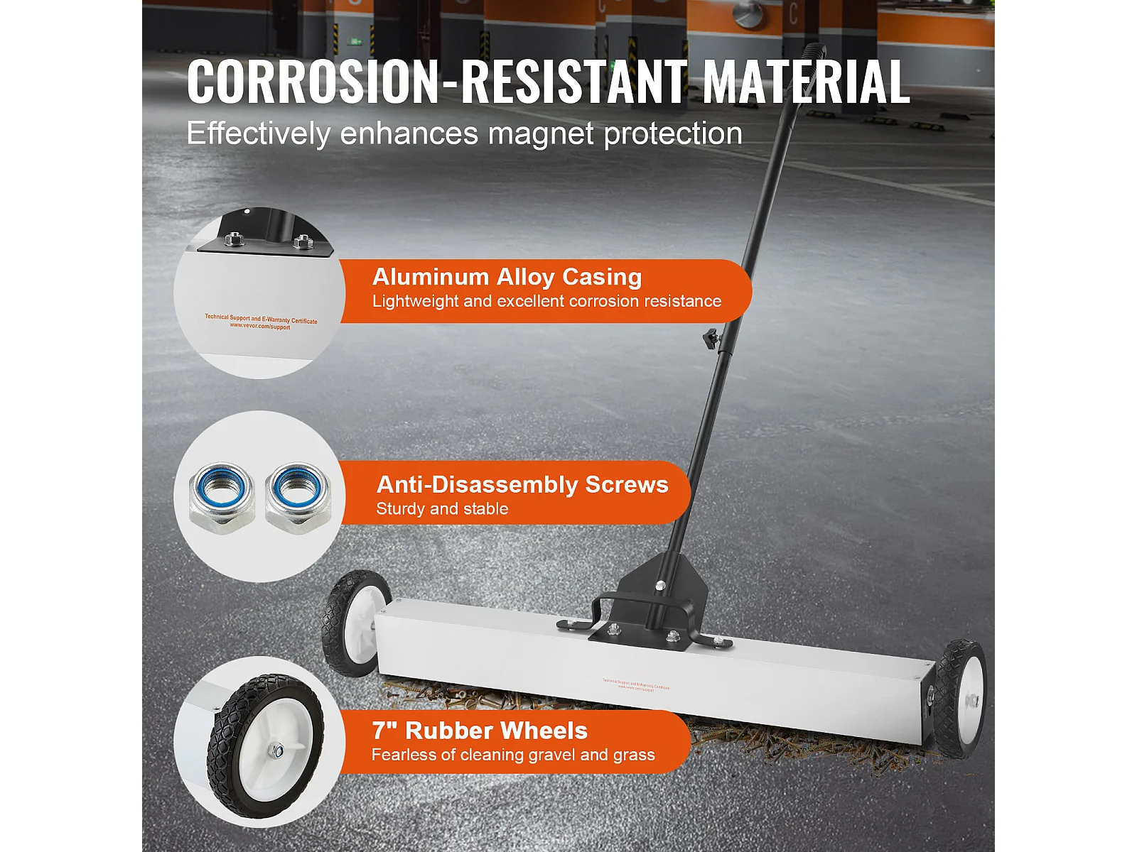 Balayeuse Magnétique, SucceBuy Balayeuse Magnétique de 91 cm avec Roues, 25 kg, pour Pelouse et Jardin
