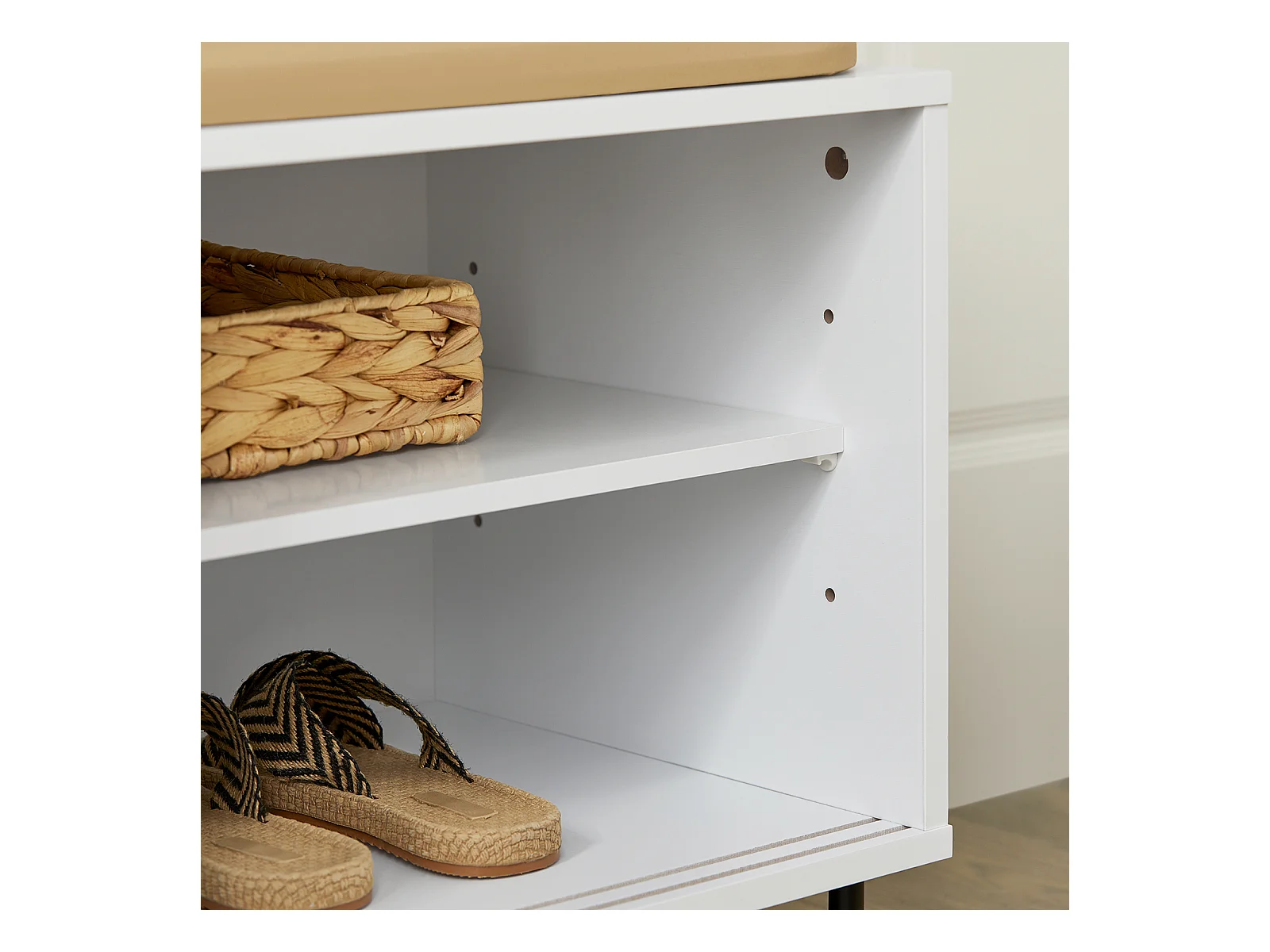 Banc à Chaussures Blanc avec Coussin d'Assise - L104 cm