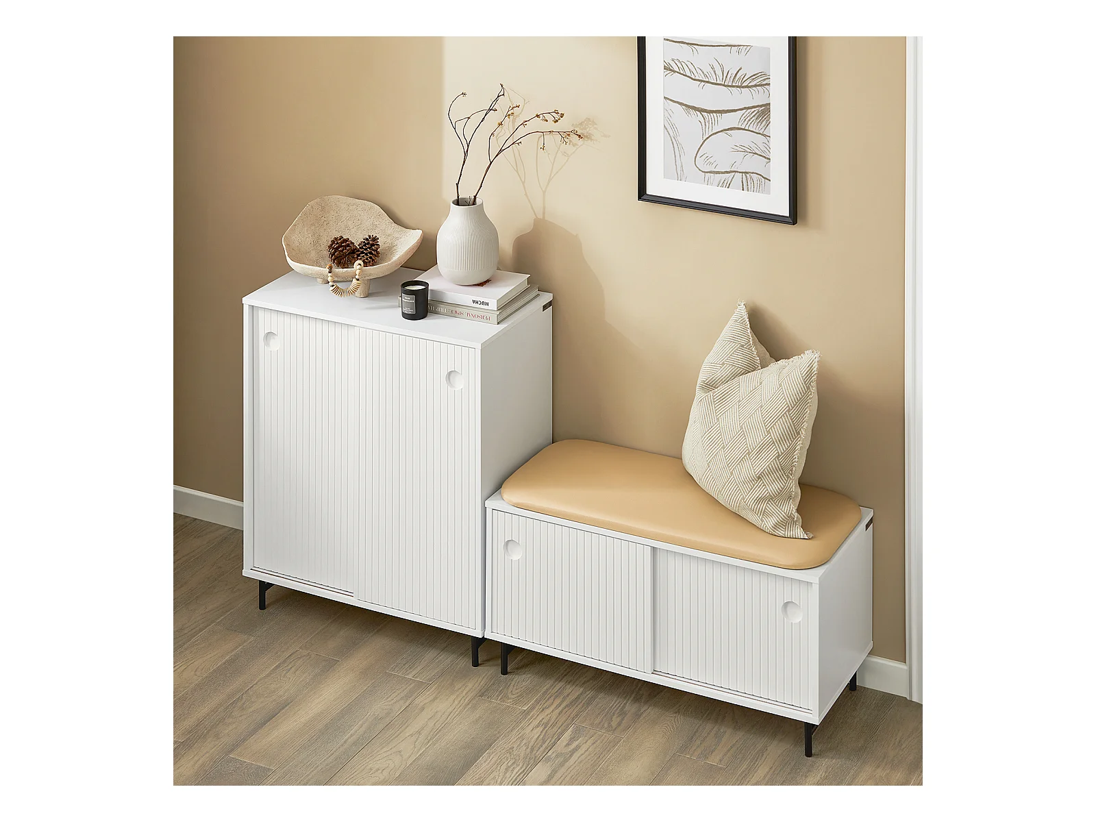 Banc de Rangement à Chaussures avec Coussin Rembourré Commode à Chaussures Meuble d'entrée, FSR74-W