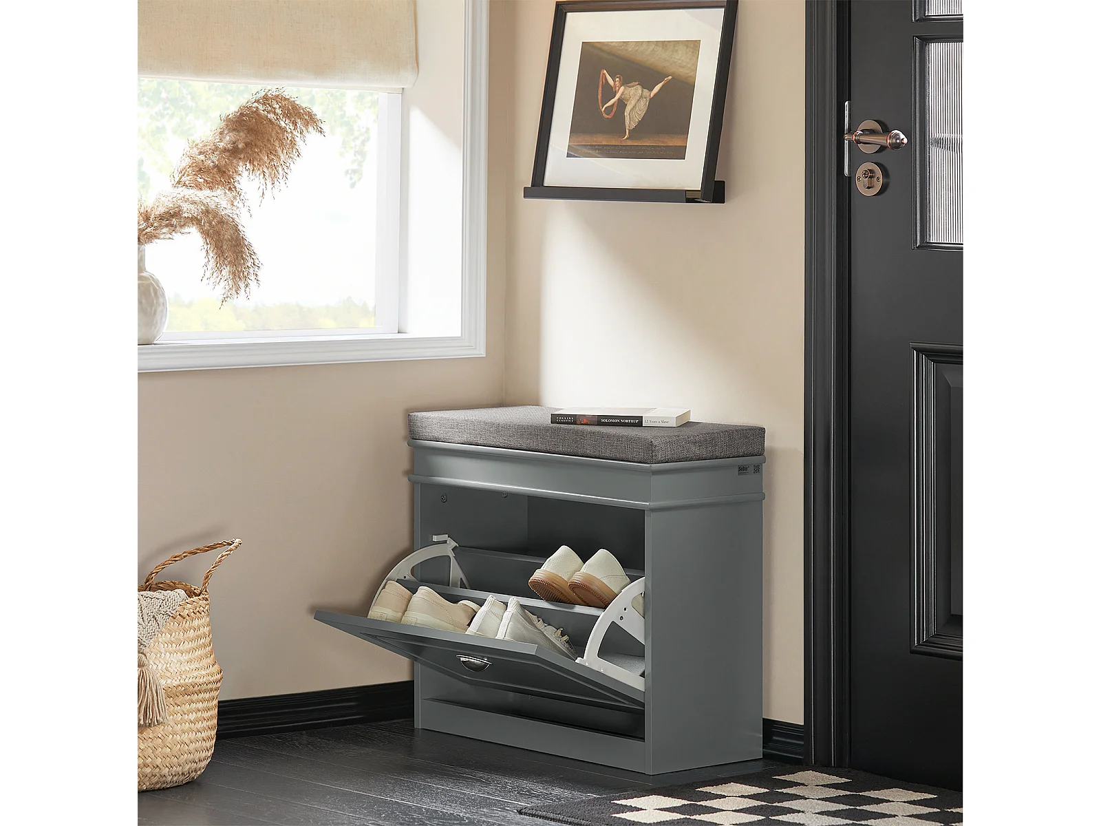 Banc de Rangement à Chaussures Armoire à Chaussures 2 Abattants avec Coussin Confortable, FSR64-HG