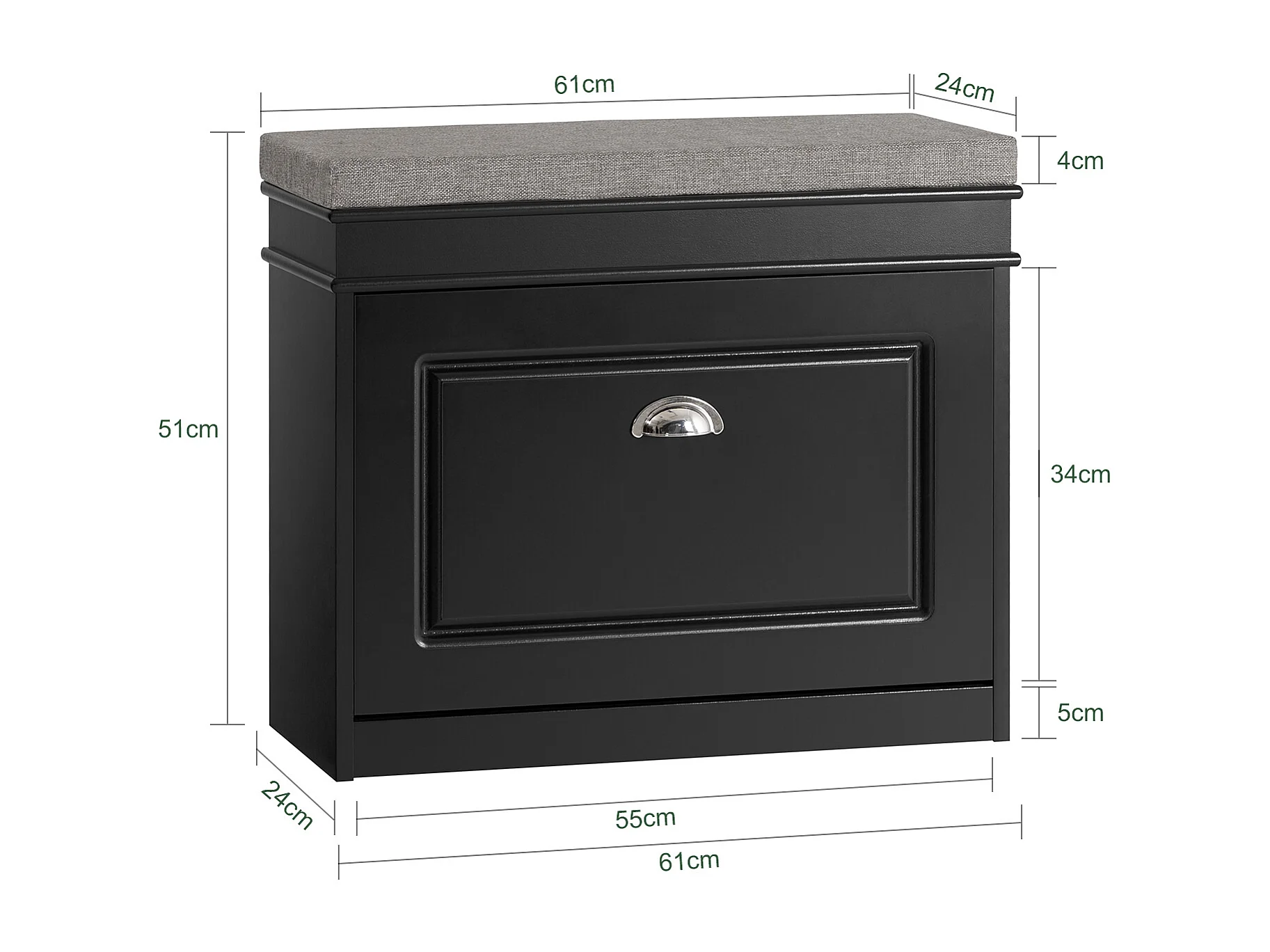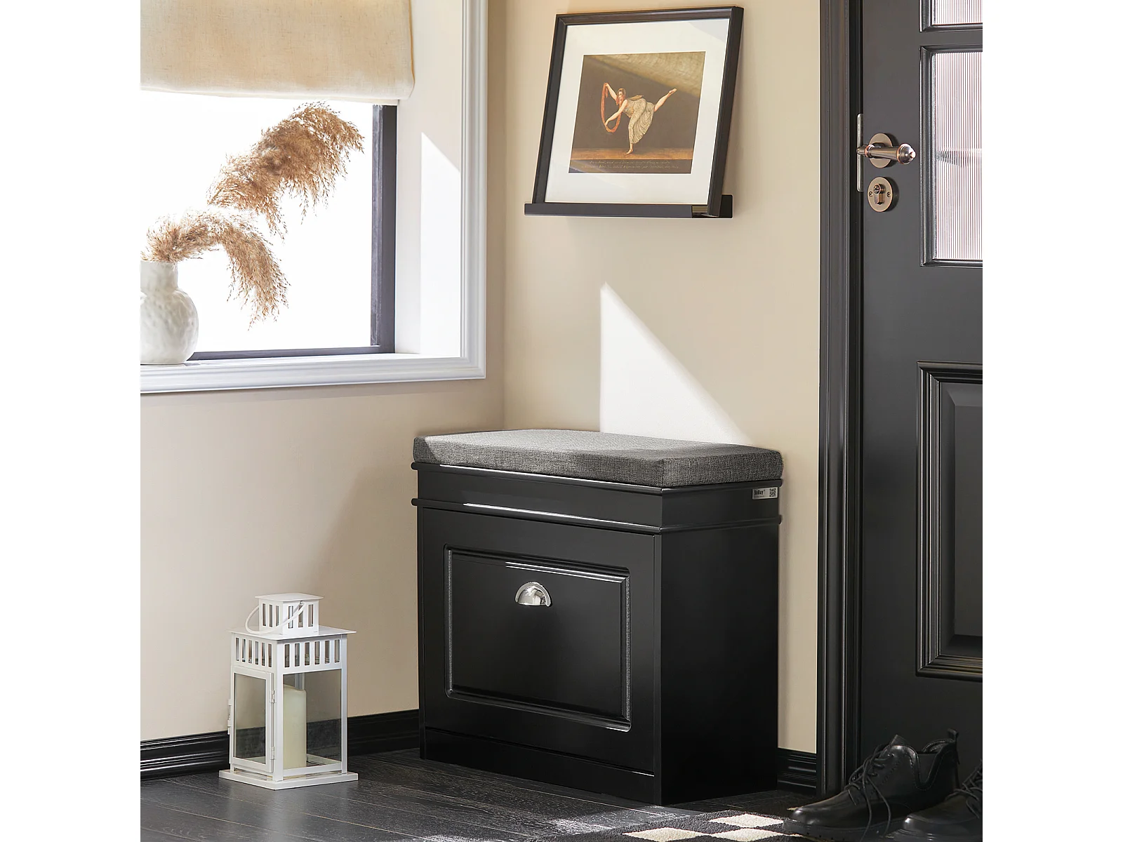 Banc à Chaussures Meuble à Chaussures avec Assise Coussin Rembourré et Abattant, FSR82-K-SCH