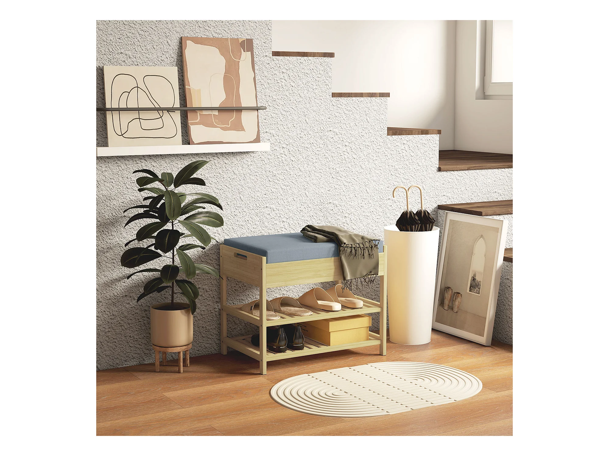 Banc à chaussures style cosy naturel 2 étagères avec coussin bambou