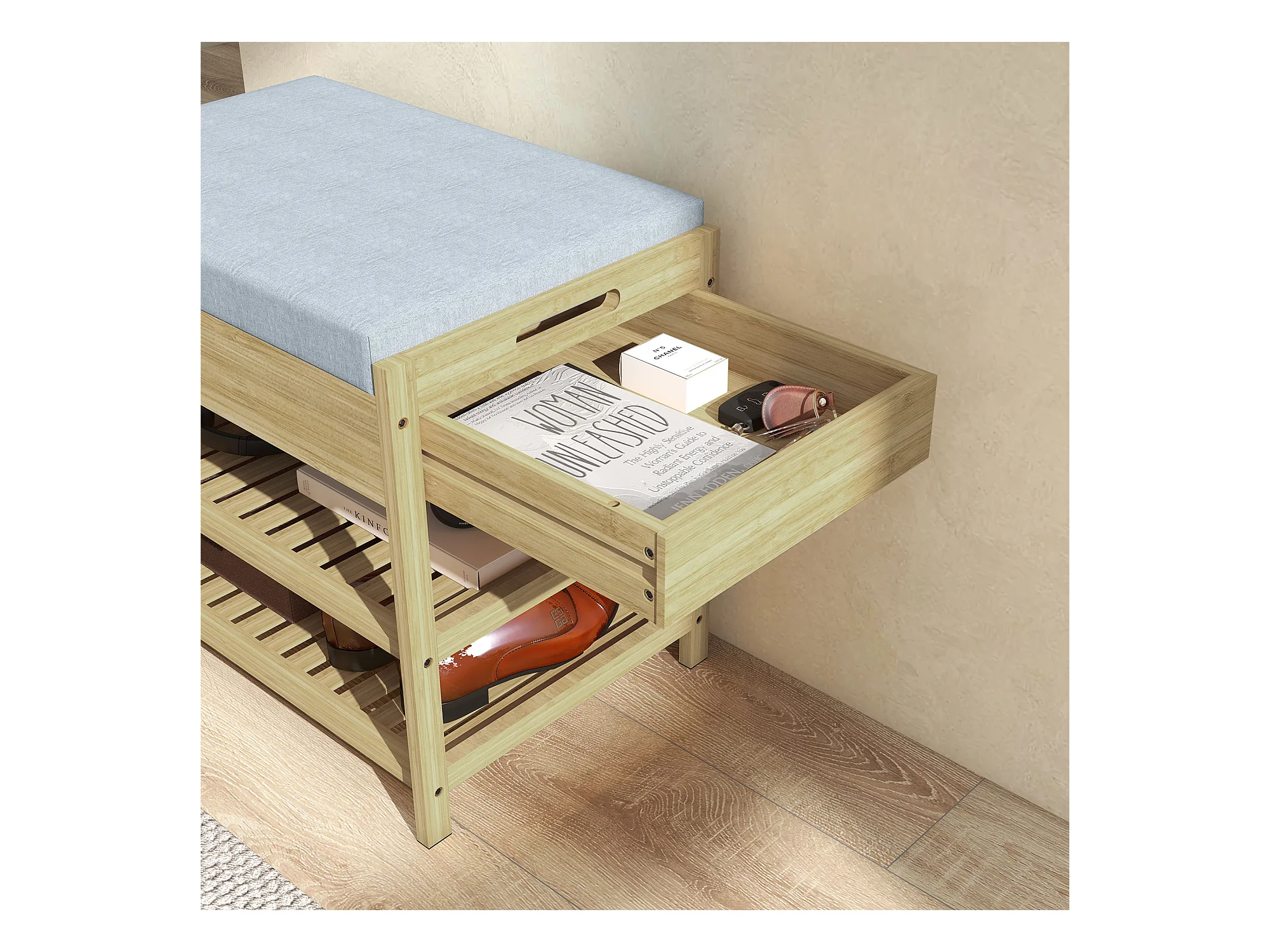 Banc de Rangement à Chaussure avec coussin rembourré 2 compartiments 1 porte et 2 tiroirs, FSR148-N