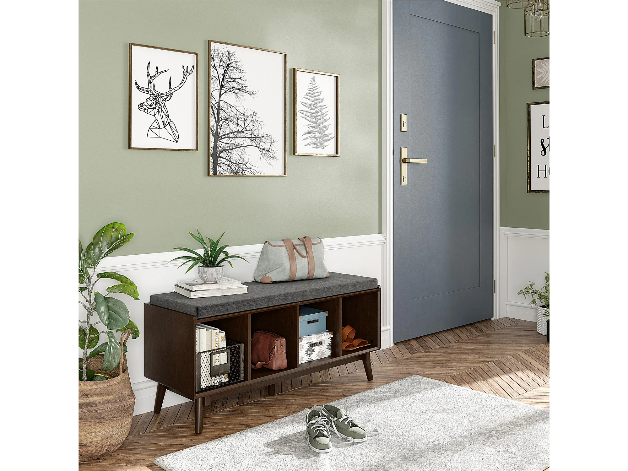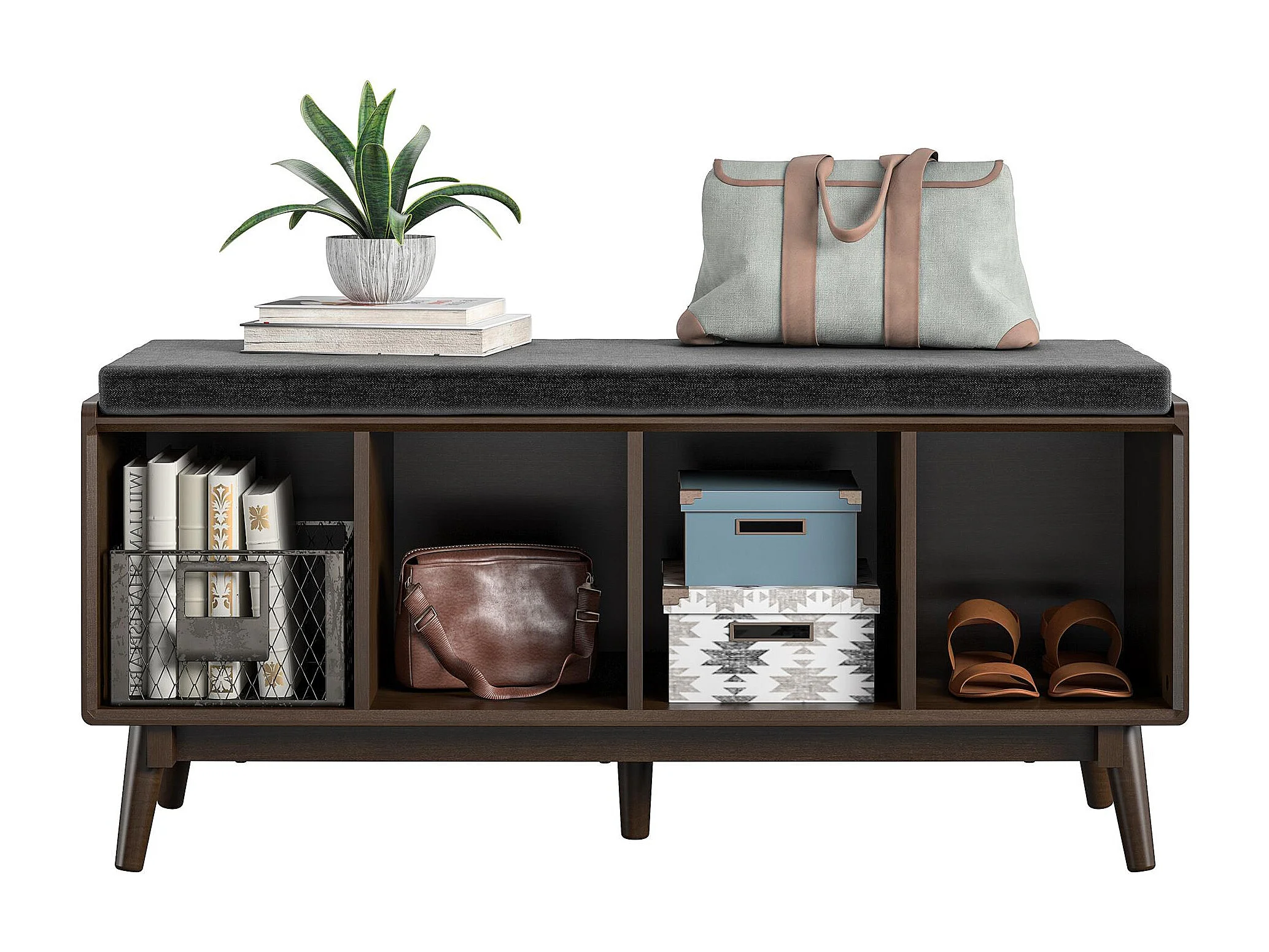 Brittany | Banc avec 4 compartiments en MDF marron