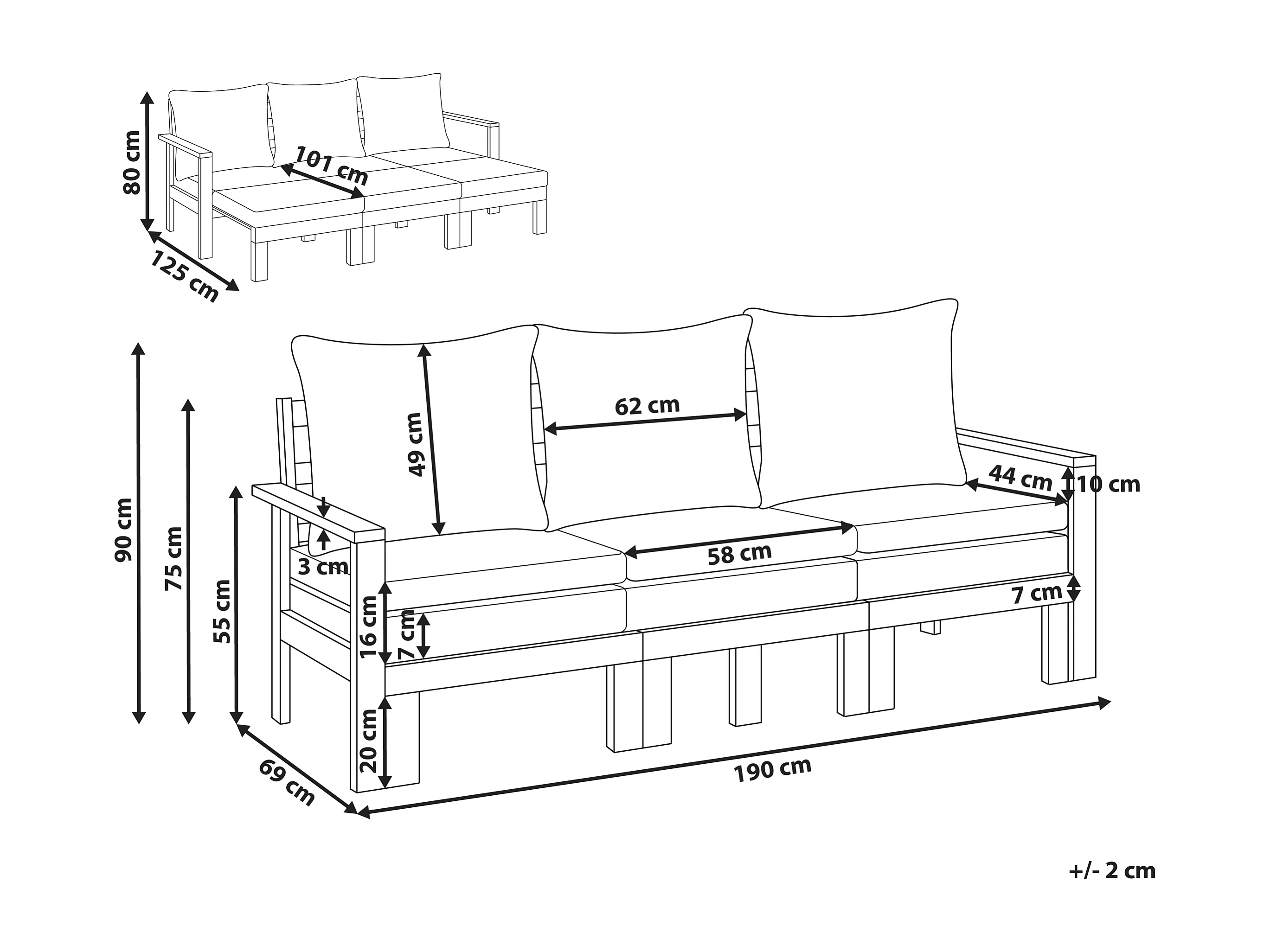 Banc avec coussin d'assise ISOLELLO 190 cm Réglable Acacia Marron