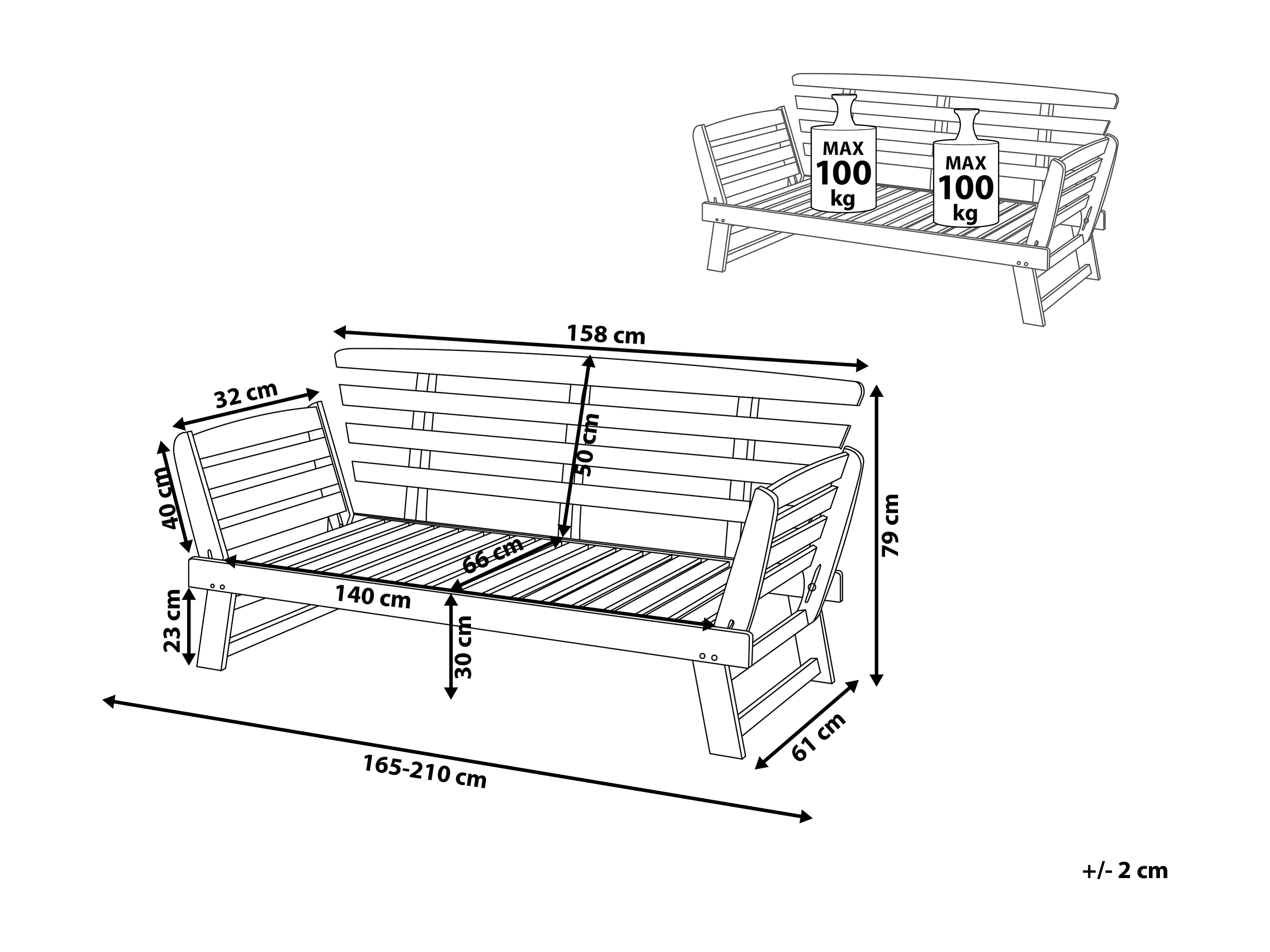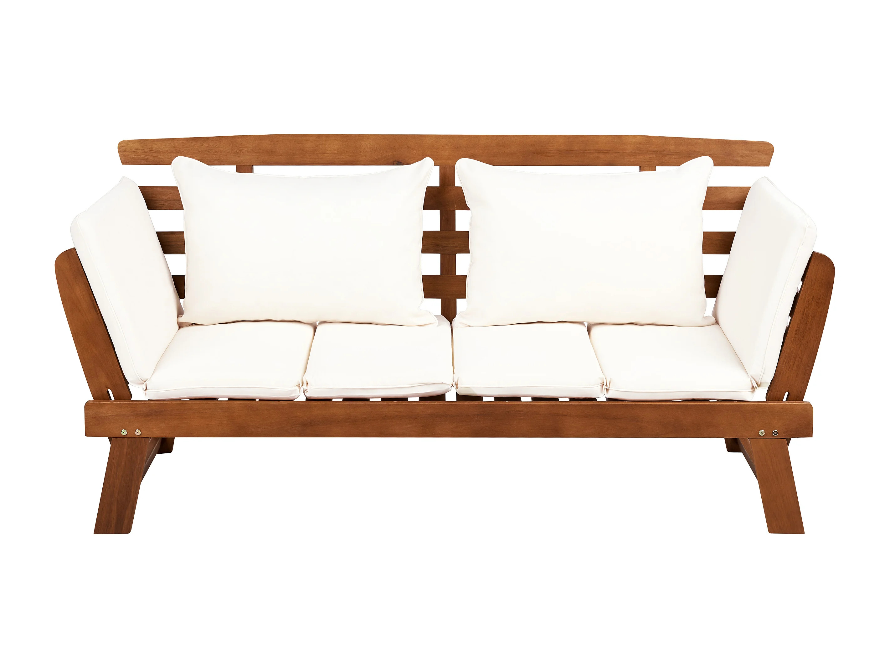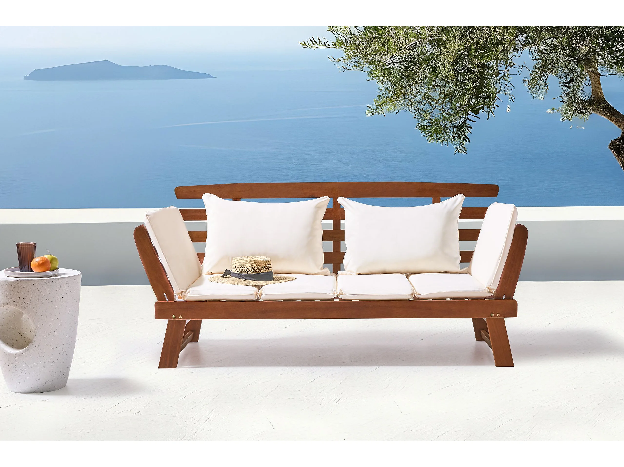 Banc avec coussin d'assise PORTICI 210 cm Bois d'eucalyptus Marron foncé/blanc