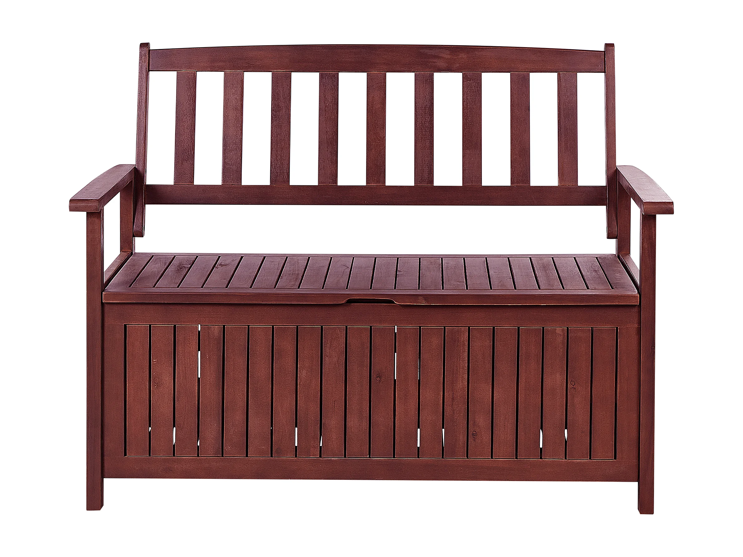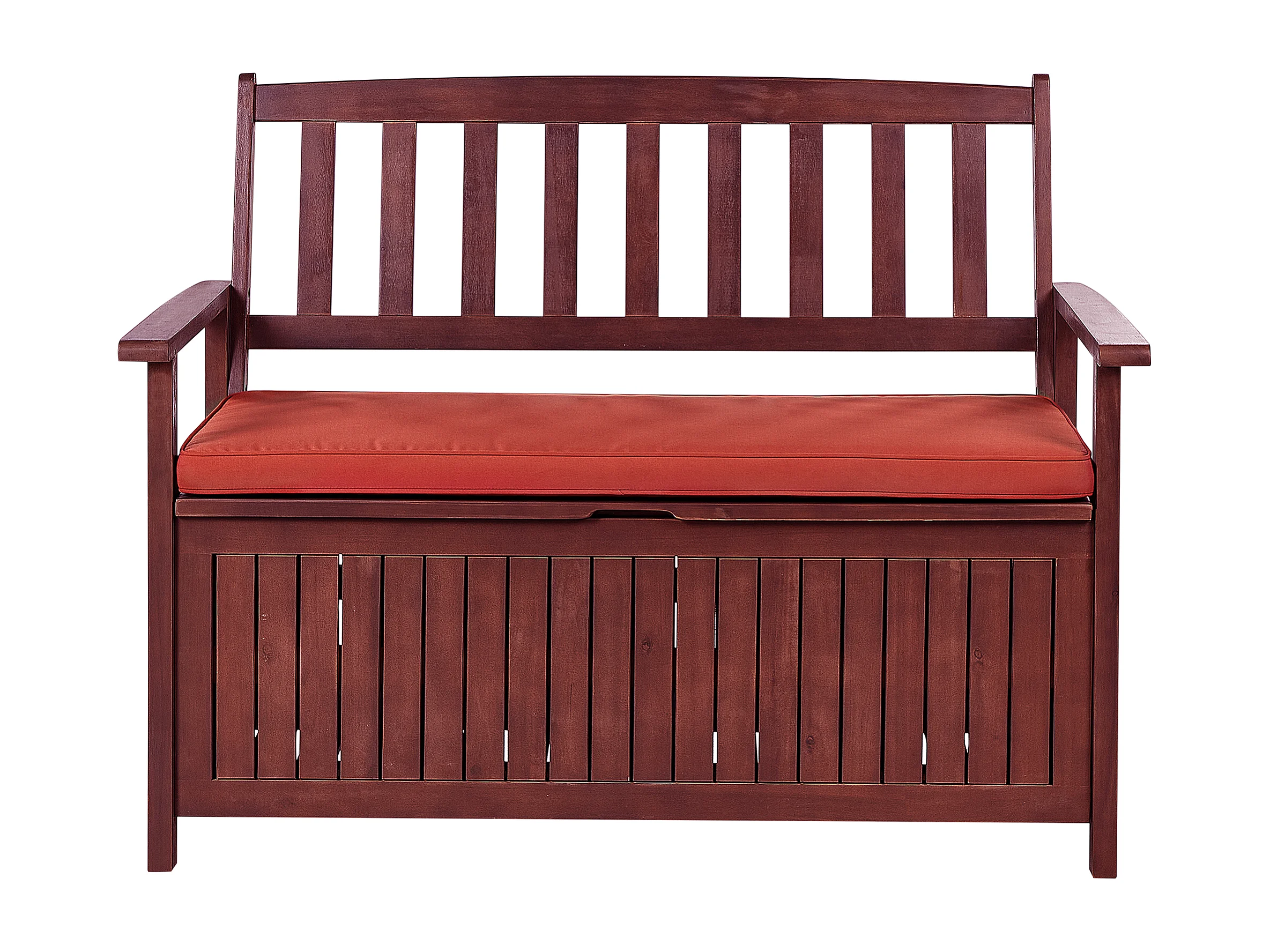 Banc avec coussin d\'assise SOVANA 120 cm avec rangement Acacia Rouge