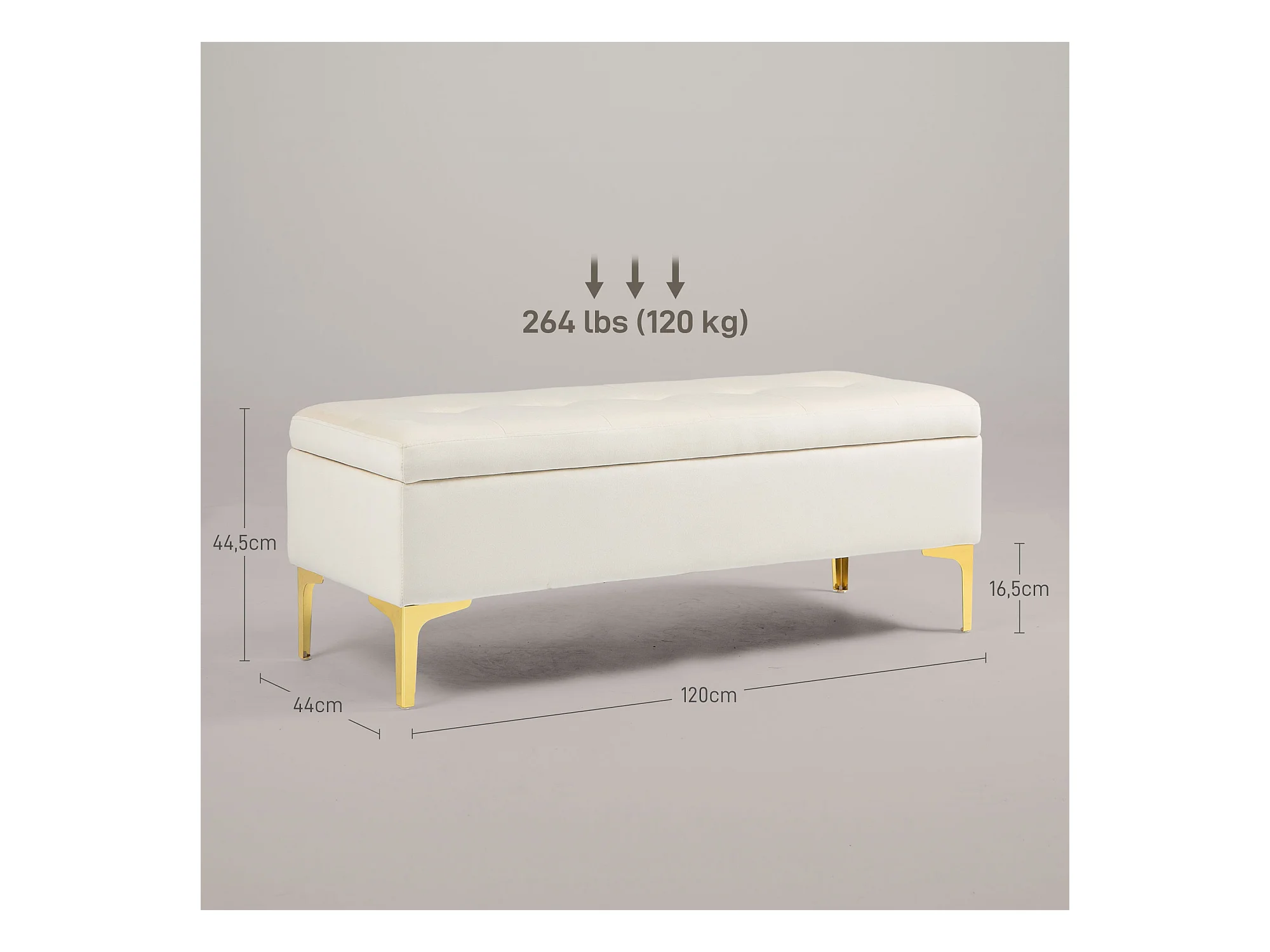 Banc avec rangement,banc rembourré,aspect velours,pieds en métal,banc de lit,120x44x44,5cm