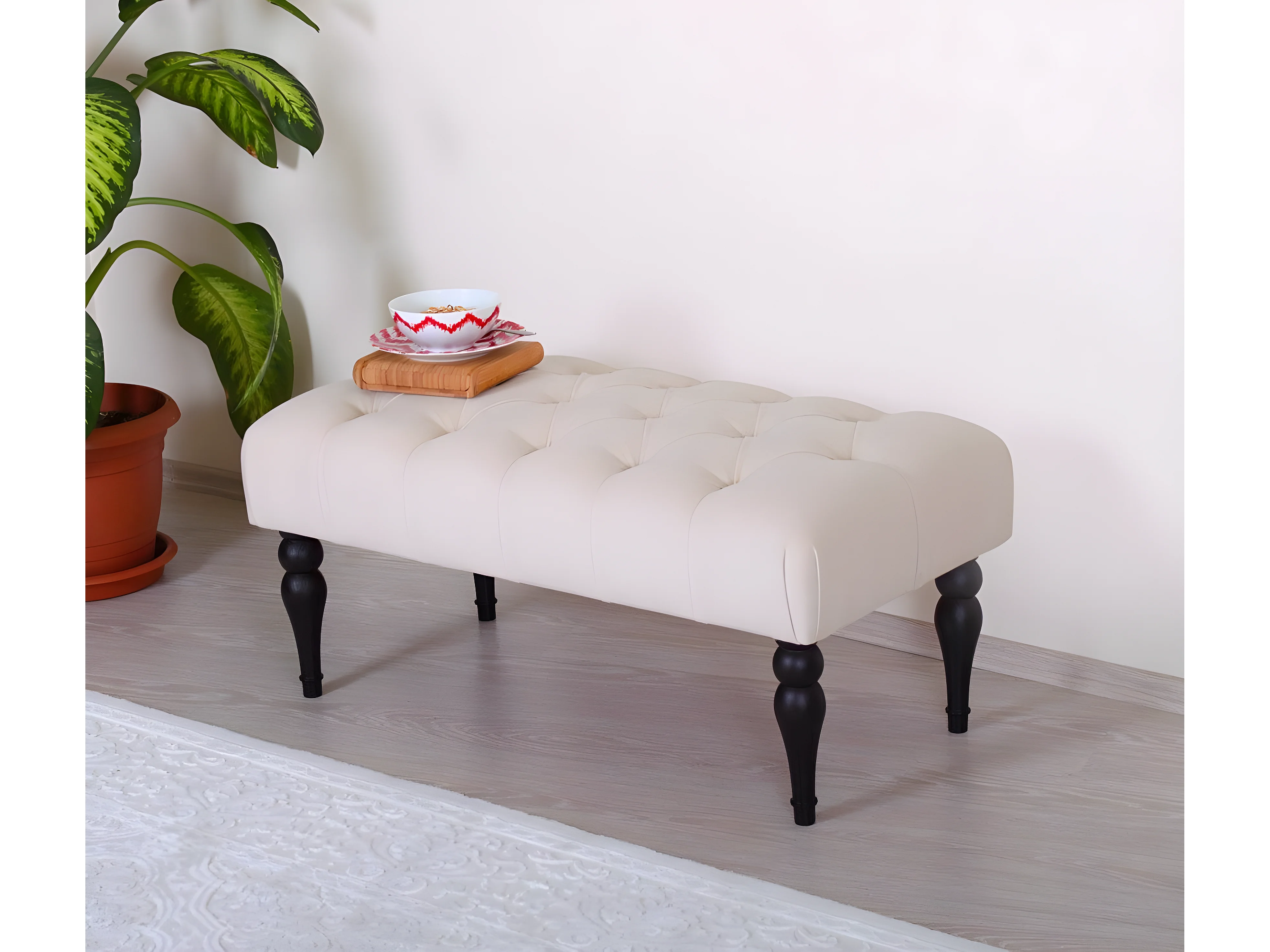 Banc chesterfield Dugon L92cm Bois Noir et Velours Blanc crème