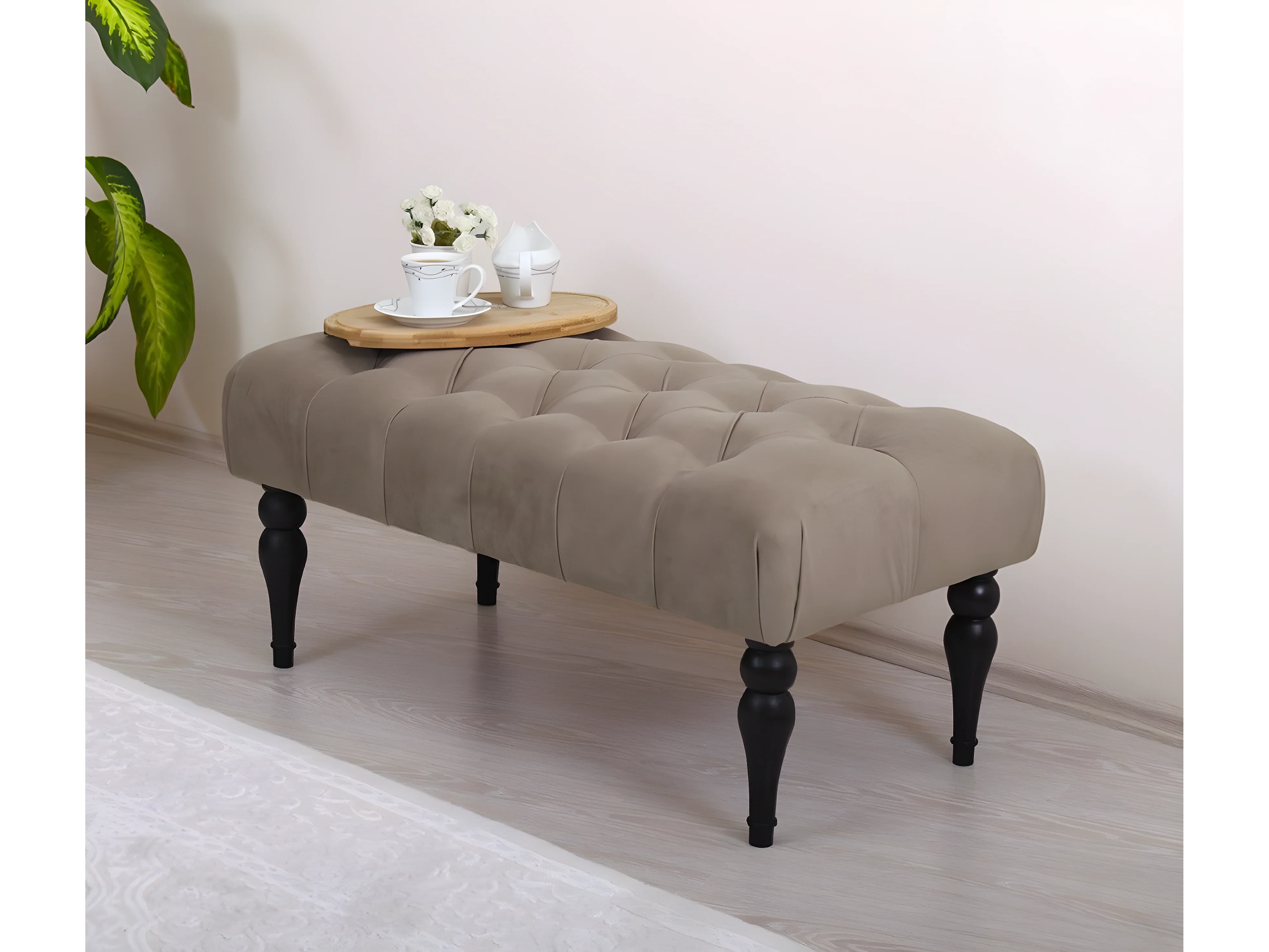 Banc chesterfield Dugon L92cm Bois Noir et Velours Marron
