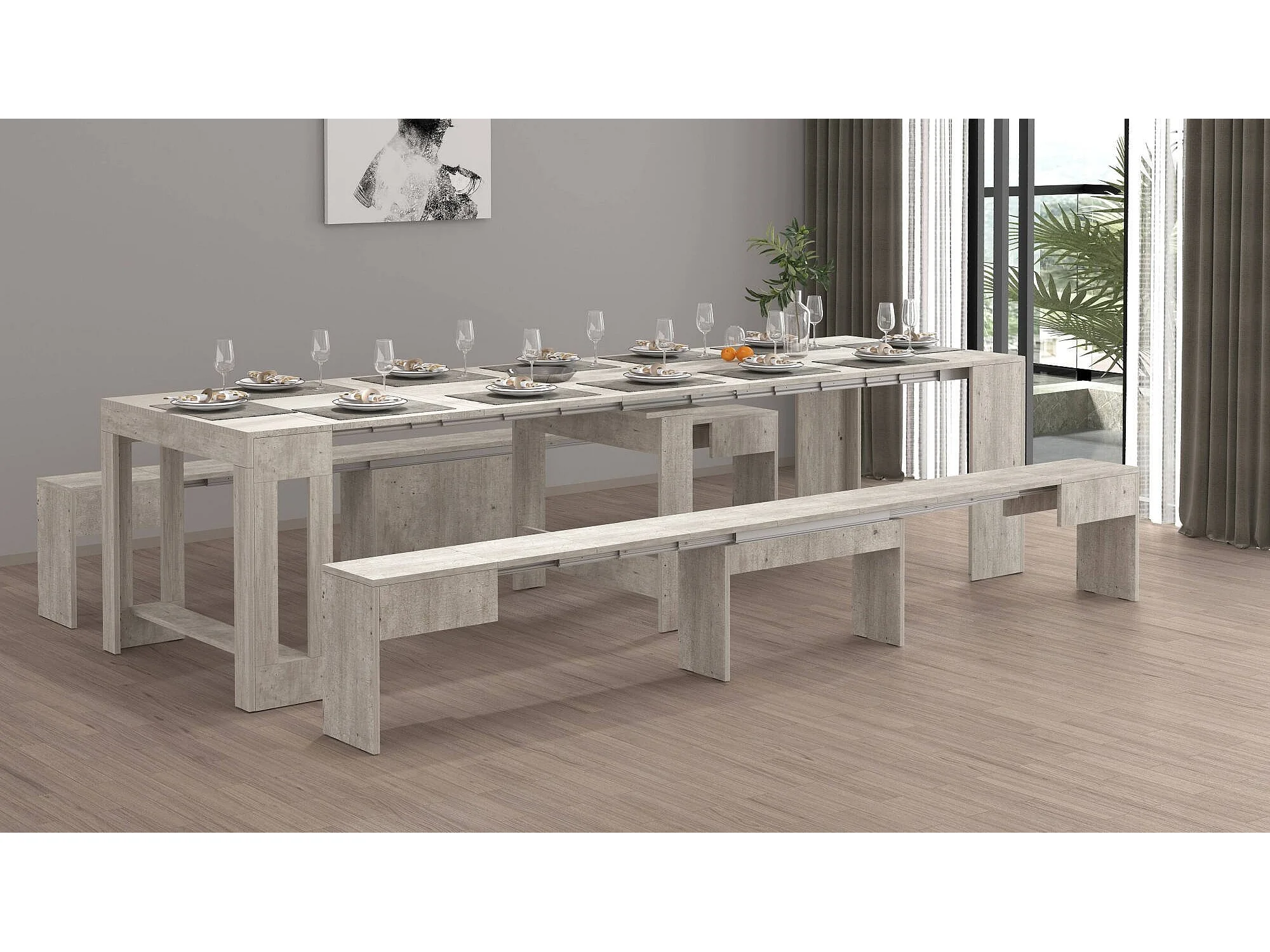 Banc Dcolasuon, Lot de 2 Sièges pour table à manger, Bancs extensibles, 290x25h45 cm, Ciment
