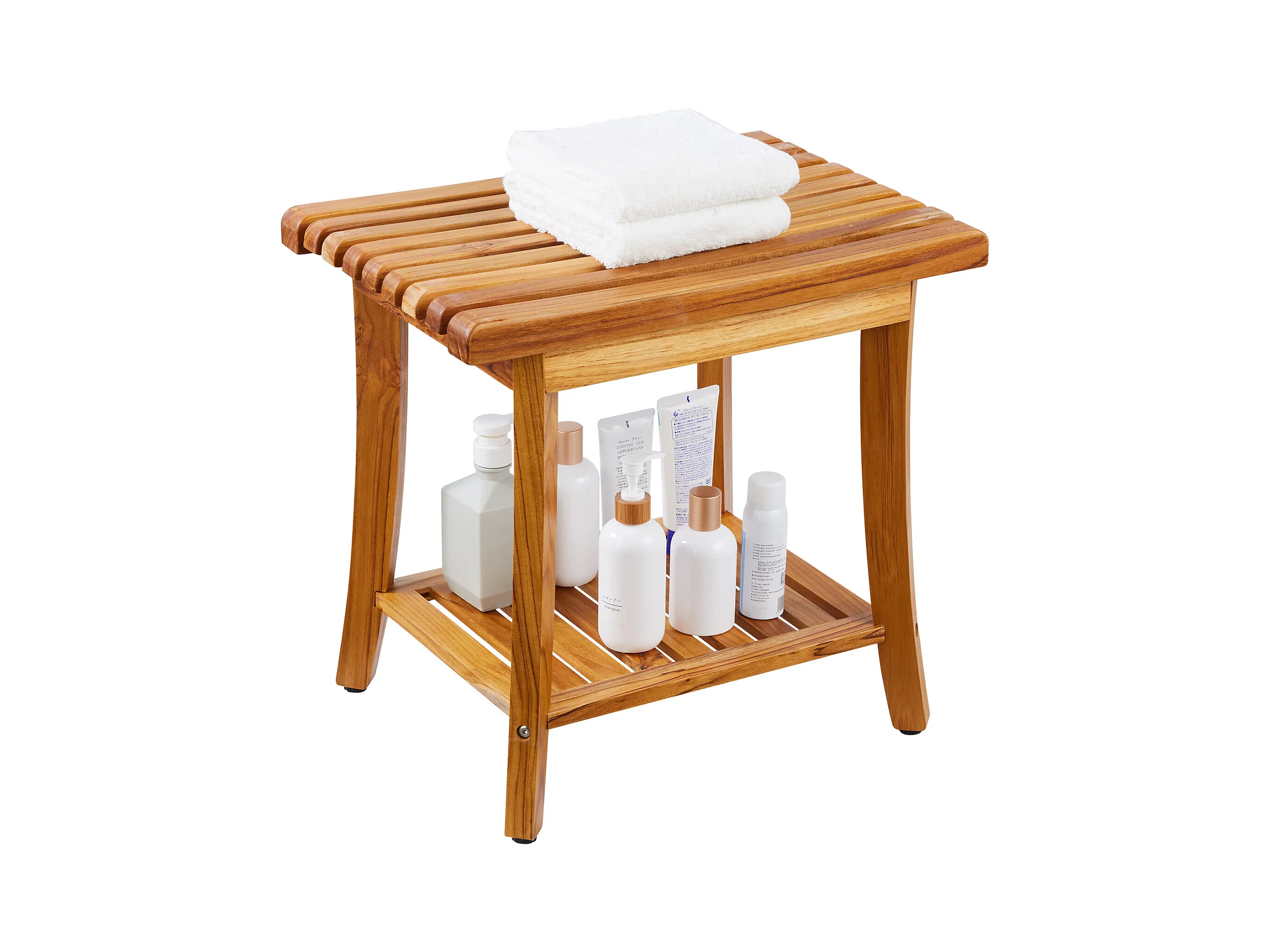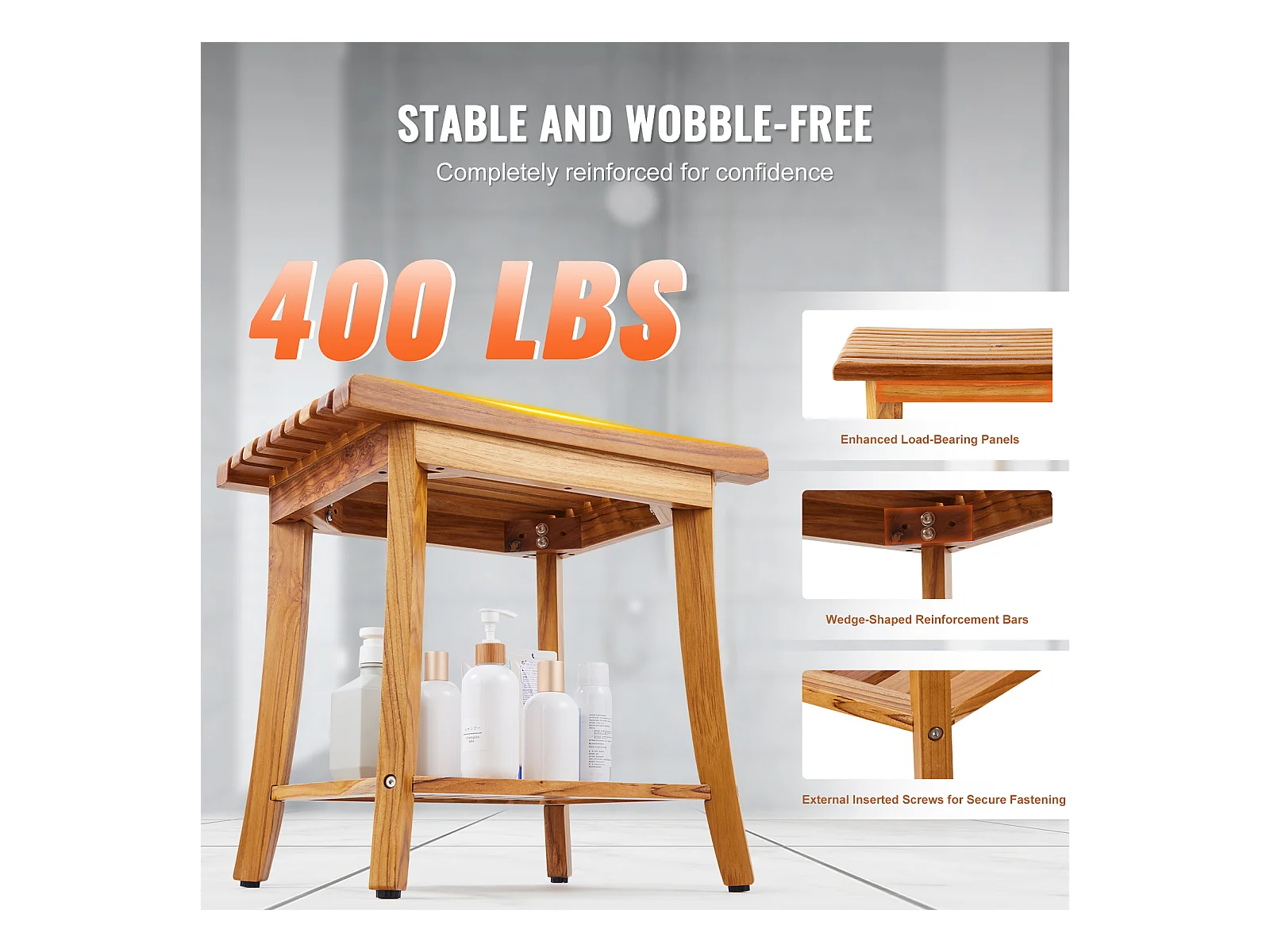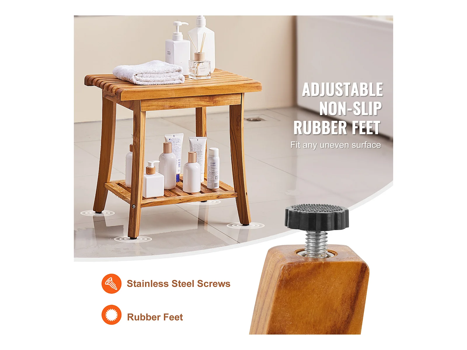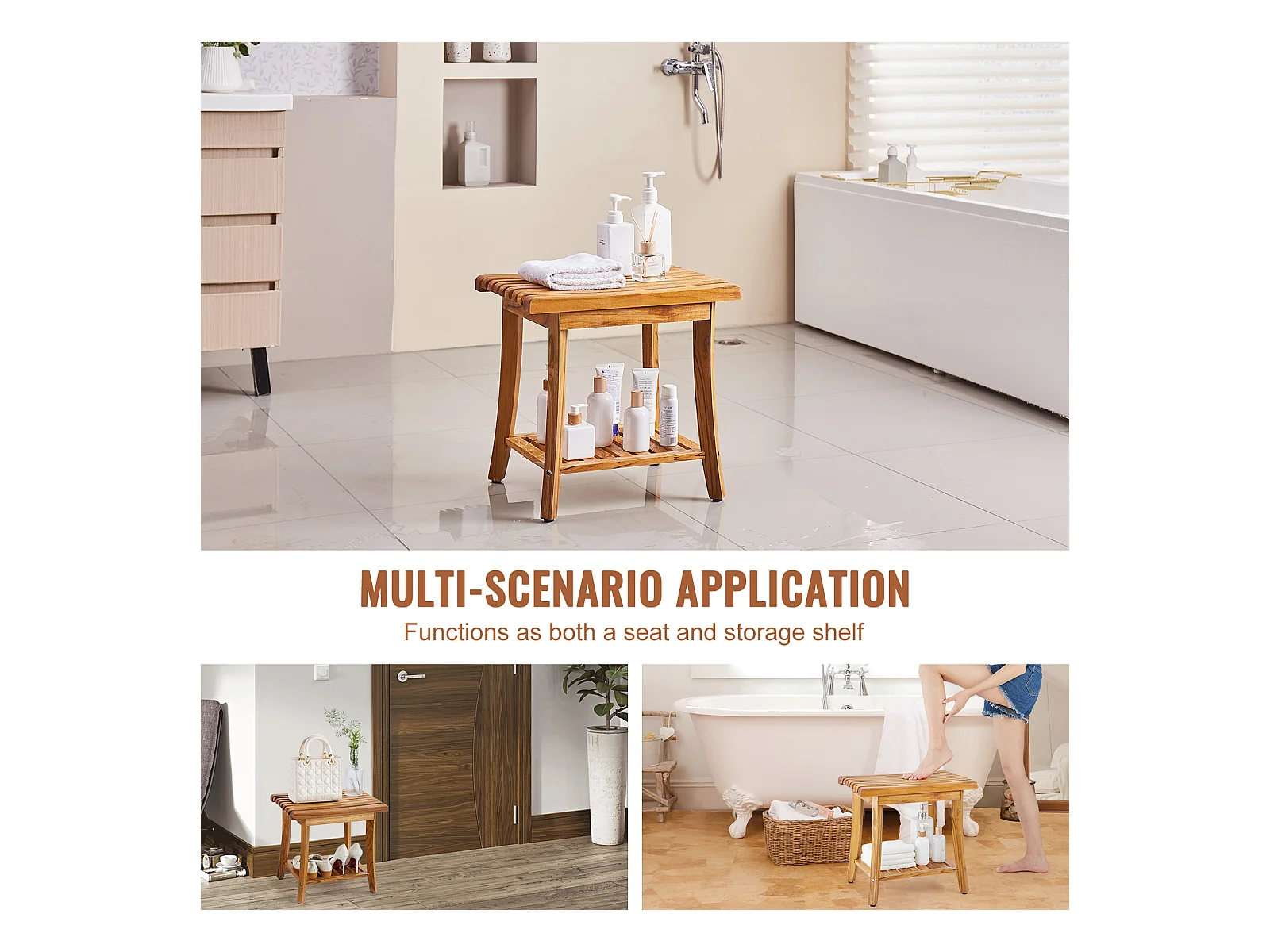 Banc de Douche en Teck SucceBuy, 51 x 36 x 45 cm, Chaise pour Salle de Bain