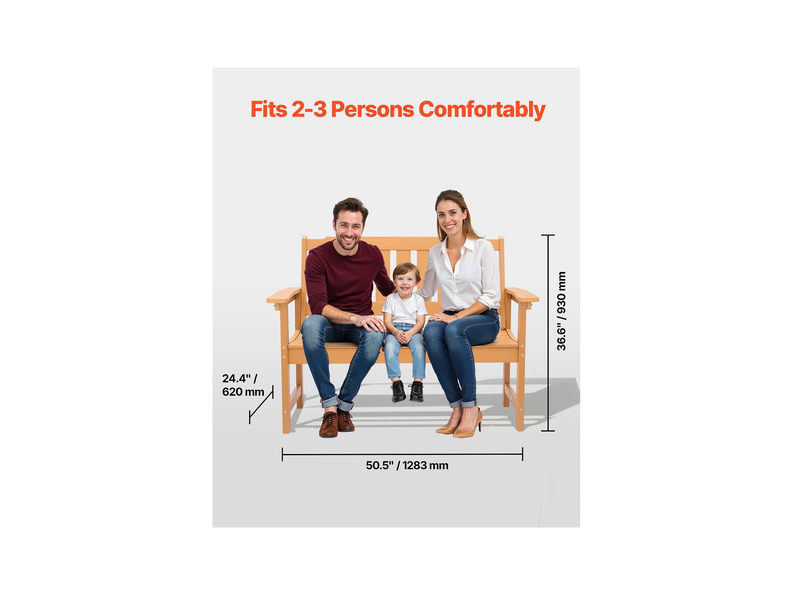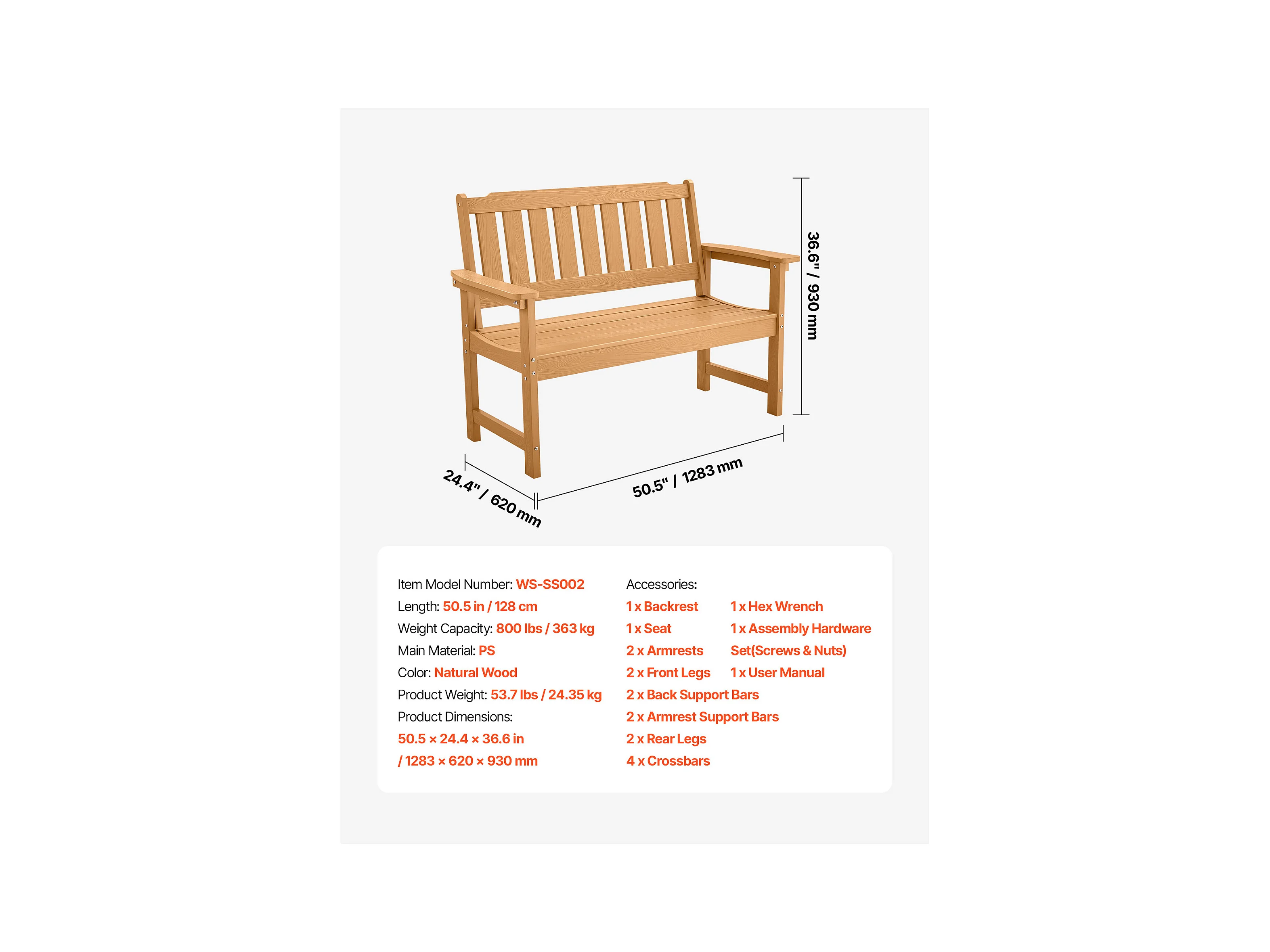 Banc de Jardin SucceBuy 128 cm, Banquette d'Extérieur en Plastique, Capacité de Charge 363 kg, Résistant aux Intempéries avec Dossier et Accoudoirs Larges