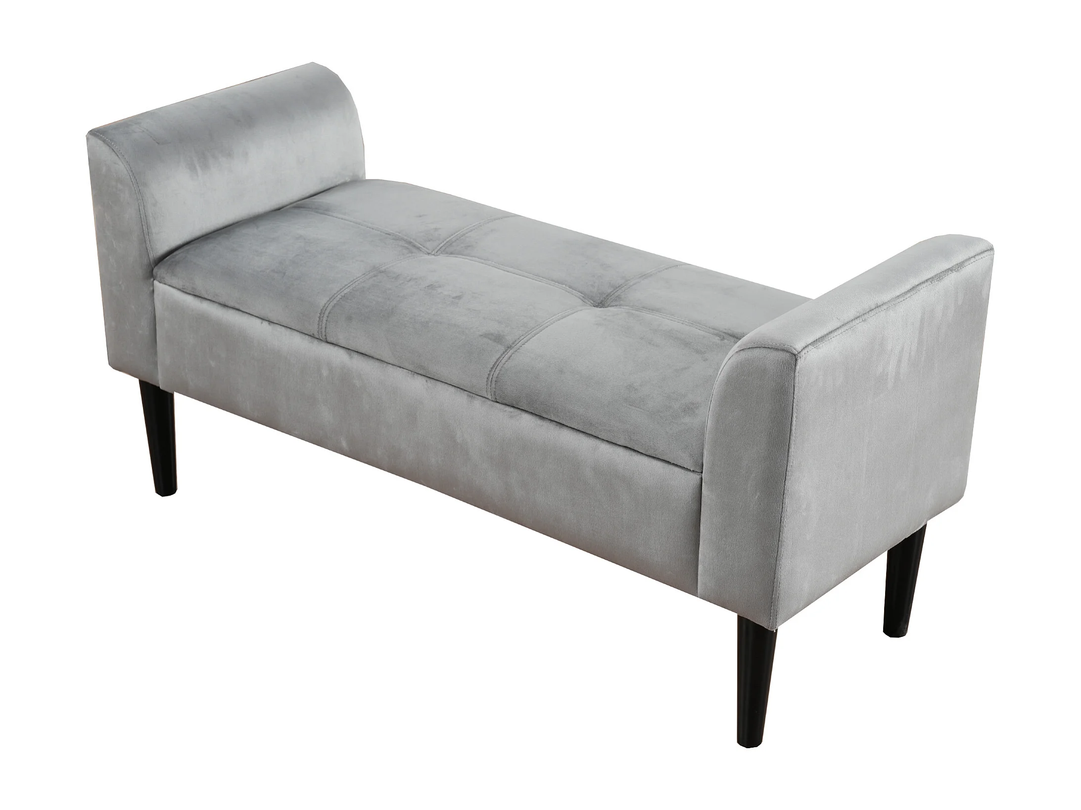 Banc de lit 116x44x56 cm avec accoudoirs latéraux Revêtement en velours en gris pour Chambre et salon