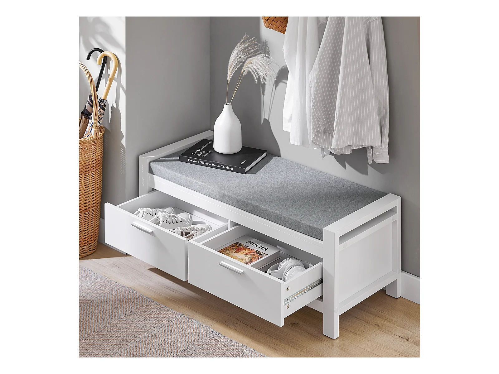 Banc de Rangement avec Coussin Rembourré Meuble Bas Entrée Commode à Chaussure Banquette, FSR84-W