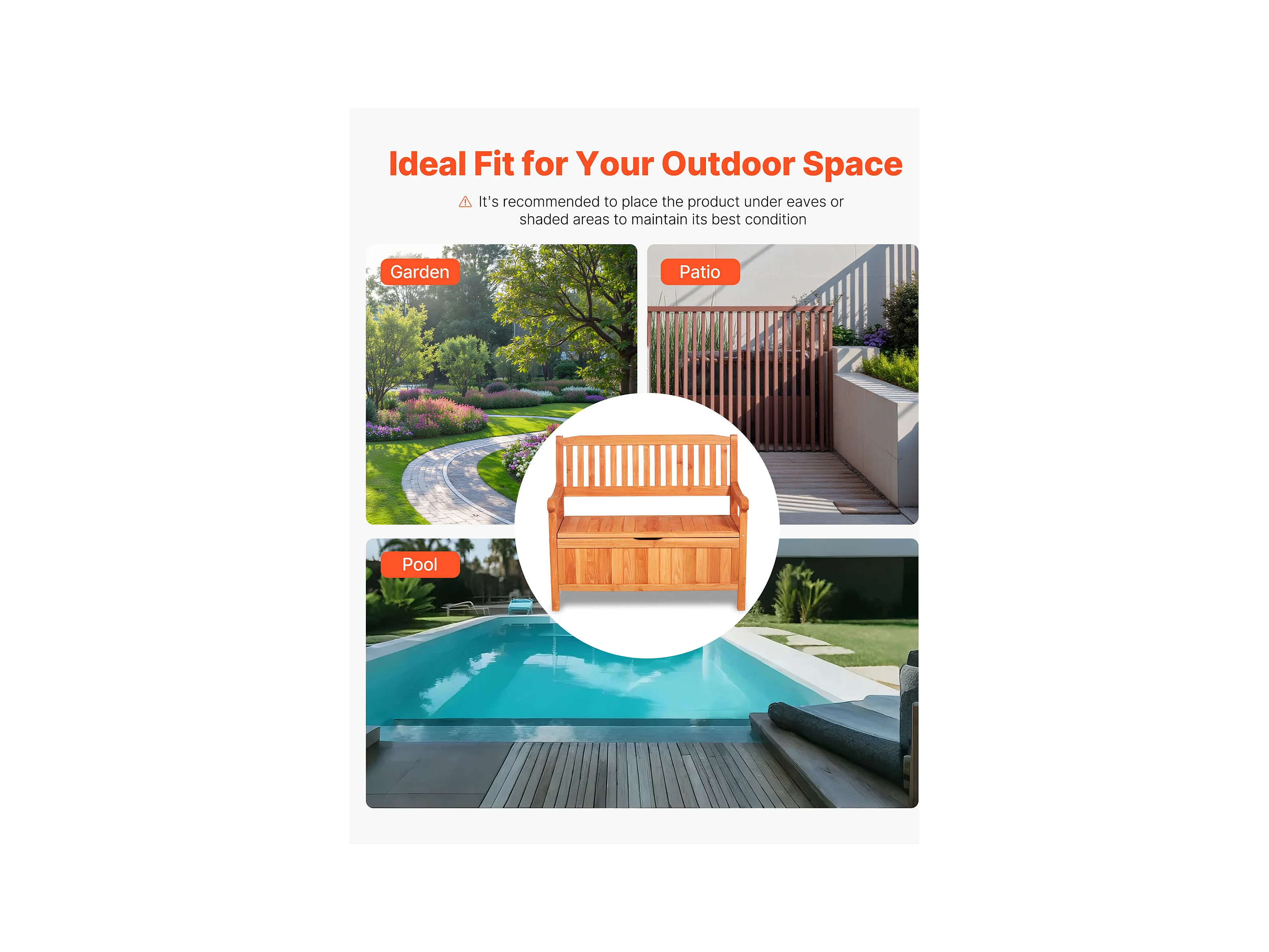 Banc de Rangement SucceBuy Extérieur en Bois Coffre de Jardin 125 L Banc de Terrasse 2 en 1 avec Poignée Latérale, Capacité de Charge 319,8 kg