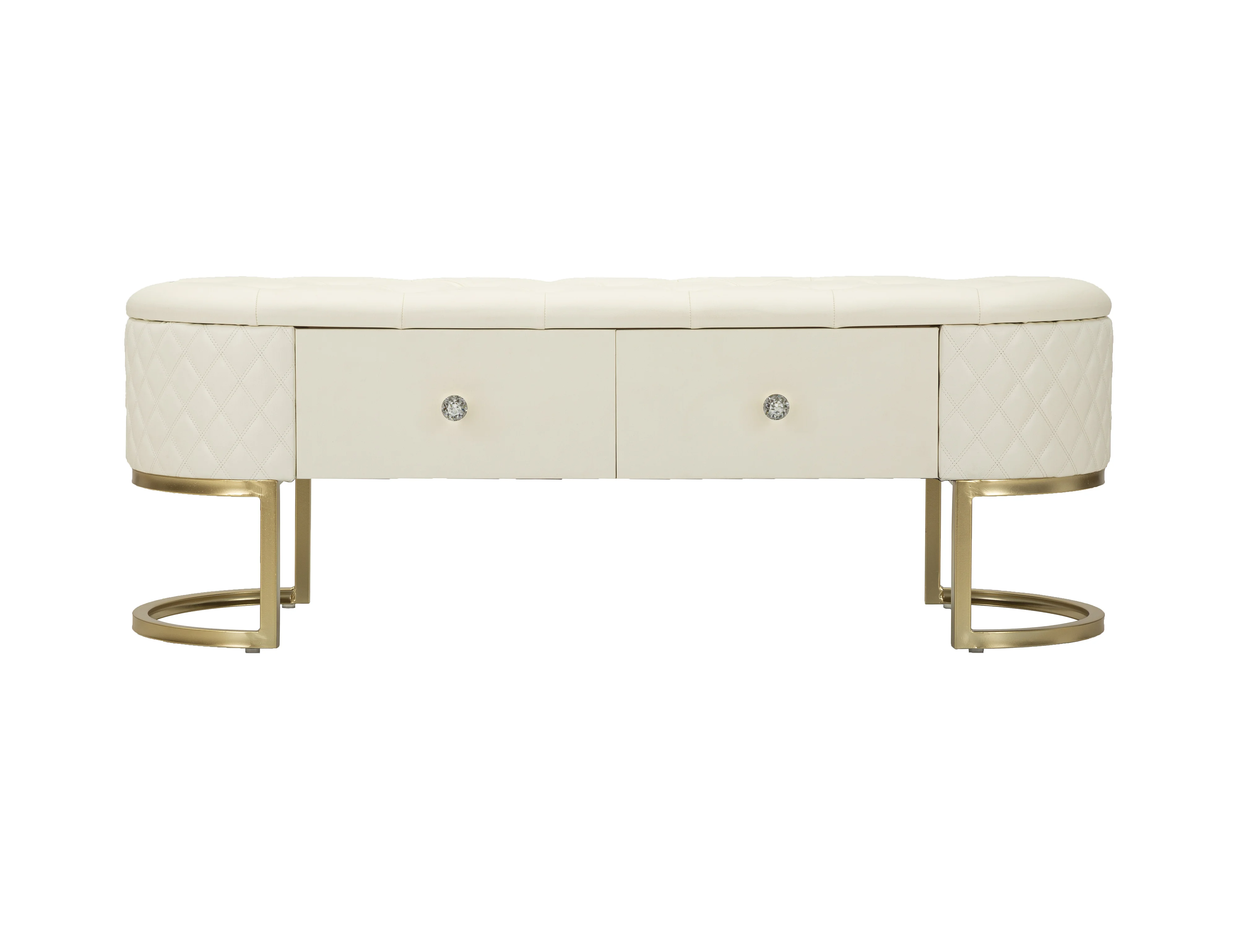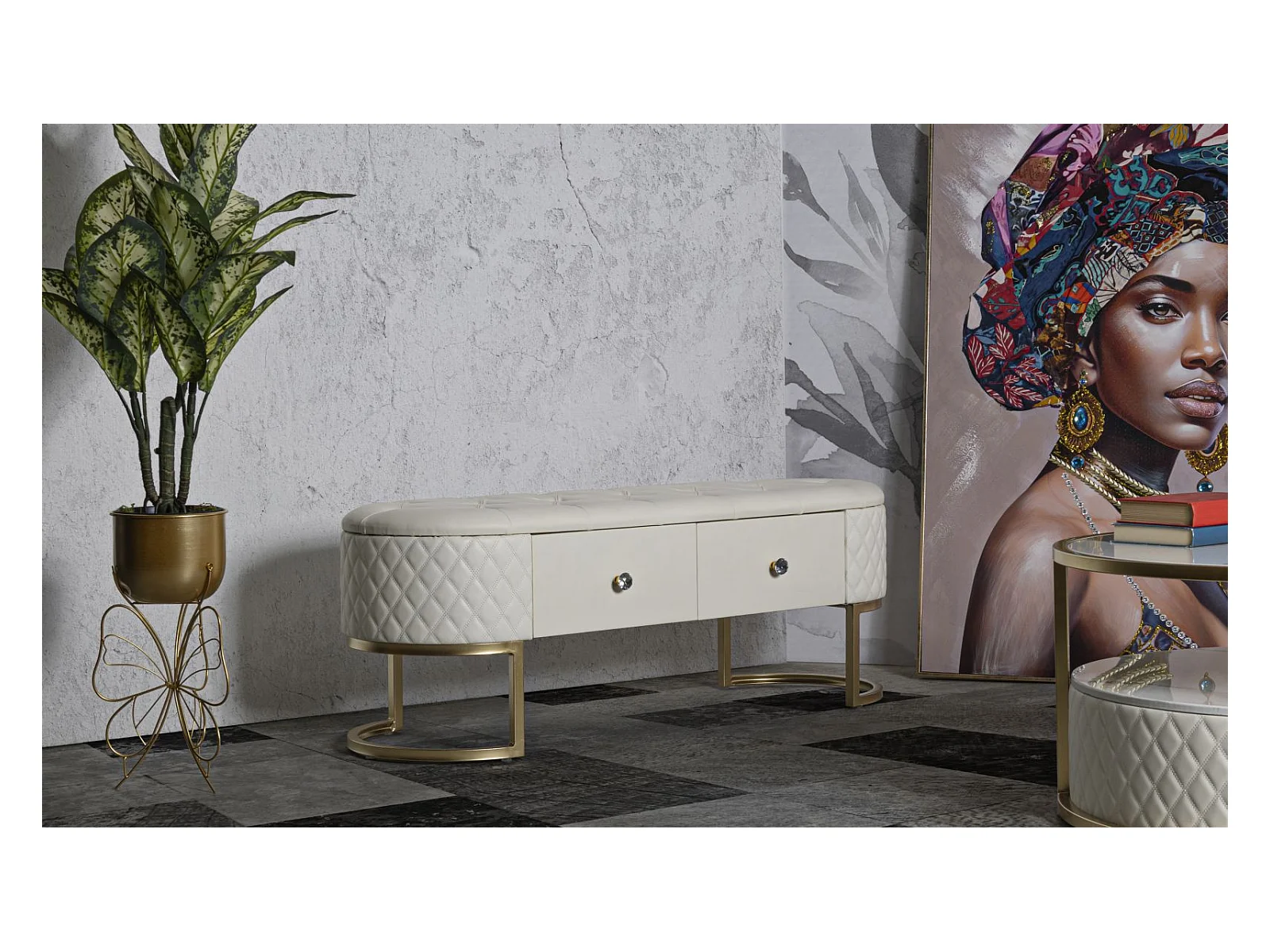 Banc Avec 2 Tiroirs "Sharon" 120cm Blanc & Or