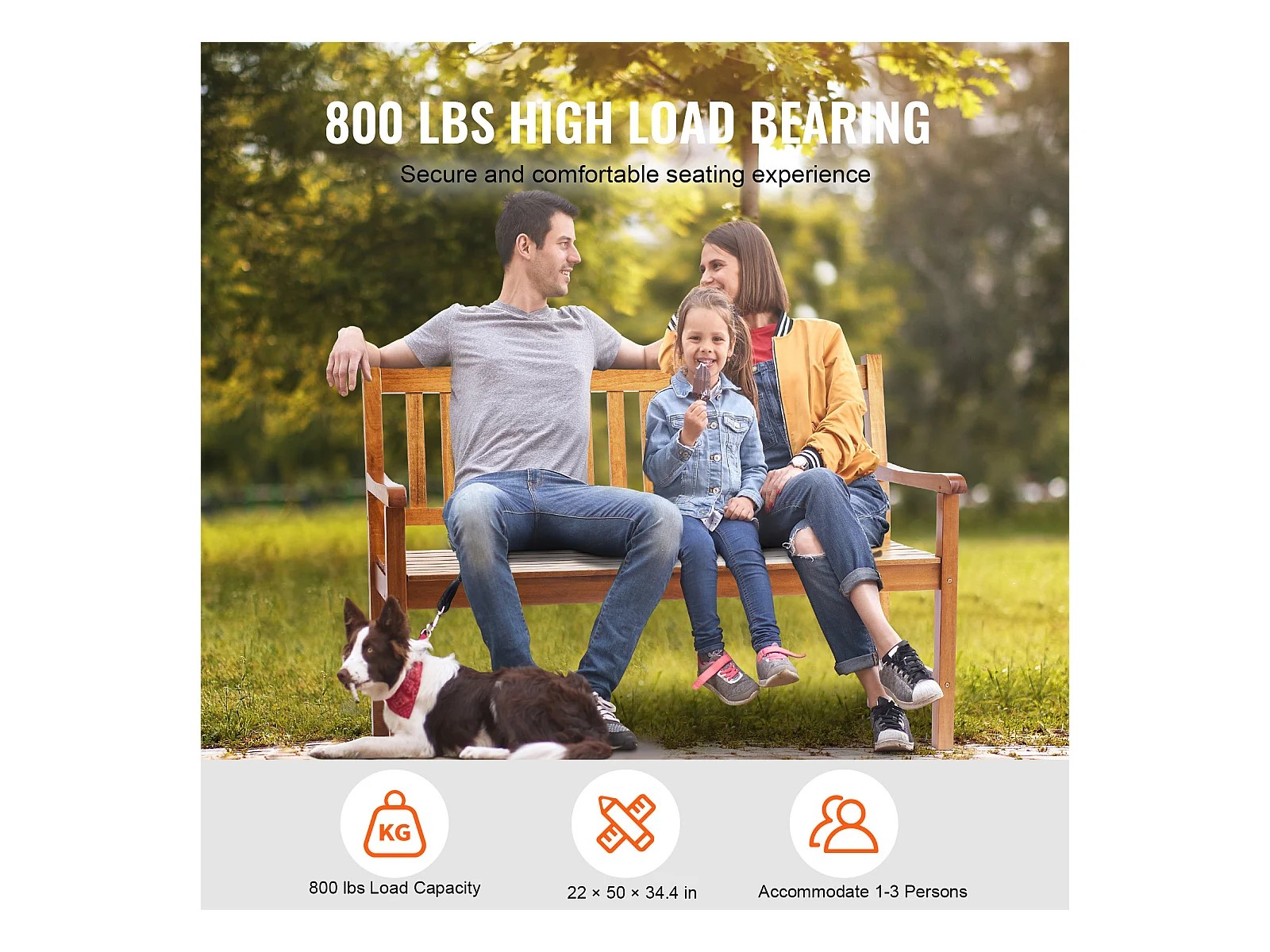 Banc Exterieur Jardin en Bois SucceBuy de 127cm, Capacité de Charge de 363 kg, Sièges d'Extérieur pour la Cour et la Véranda