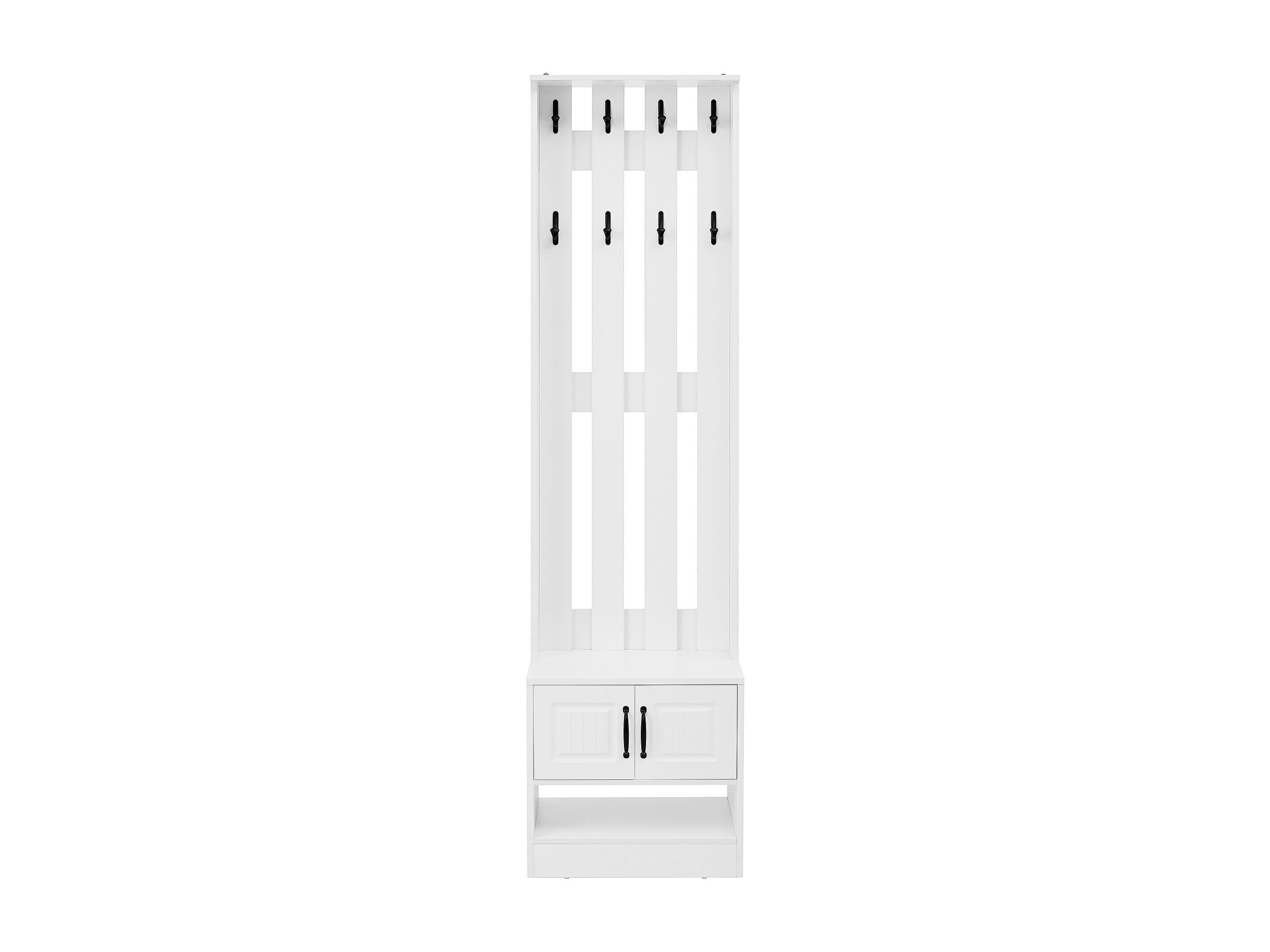 Banc/meuble à chaussu avec 2 portes + panneau arrière à 8 crochets - 50 x 36 x 190 cm - aggloméré - blanc
