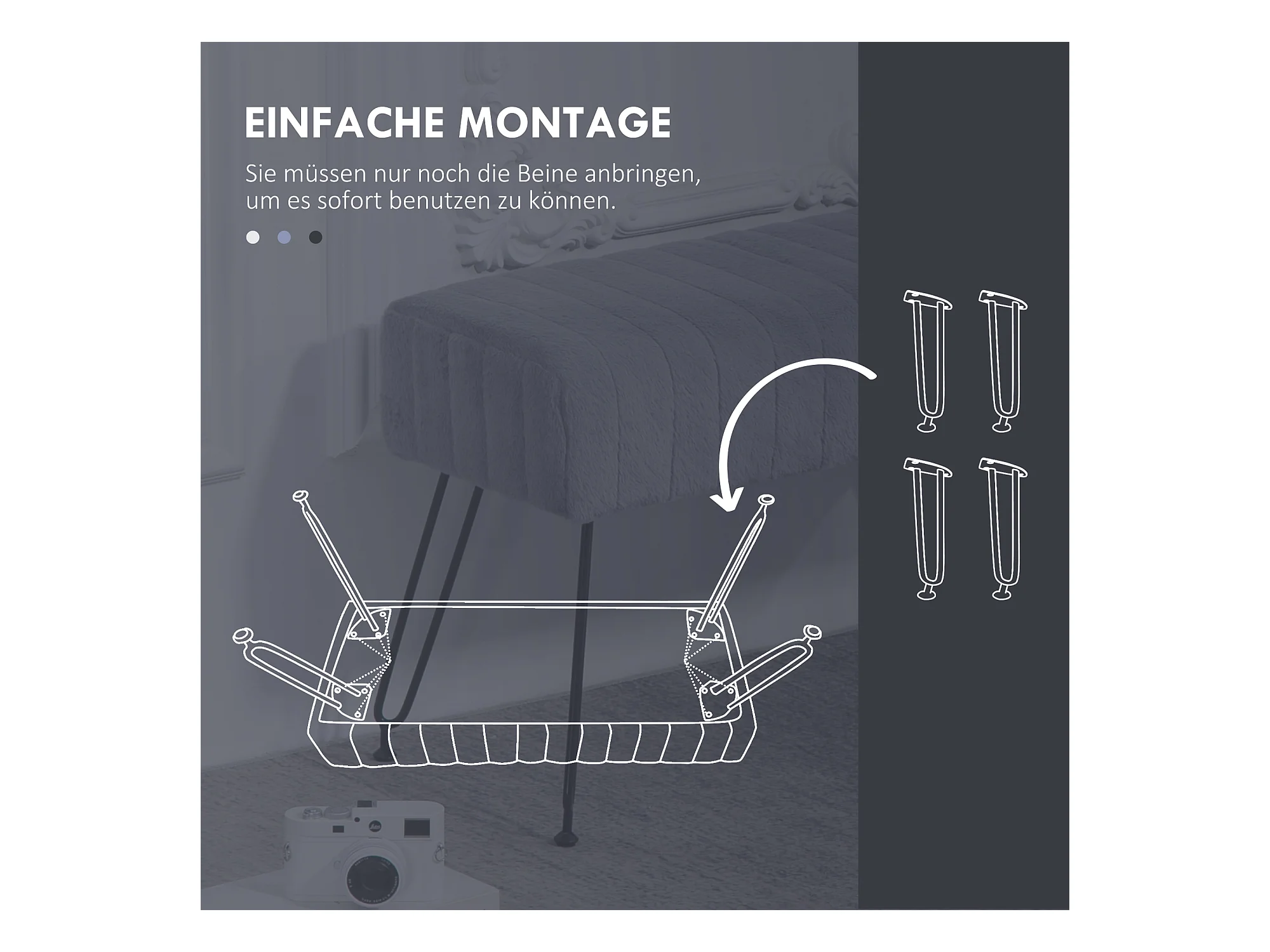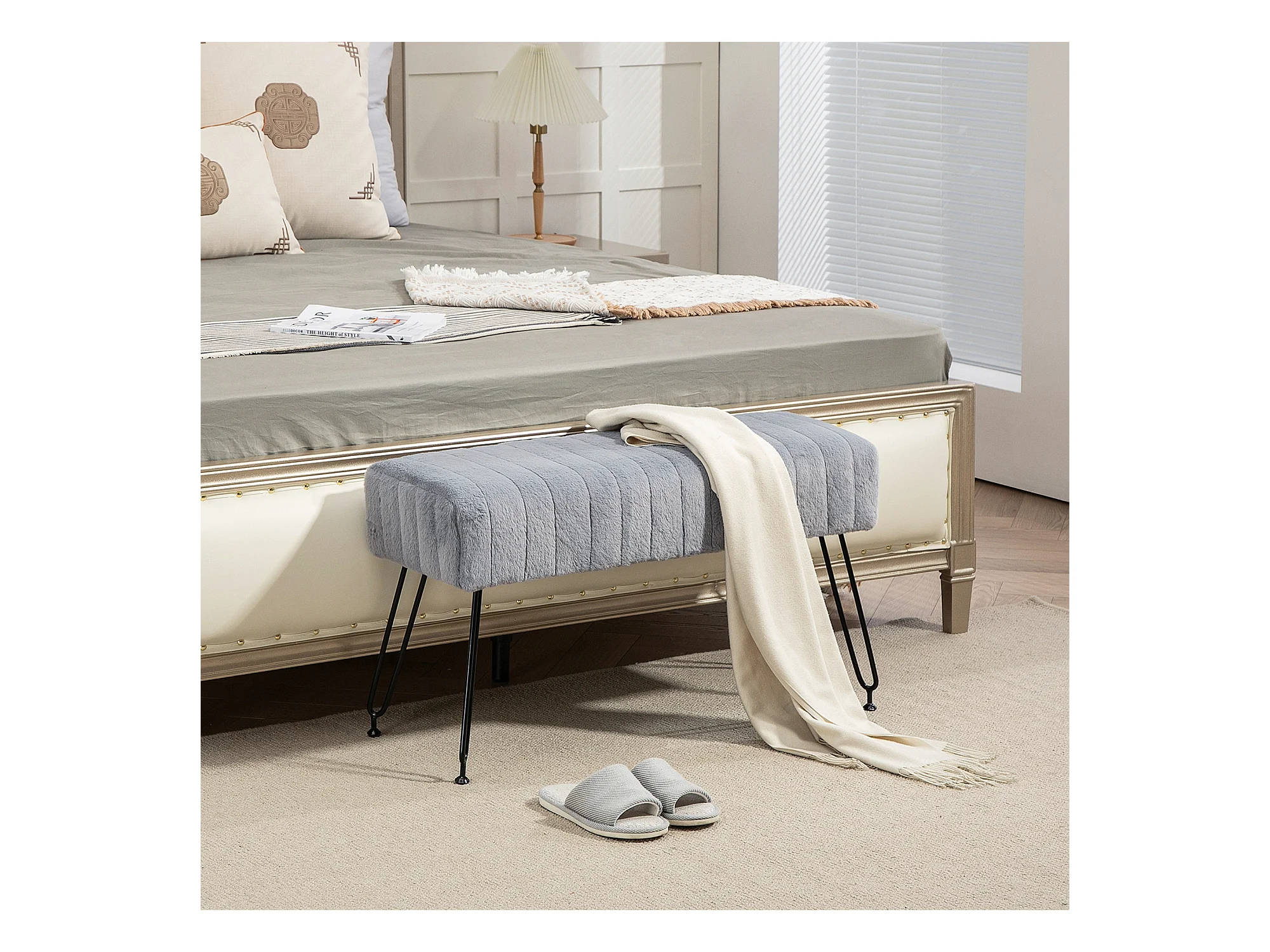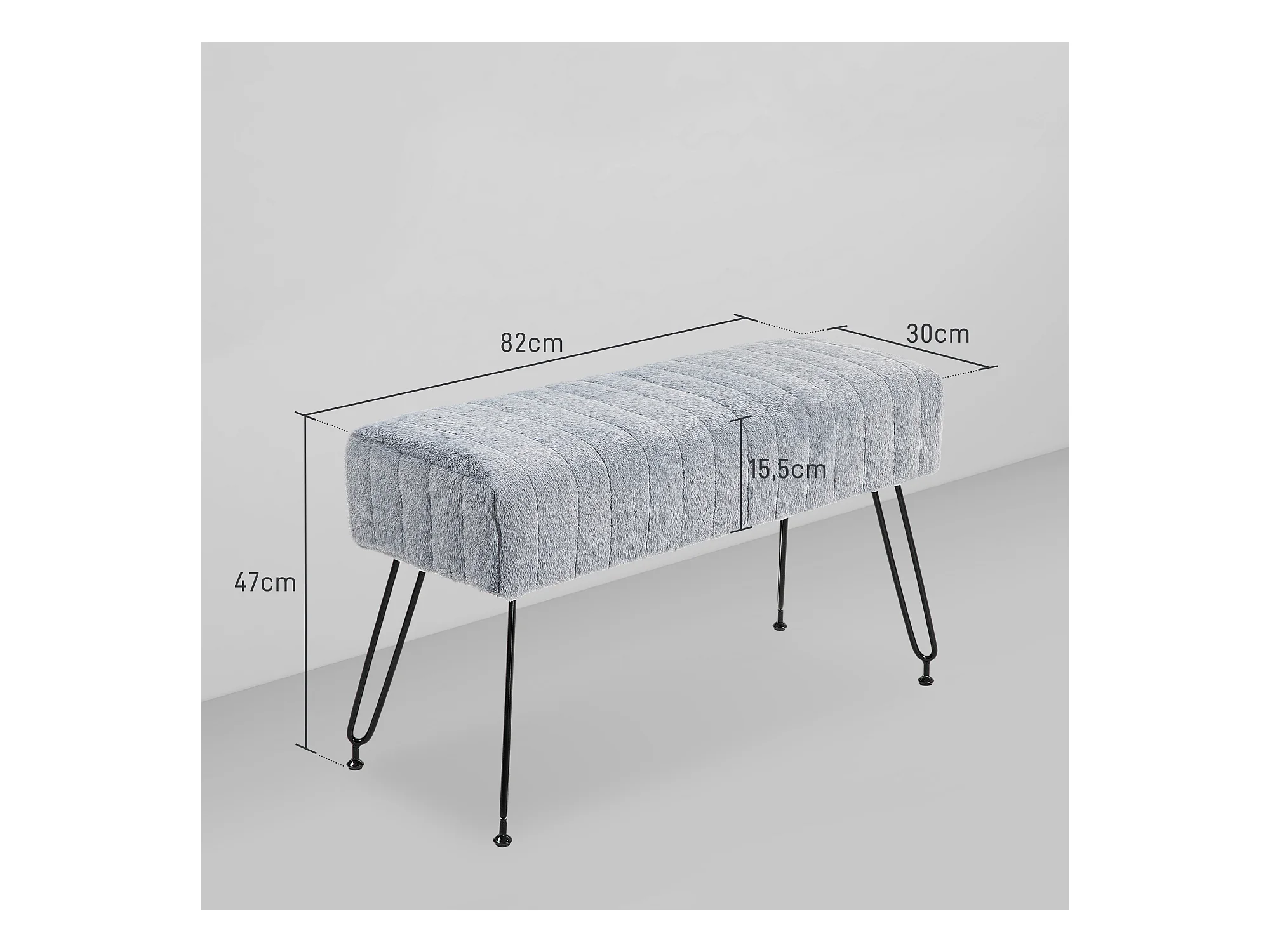 Banc rembourré aspect fausse fourrure 82 x 30 x 47 cm pieds métal gris banc à chaussures