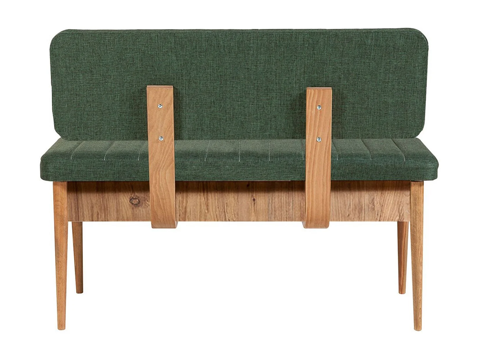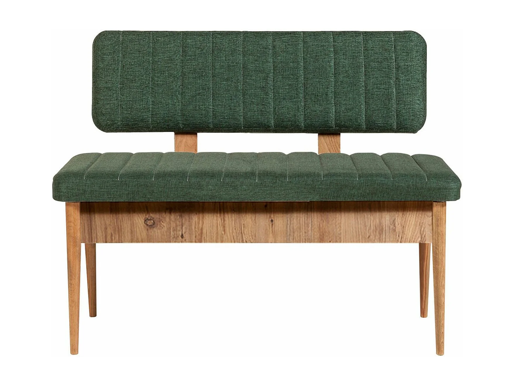 Banquette-coffre capitonnée avec dossier L110cm Scamnum Bois clair et Tissu Vert forêt