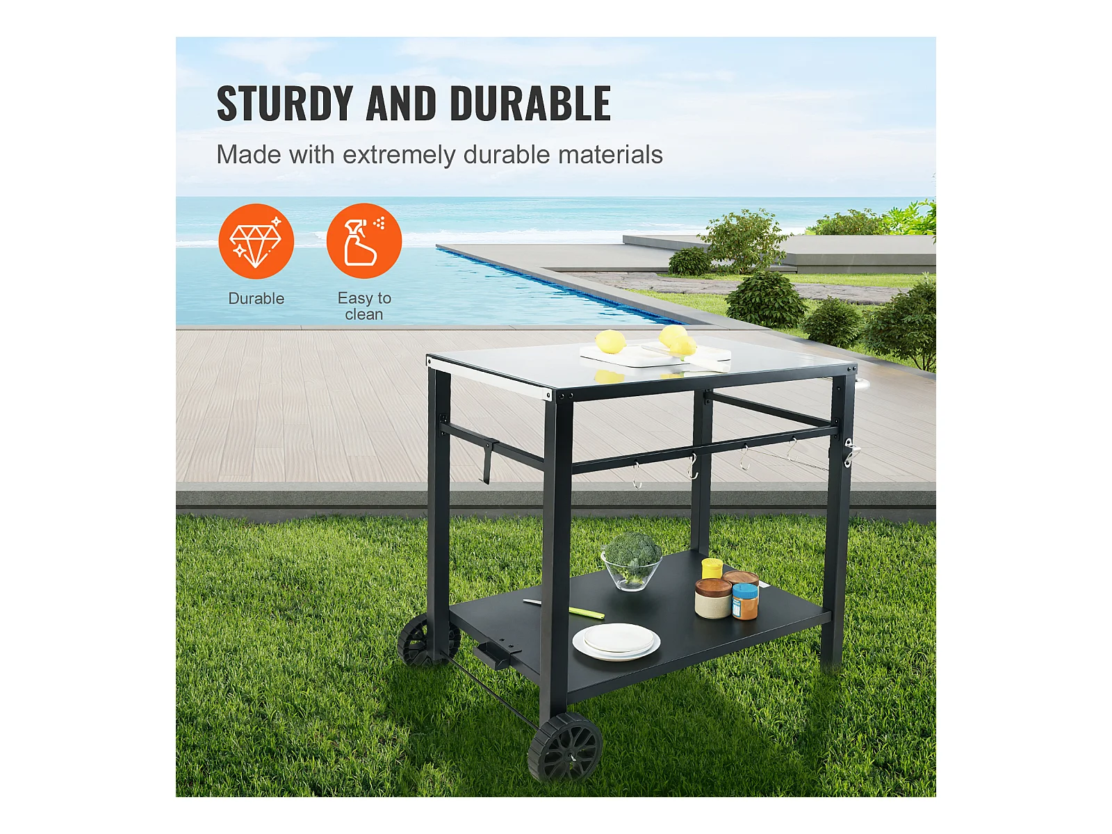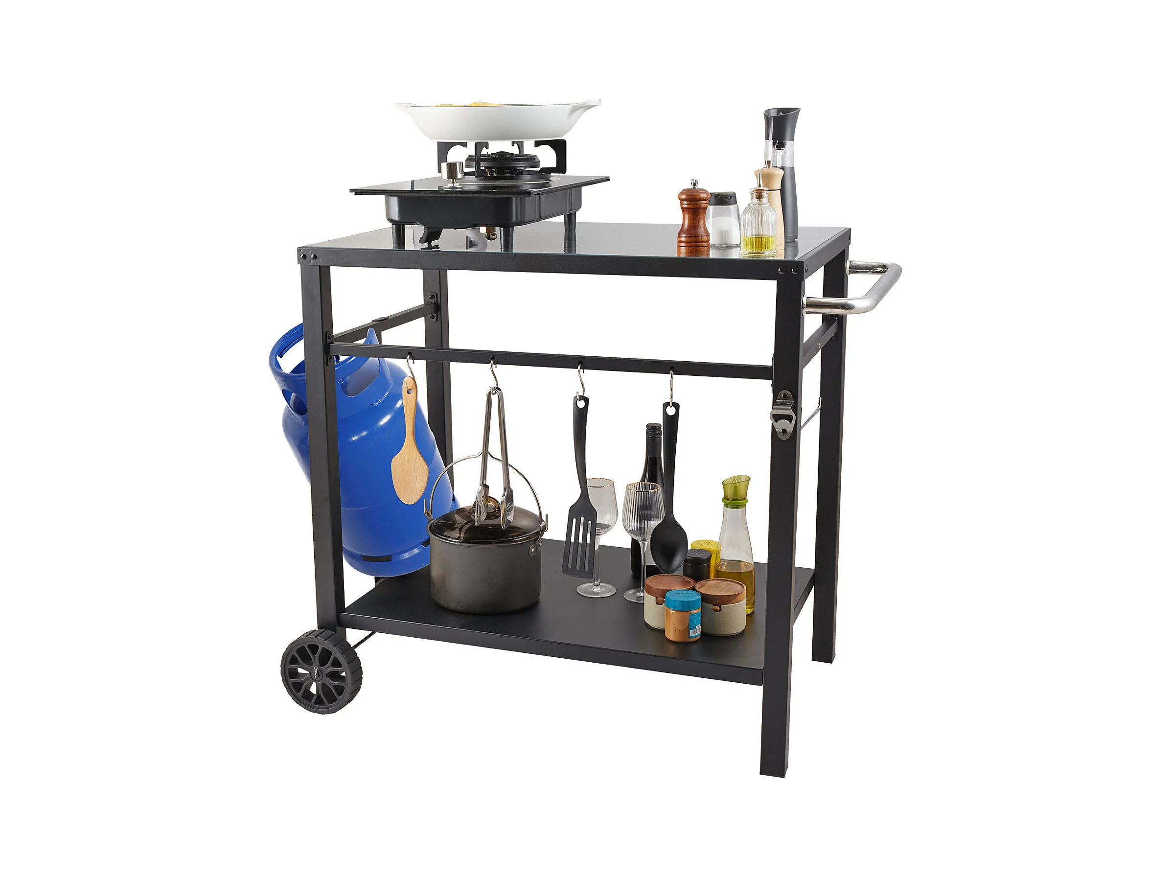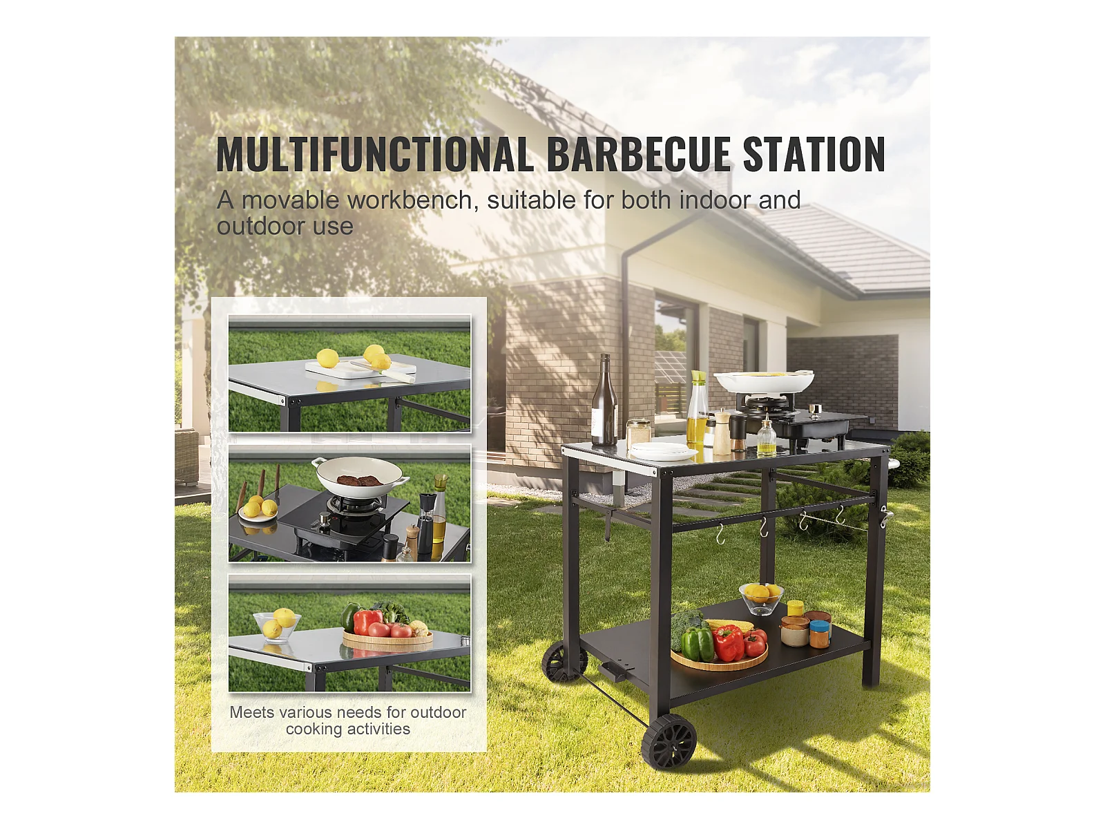 Barbecue à Gaz SucceBuy Chariot de Barbecue D'extérieur , Chariot de Barbecue à Double Etagère, Préparation des Aliments Mobile, Terrasse