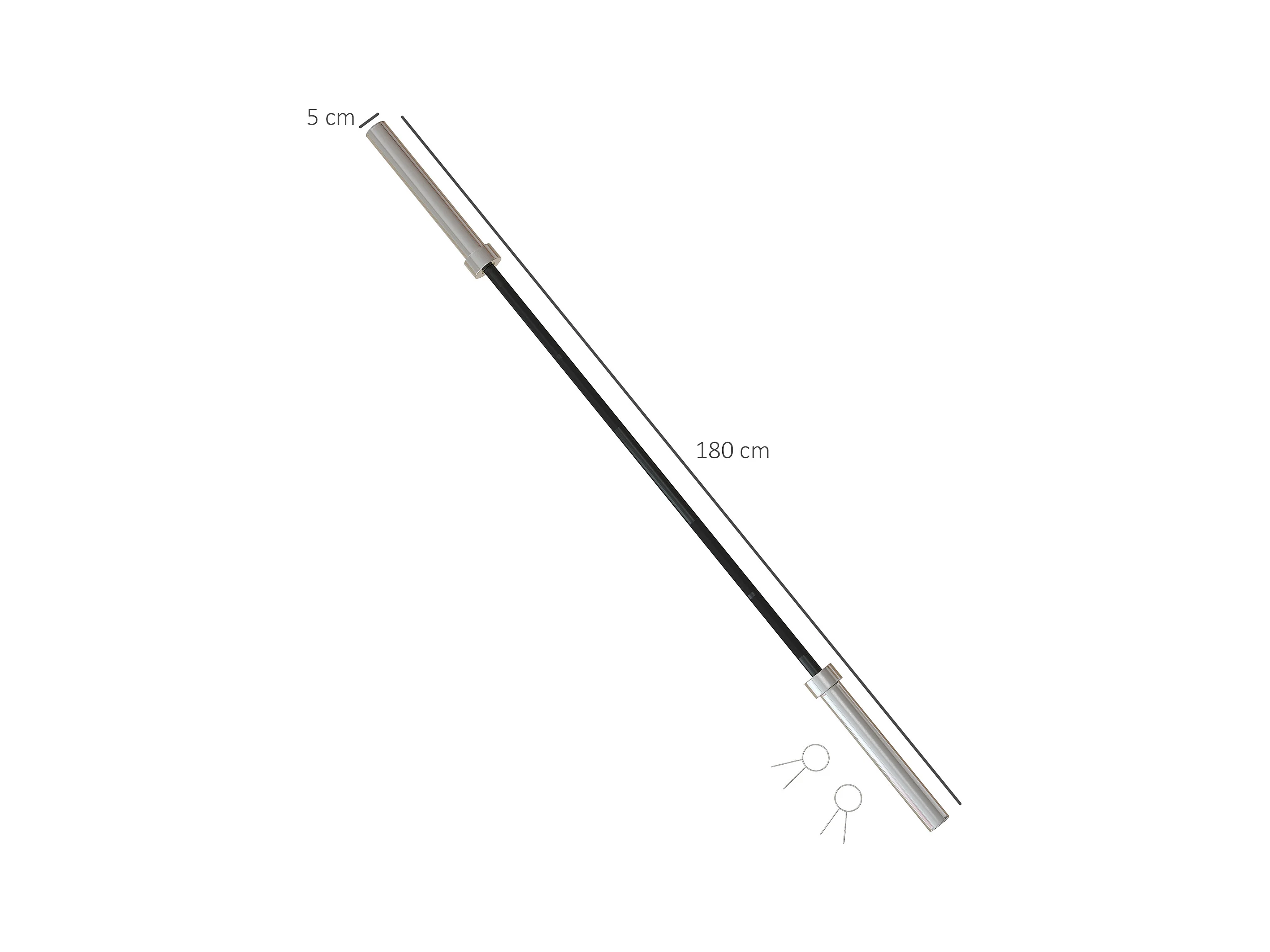 Barre d'haltères en acier 180 cm Ø 50 mm avec 2 pinces charge max. 200 Kg